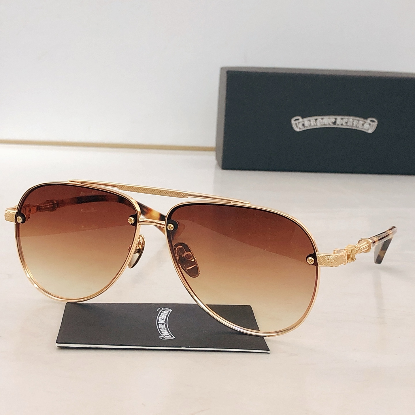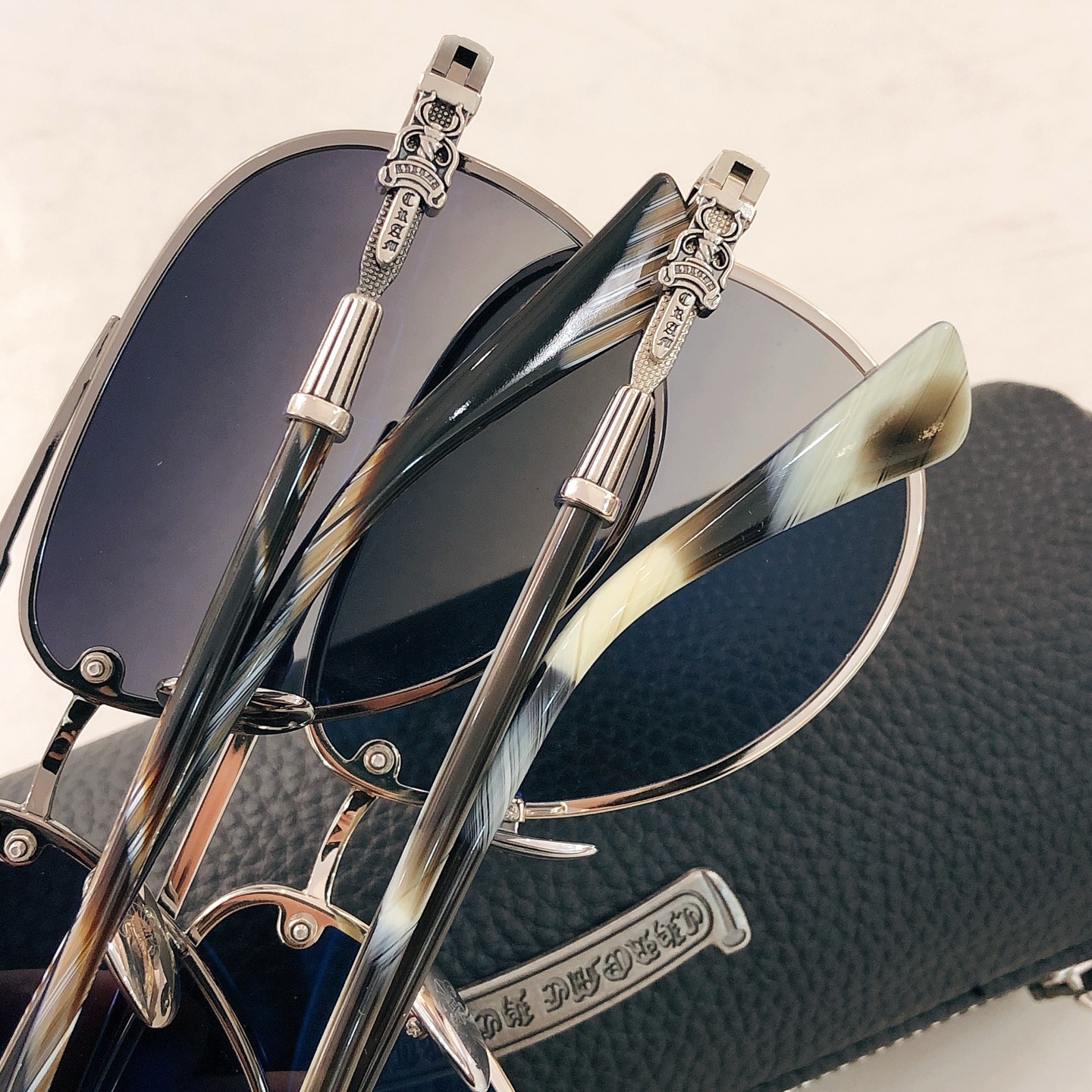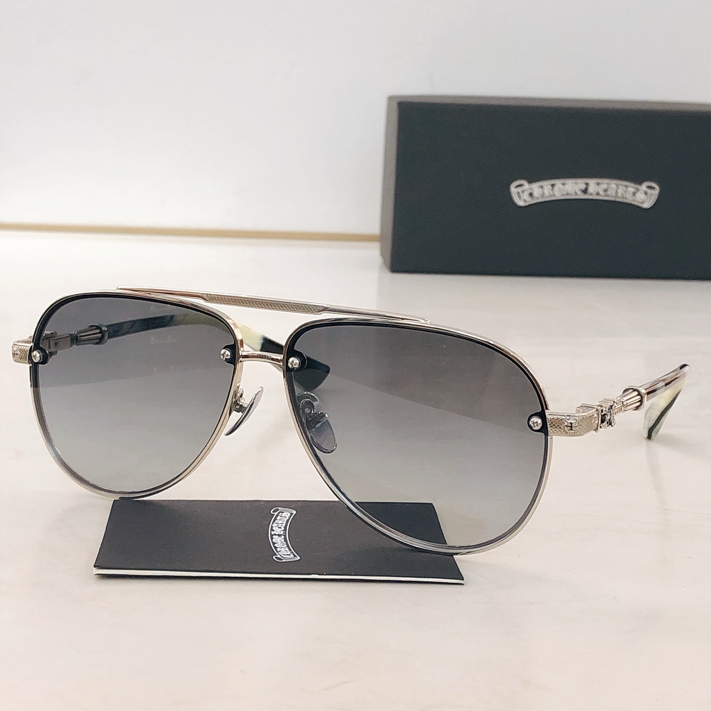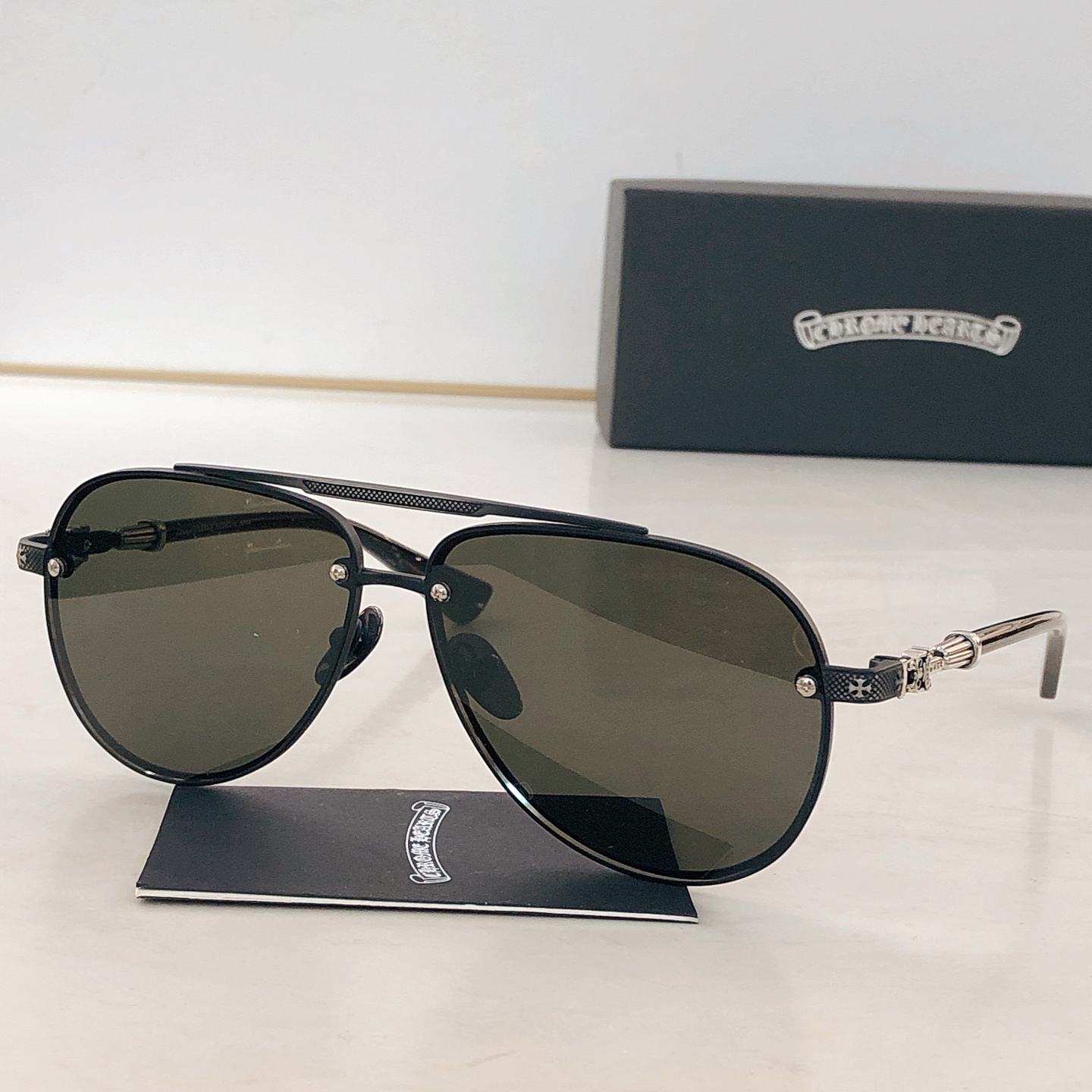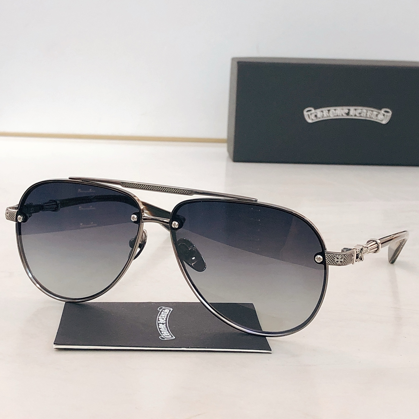 This sunglasses is AAAAA 1:1 quality (superb). Materials used are identical to the original ones. Chrome Hearts trademark marks are indistinguishable to the authentic. Photos take by actual sunglasses, what you receive will be 100% same with our photos.