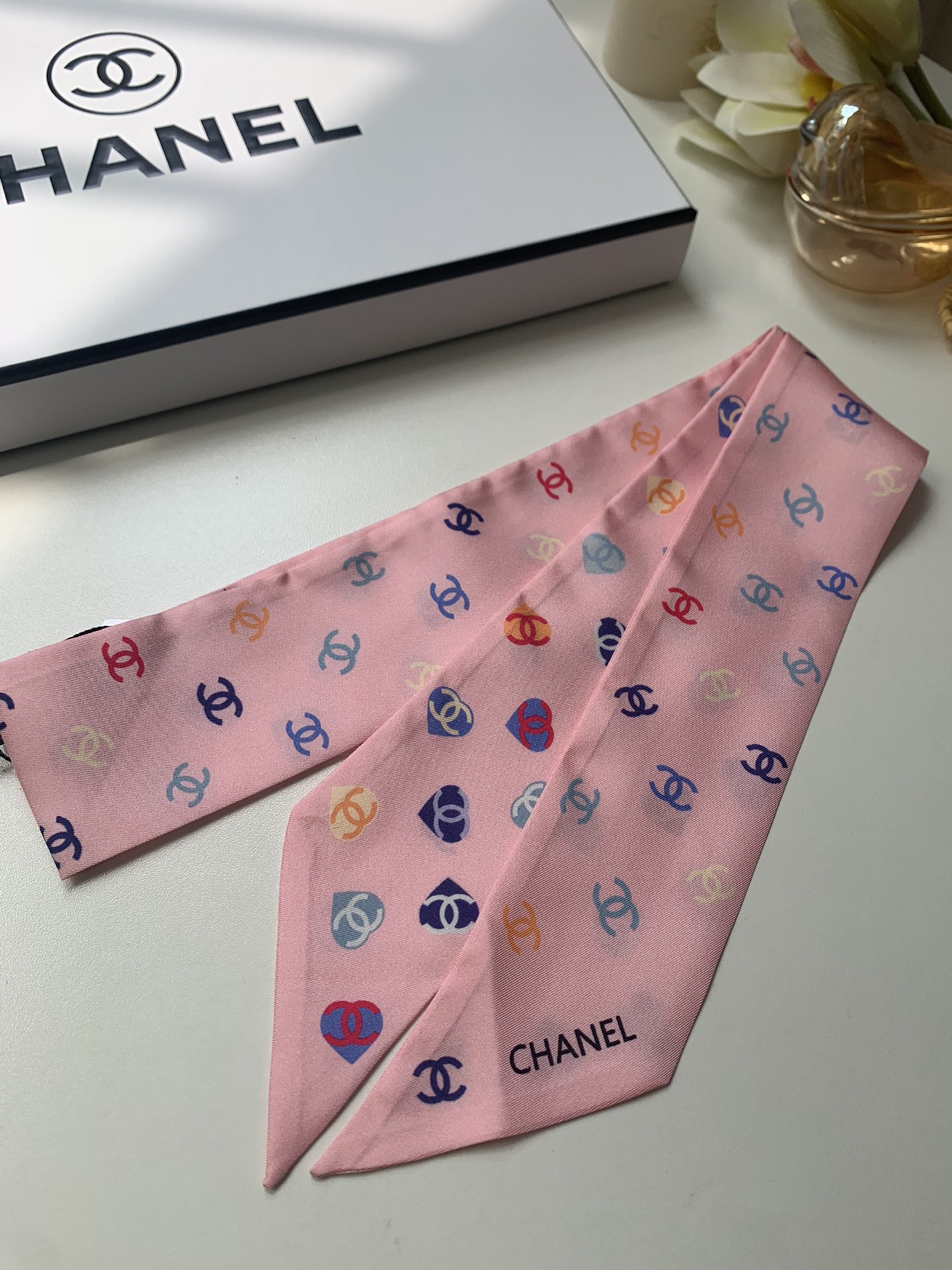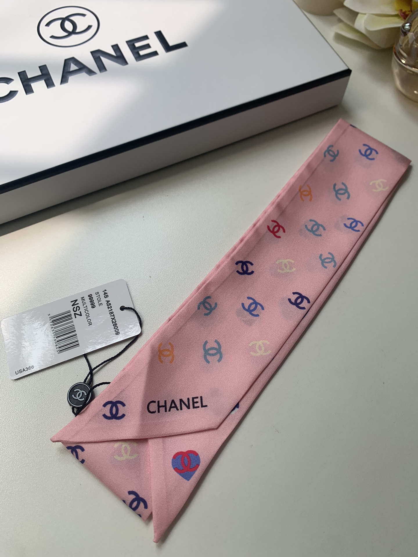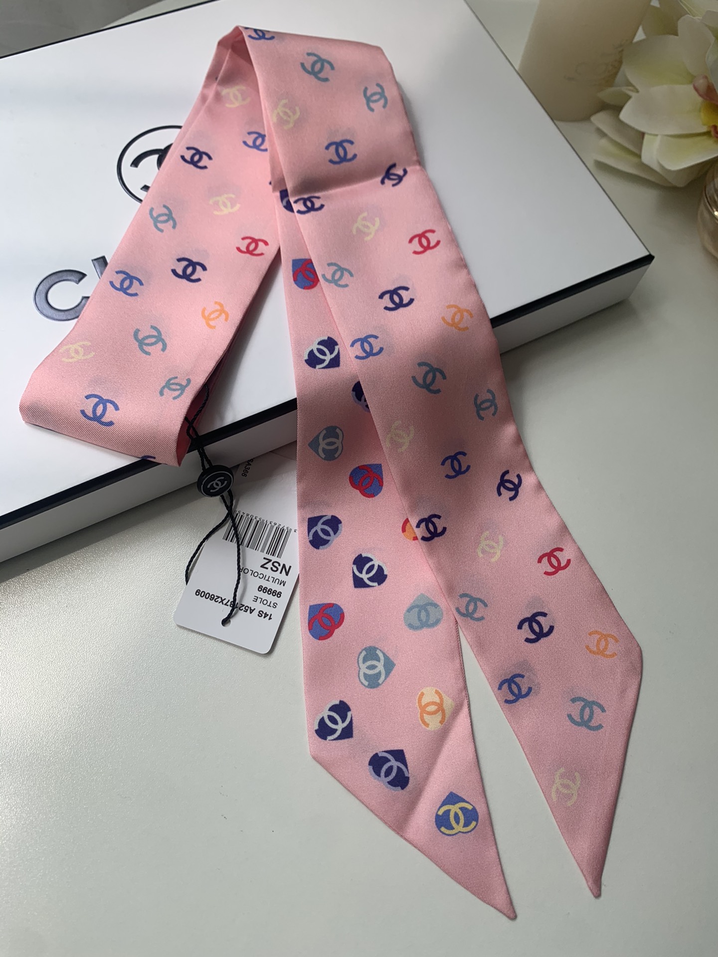 NO:2698883. The scarf is from Chanel designer.