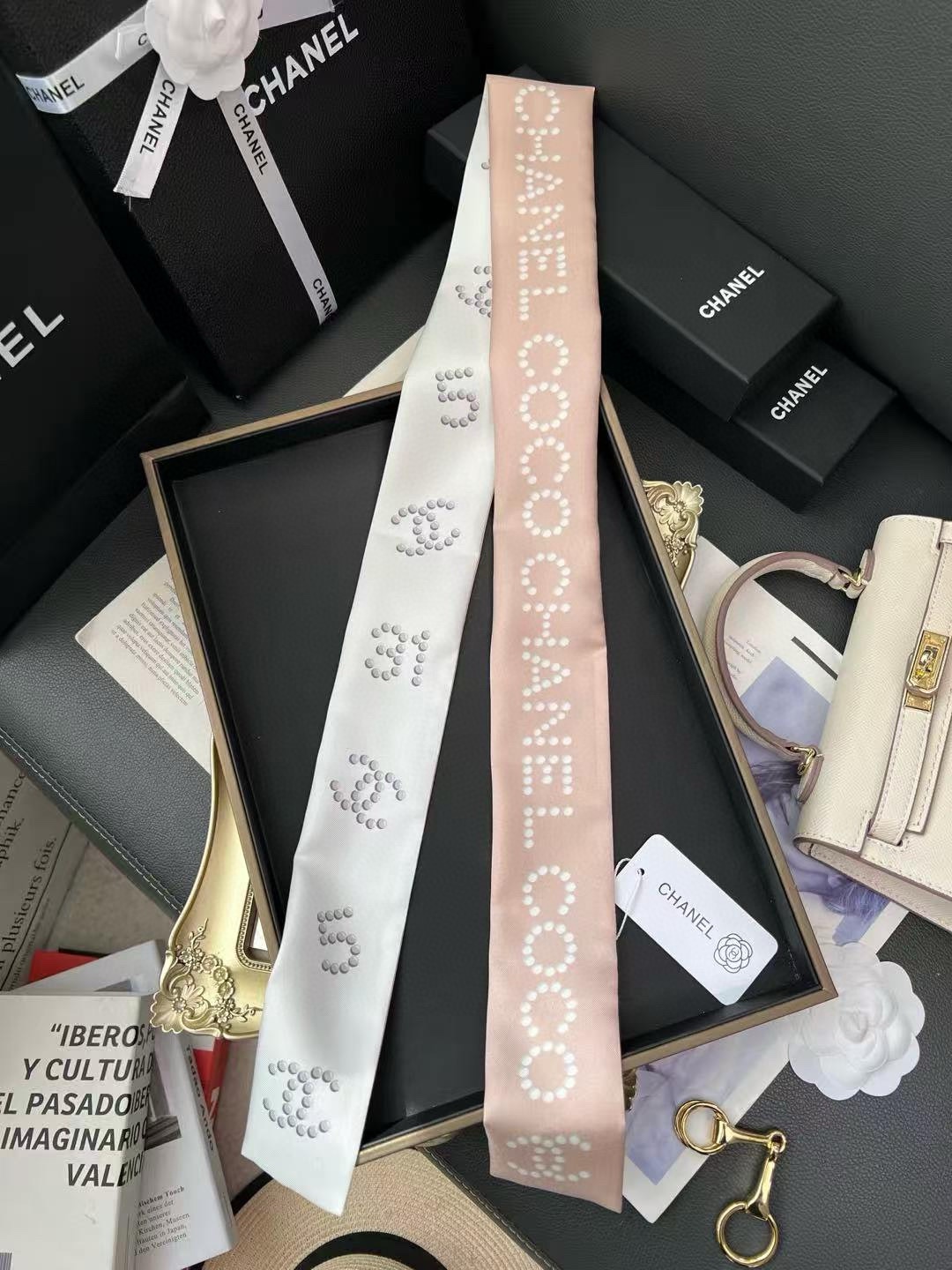 NO:2770516. The scarf is from Chanel designer.