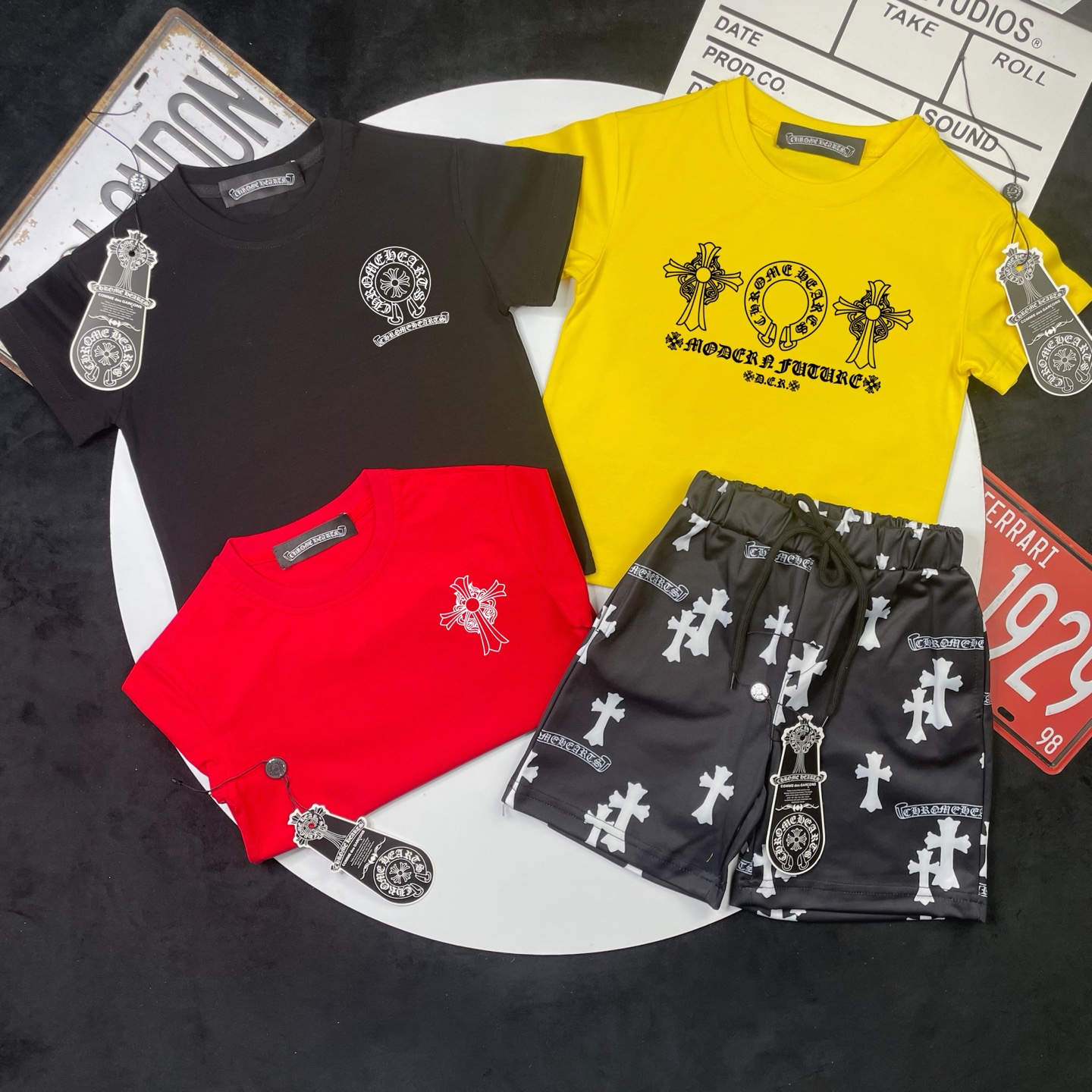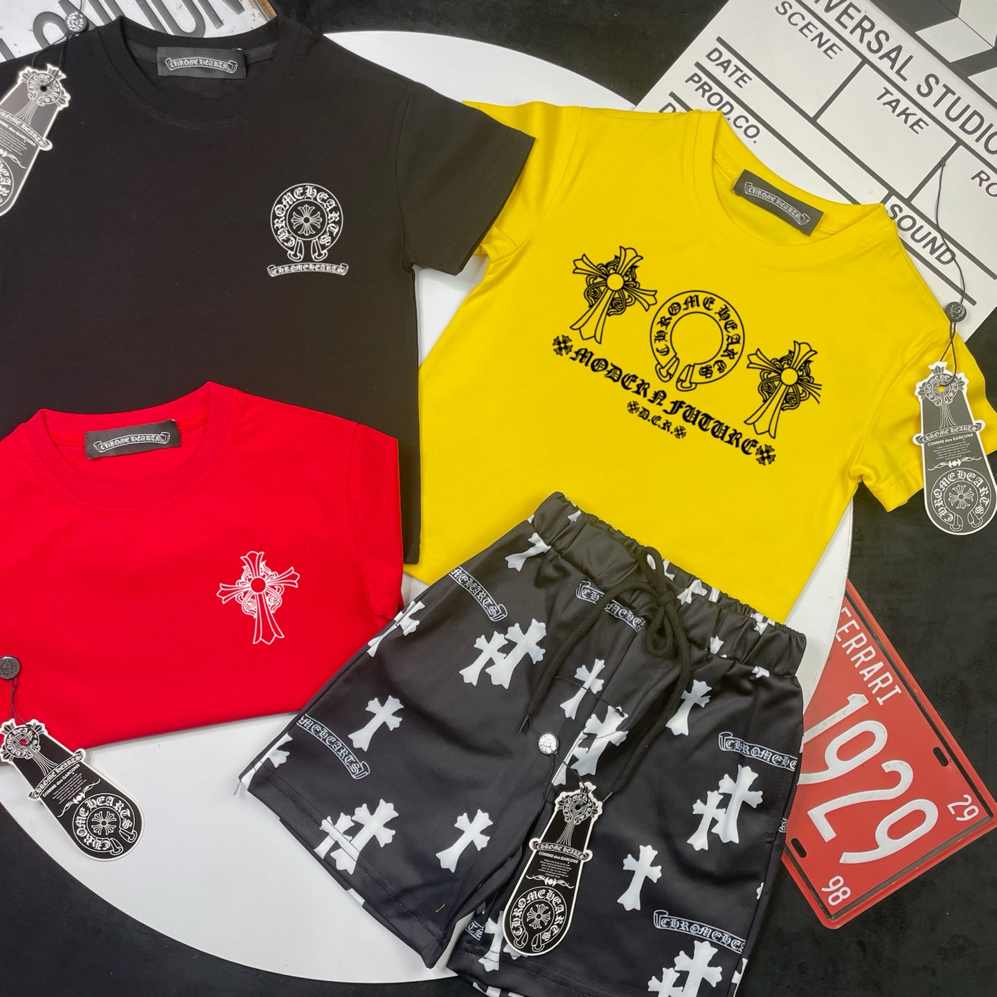 This children's clothes is AAAAA 1:1 quality (superb). Materials used are identical to the original ones. Chrome Hearts trademark marks are indistinguishable to the authentic. Photos take by actual children's clothes, what you receive will be 100% same with our photos.