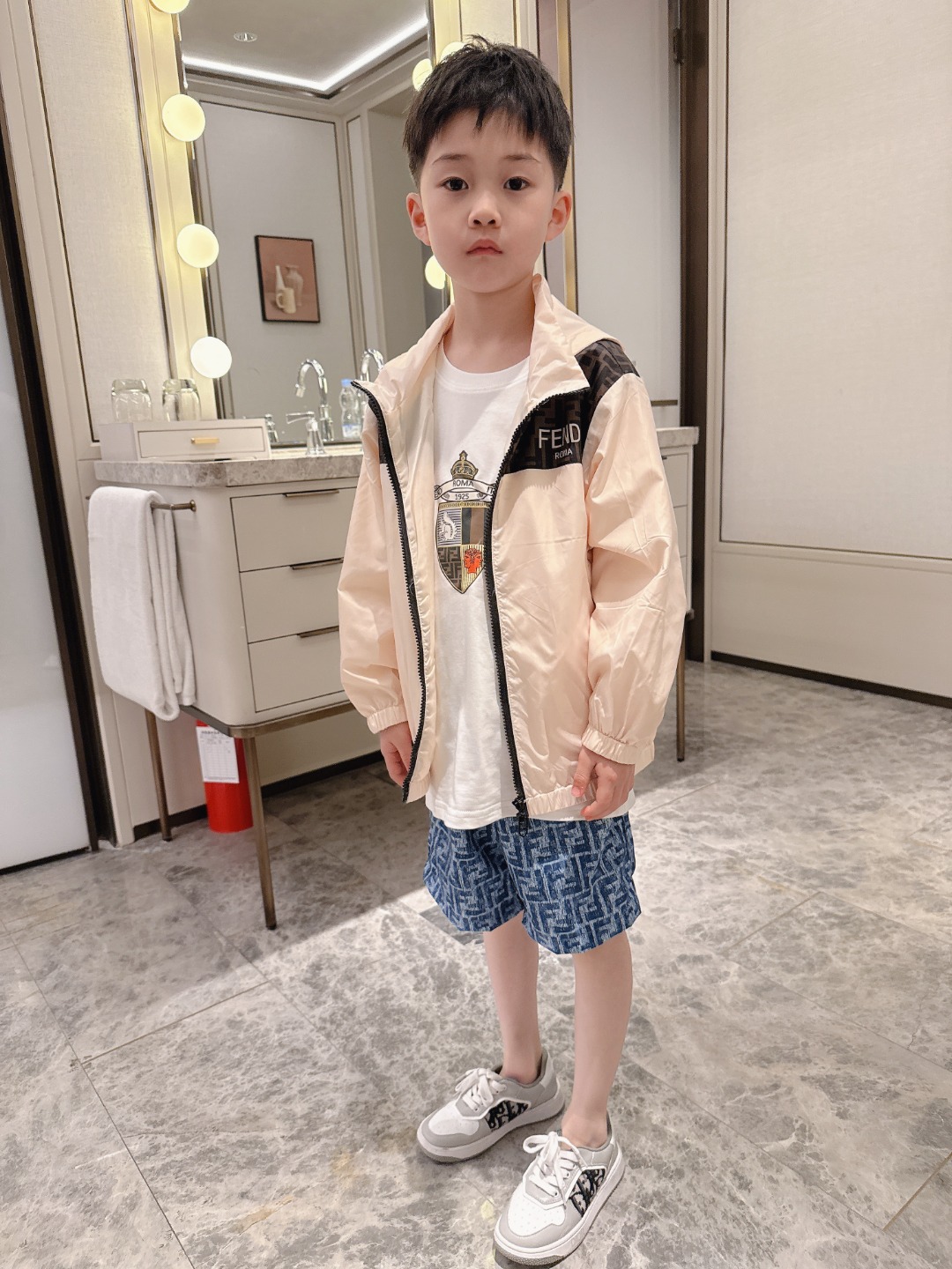 This children's clothes is AAAAA 1:1 quality (superb). Materials used are identical to the original ones. trademark marks are indistinguishable to the authentic. Photos take by actual children's clothes, what you receive will be 100% same with our photos.