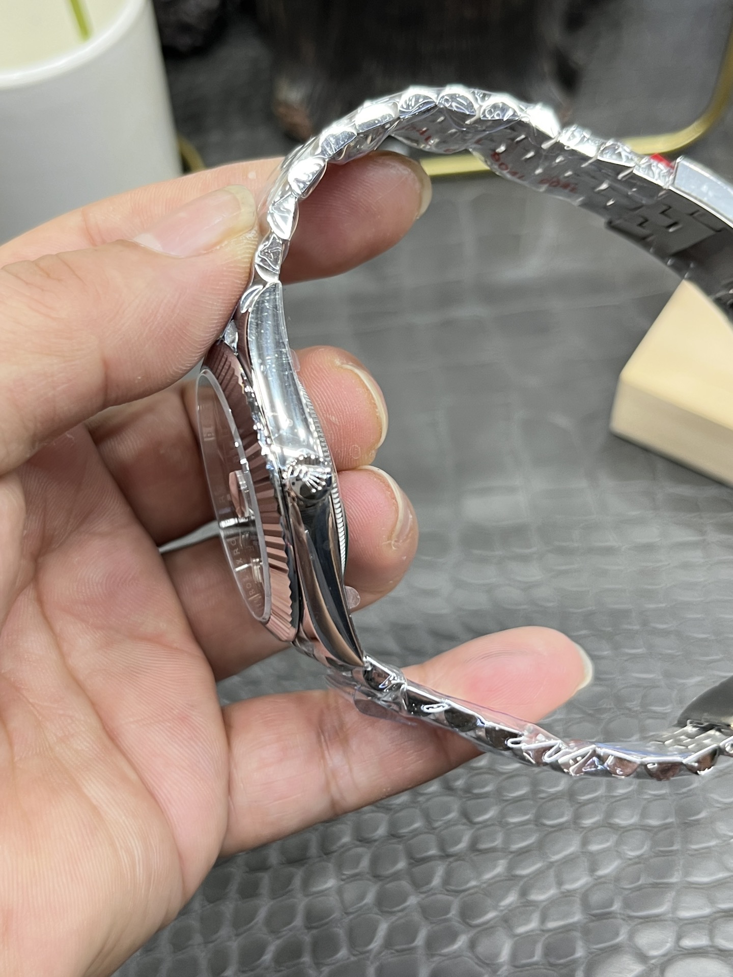 This watches is AAAAA 1:1 quality (superb). Materials used are identical to the original ones. Rolex trademark marks are indistinguishable to the authentic. Photos take by actual watches, what you receive will be 100% same with our photos.