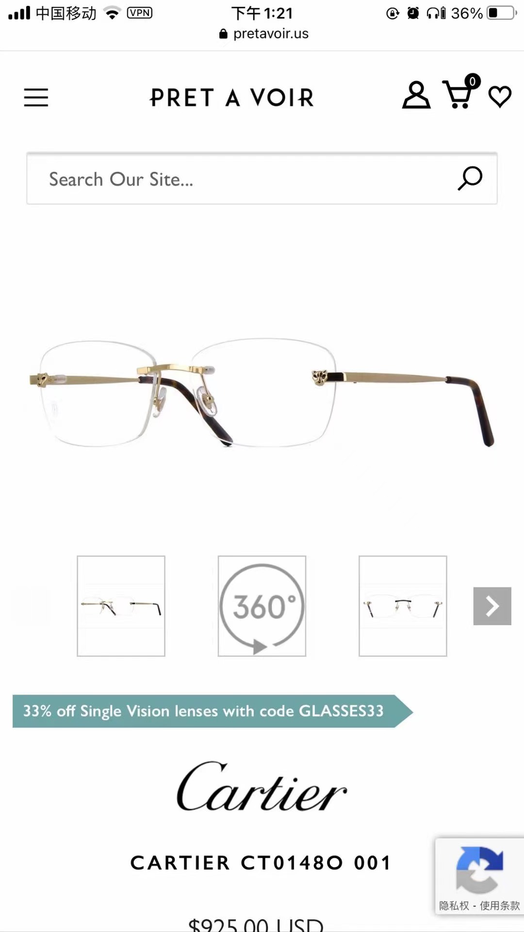 NO:2891870. The sunglasses is from Cartier designer.