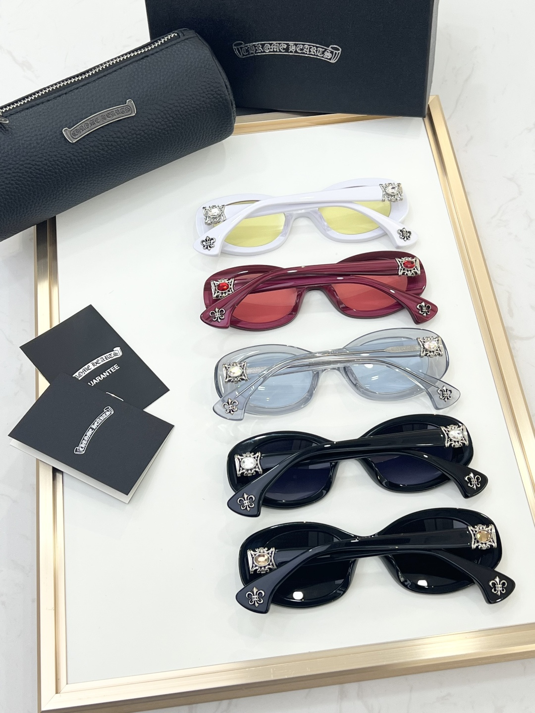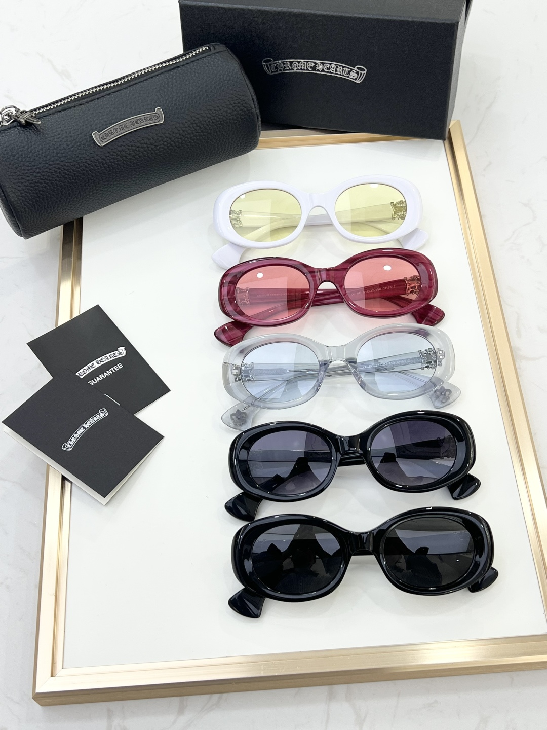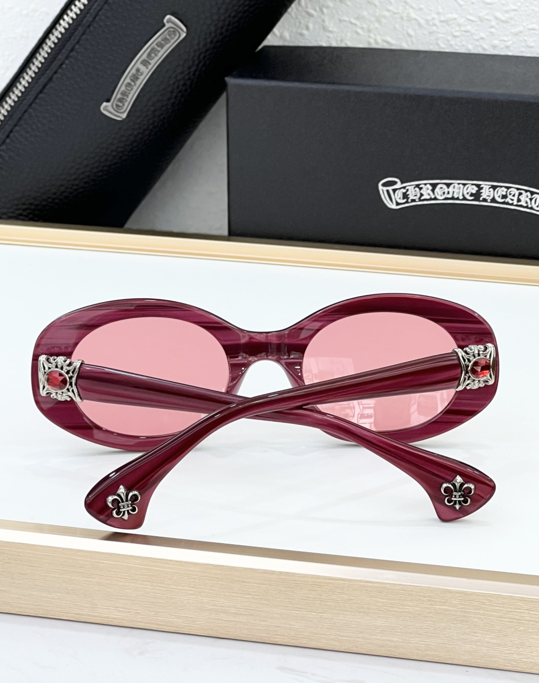 This sunglasses is AAAAA 1:1 quality (superb). Materials used are identical to the original ones. Chrome Hearts trademark marks are indistinguishable to the authentic. Photos take by actual sunglasses, what you receive will be 100% same with our photos.
