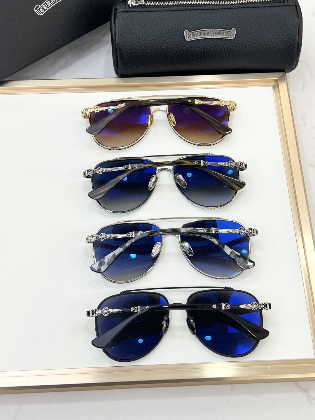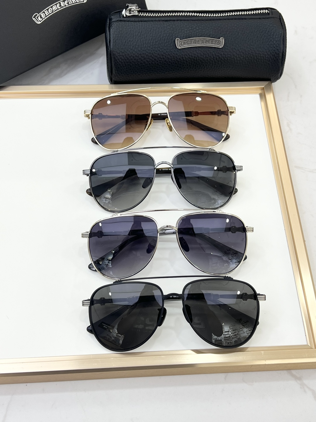 This sunglasses is AAAAA 1:1 quality (superb). Materials used are identical to the original ones. Chrome Hearts trademark marks are indistinguishable to the authentic. Photos take by actual sunglasses, what you receive will be 100% same with our photos.