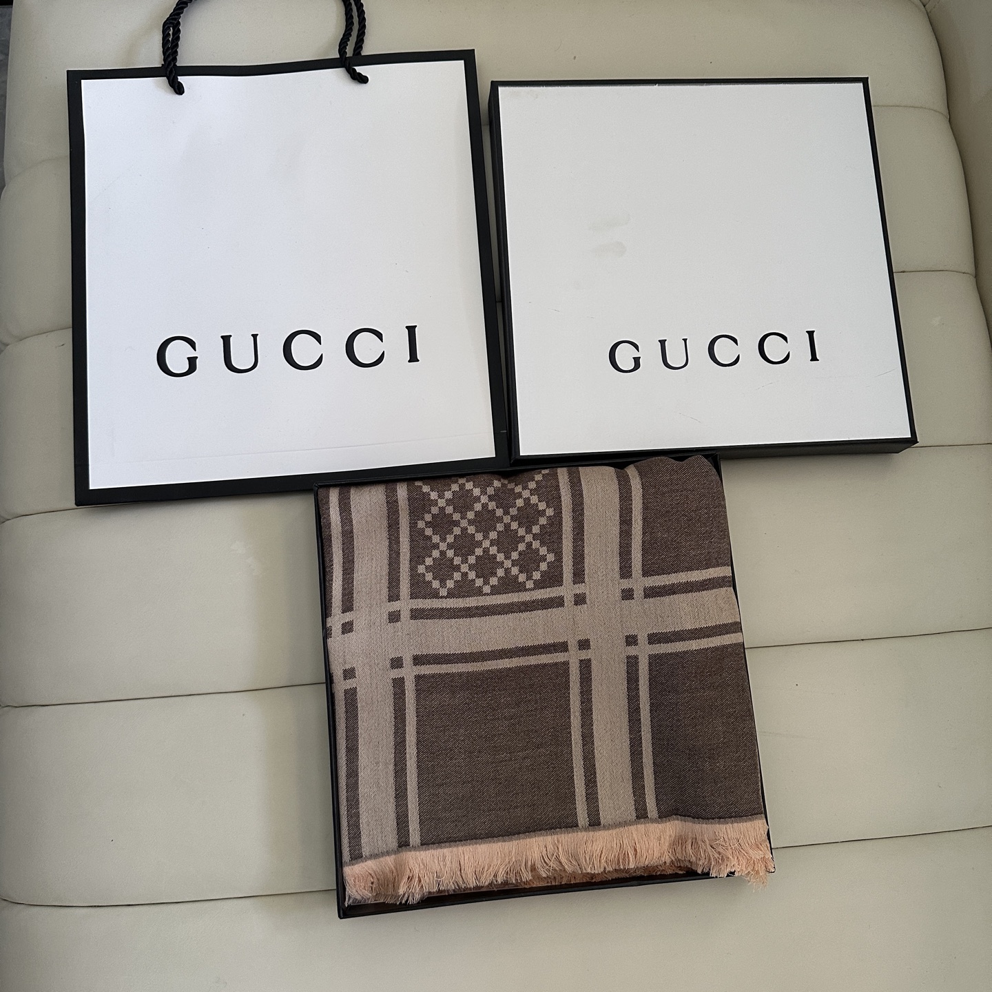 This scarf is AAAAA 1:1 quality (superb). Materials used are identical to the original ones. Gucci trademark marks are indistinguishable to the authentic. Photos take by actual scarf, what you receive will be 100% same with our photos.
