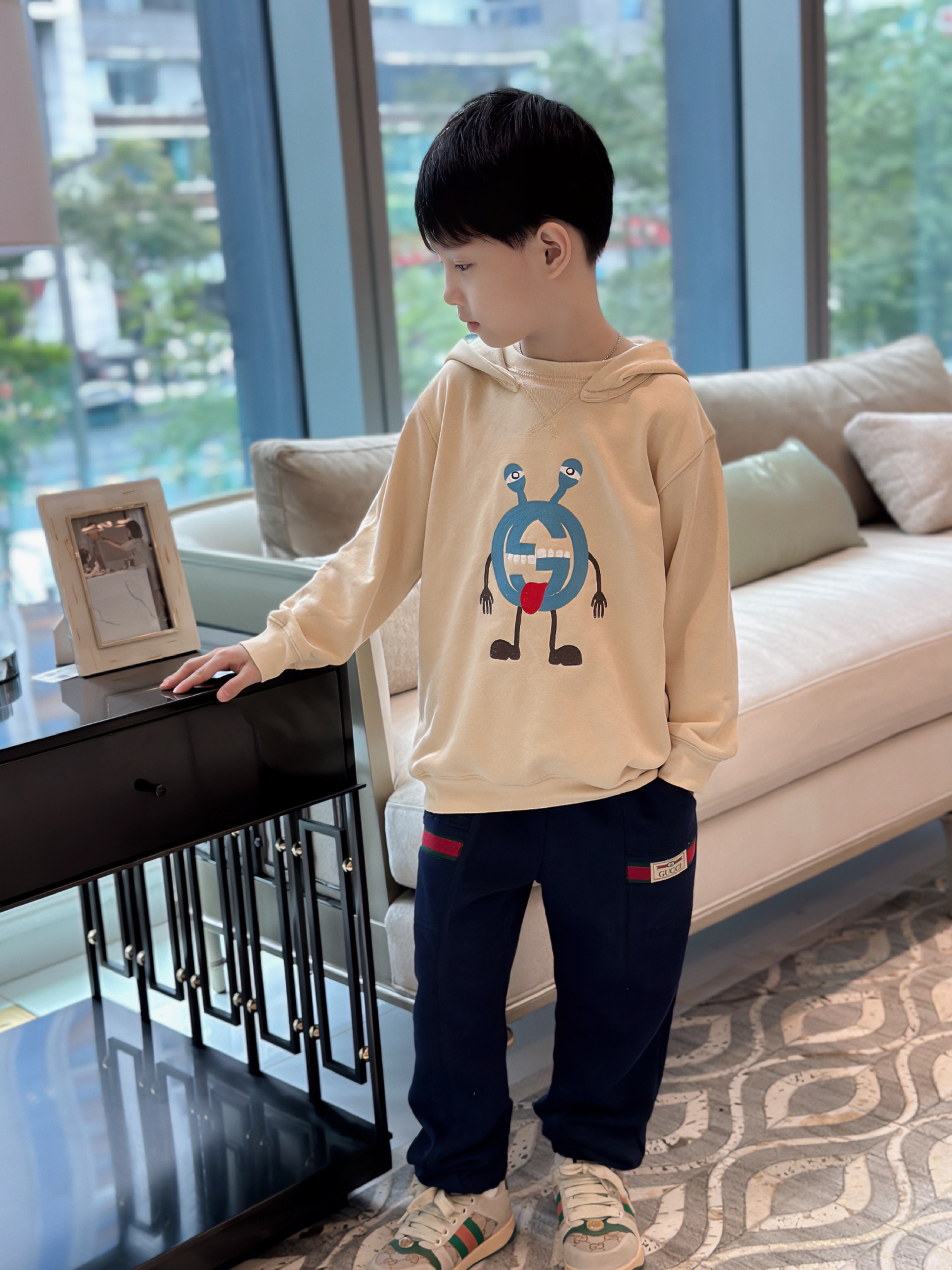 This children's clothes is AAAAA 1:1 quality (superb). Materials used are identical to the original ones. trademark marks are indistinguishable to the authentic. Photos take by actual children's clothes, what you receive will be 100% same with our photos.