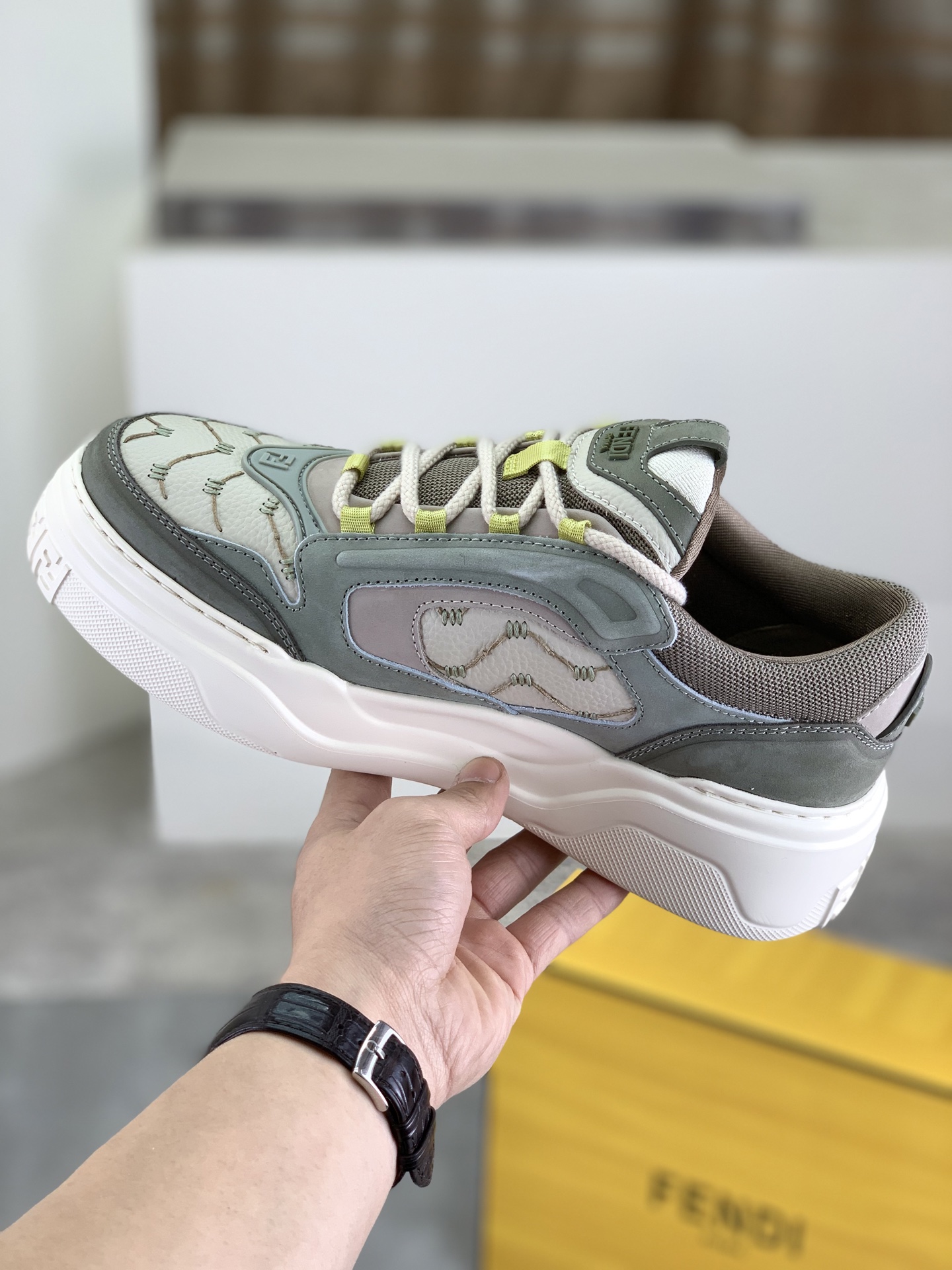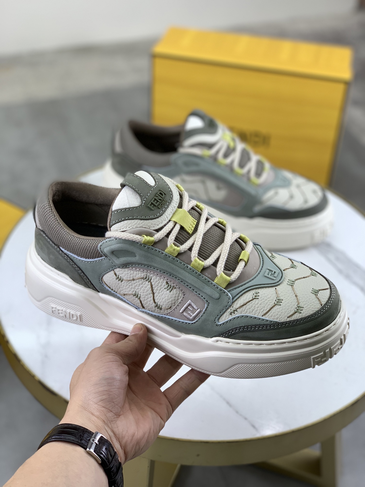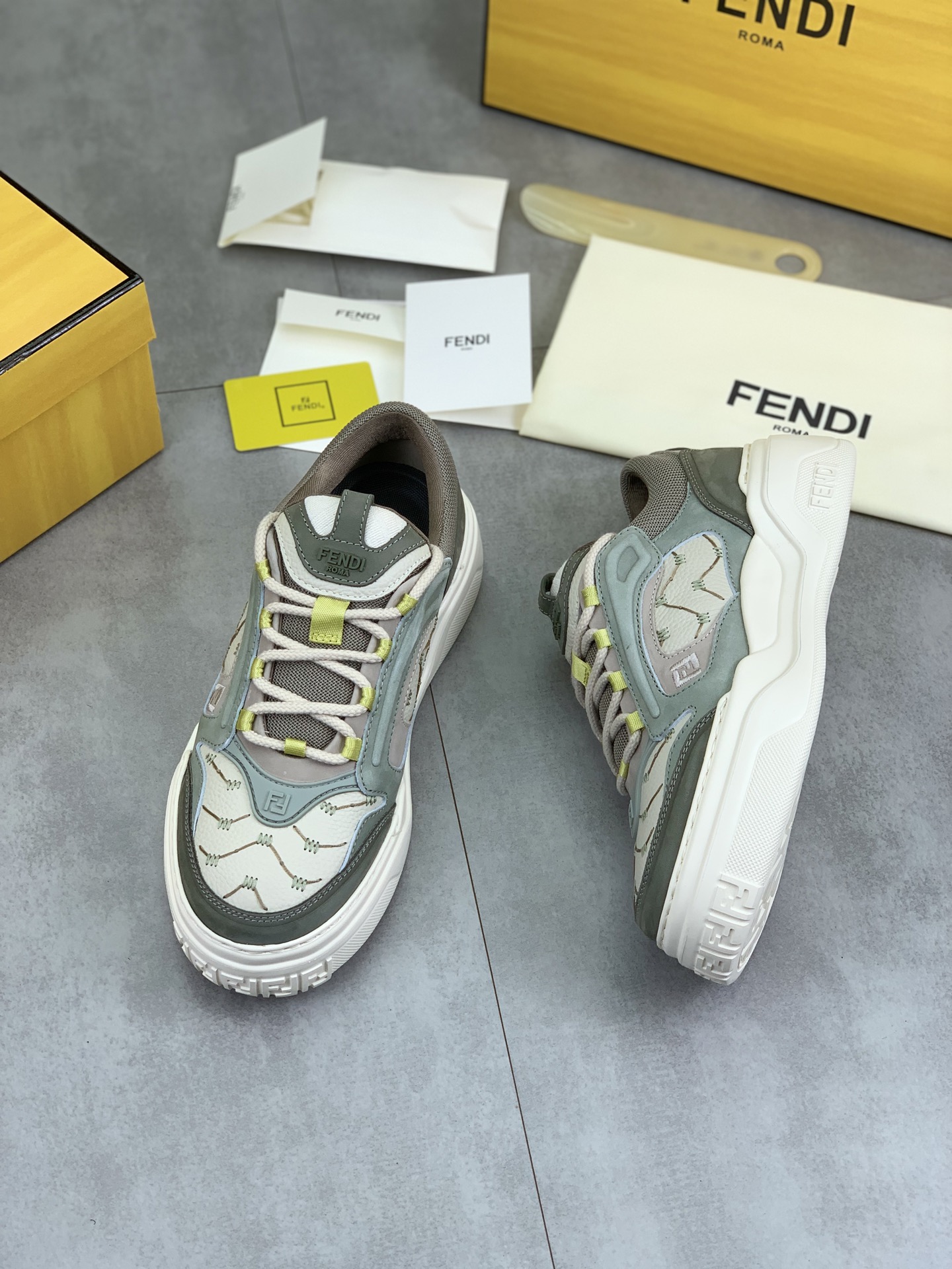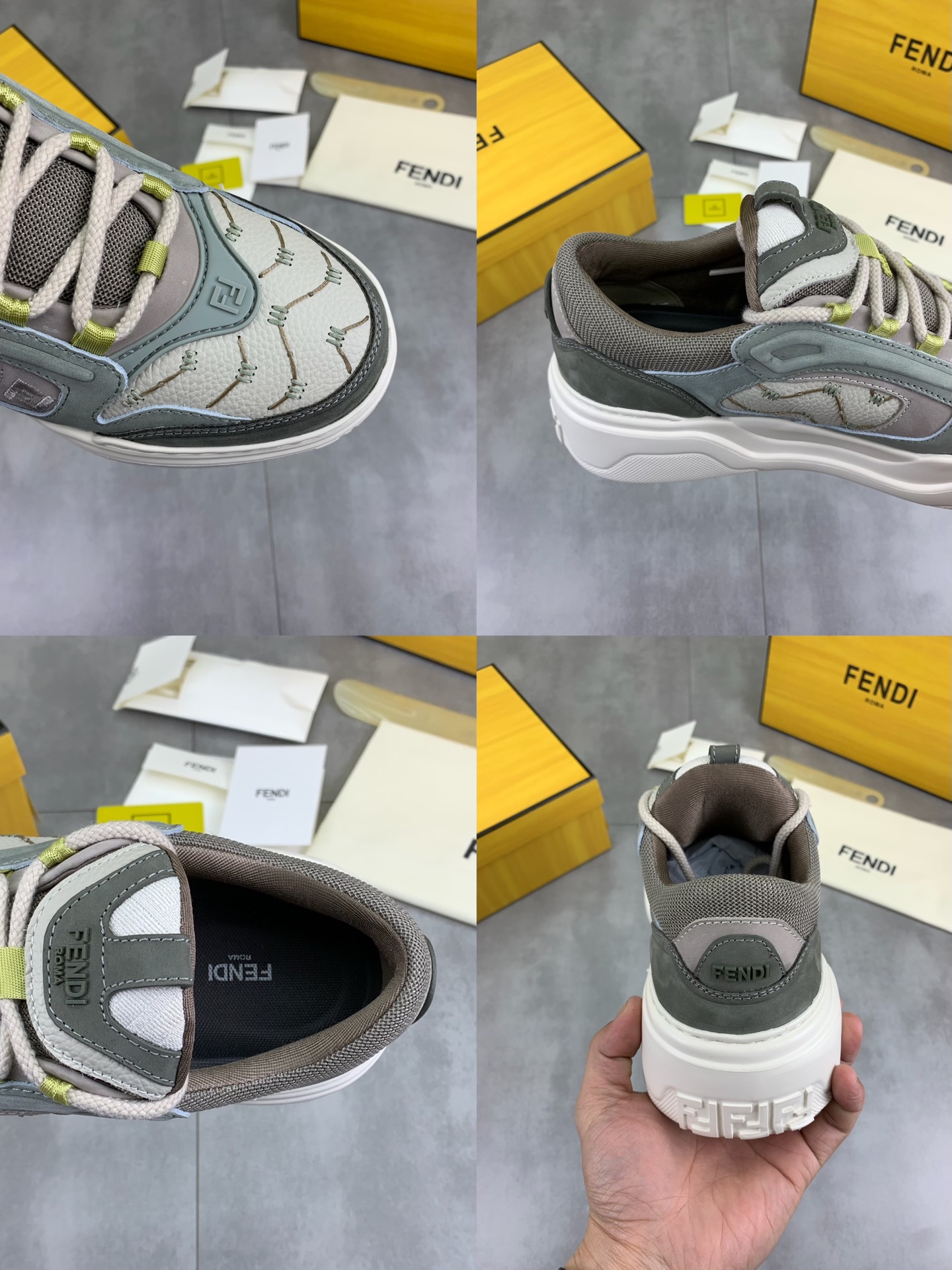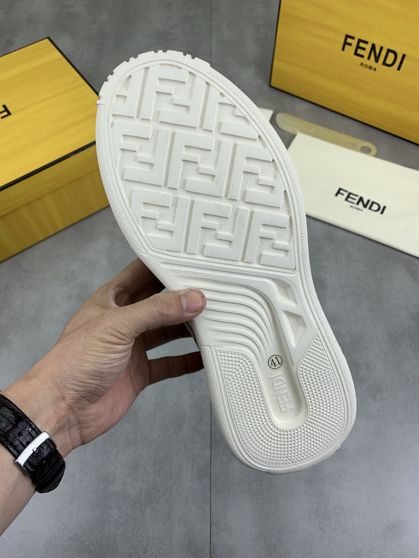 This shoes is AAAAA 1:1 quality (superb). Materials used are identical to the original ones. Fendi trademark marks are indistinguishable to the authentic. Photos take by actual shoes, what you receive will be 100% same with our photos.