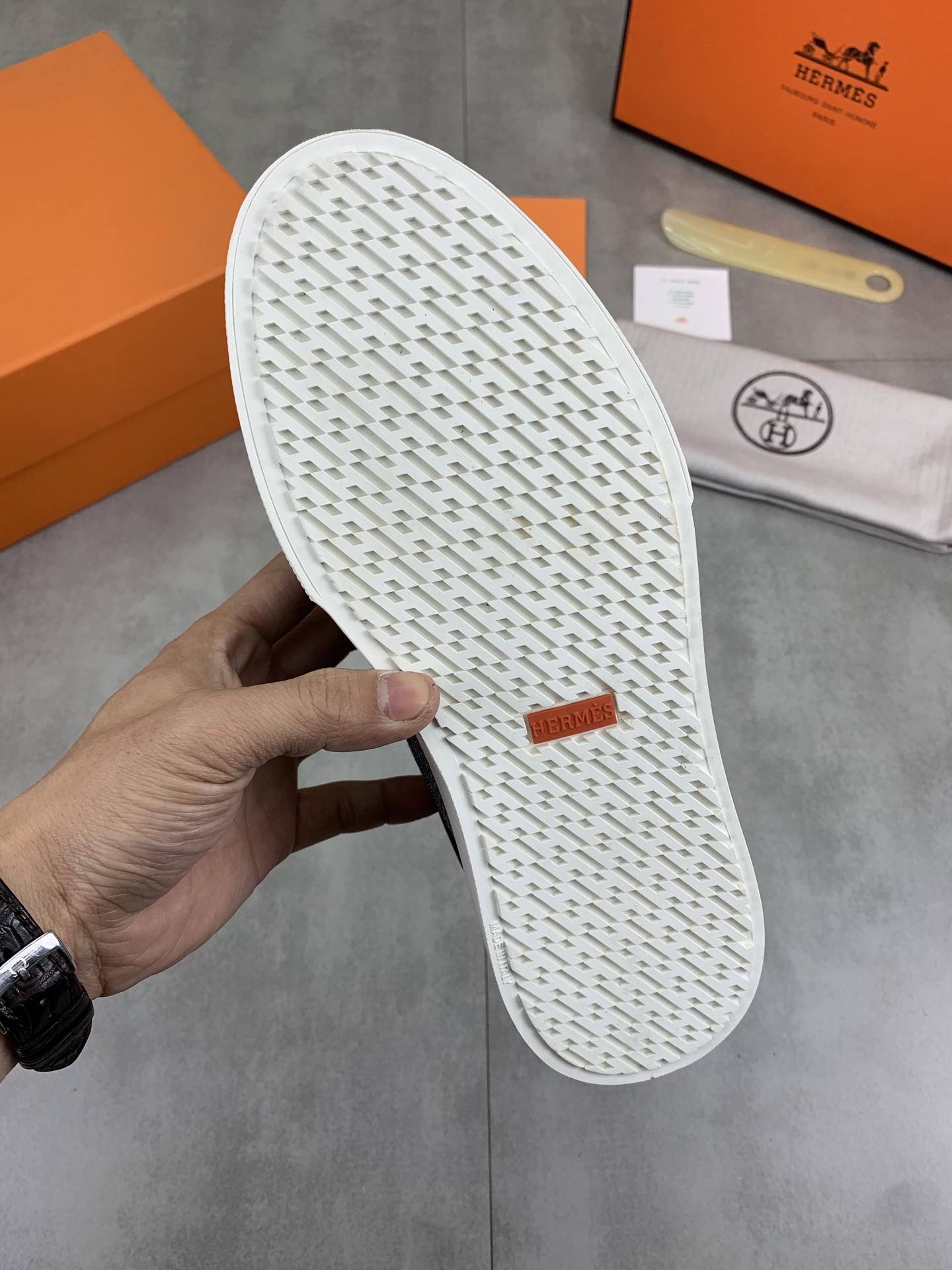 This shoes is AAAAA 1:1 quality (superb). Materials used are identical to the original ones. Hermes trademark marks are indistinguishable to the authentic. Photos take by actual shoes, what you receive will be 100% same with our photos.