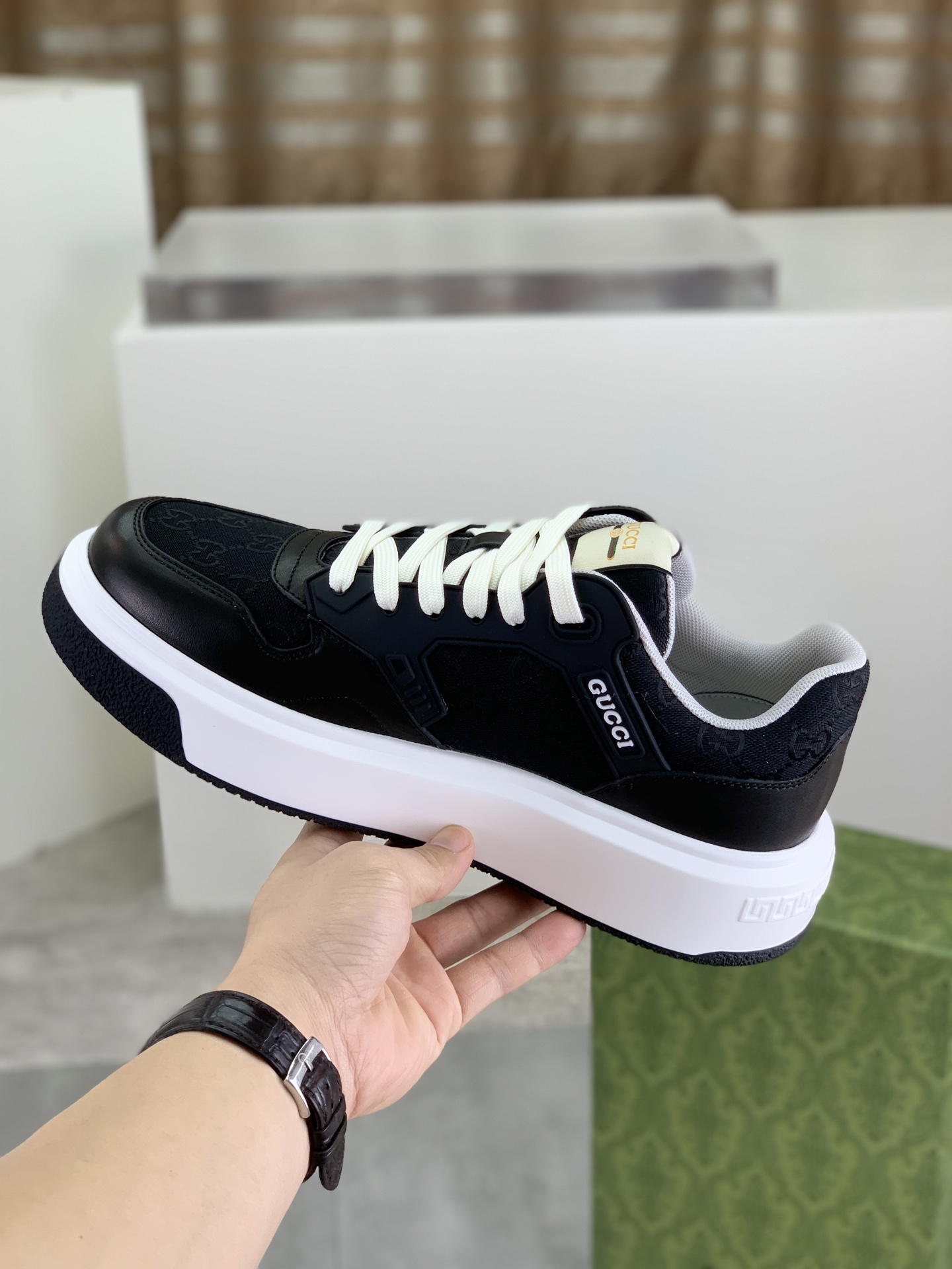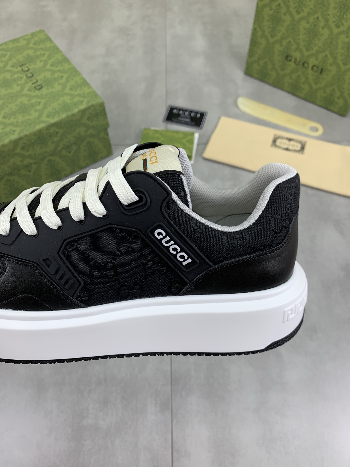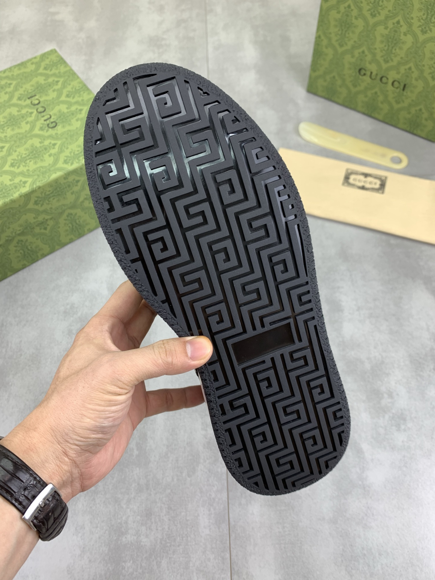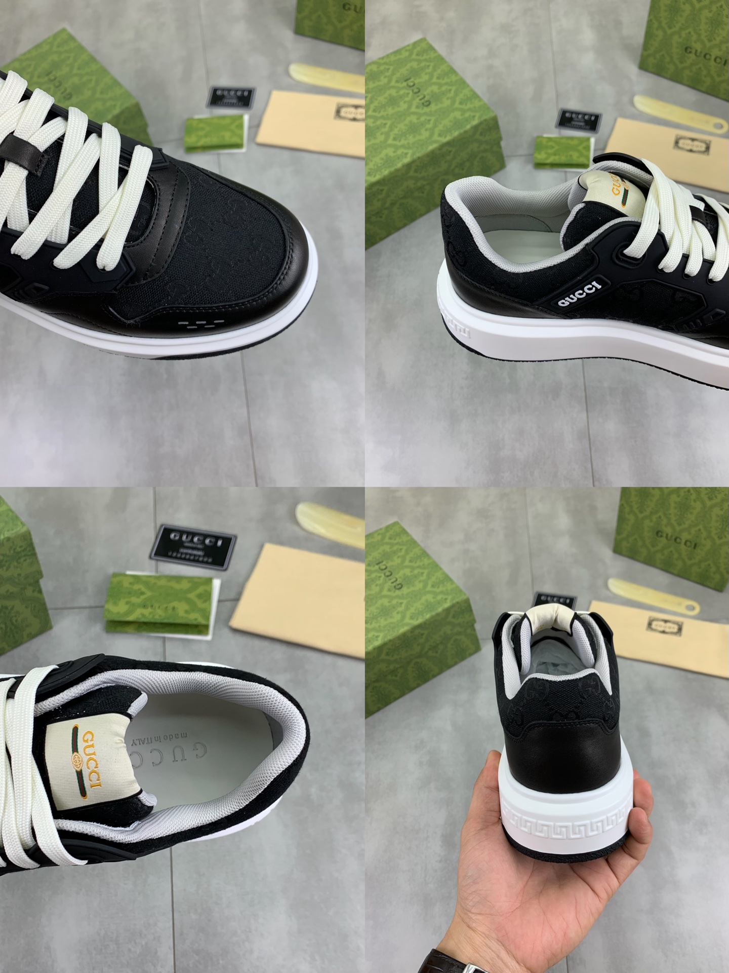 This shoes is AAAAA 1:1 quality (superb). Materials used are identical to the original ones. Gucci trademark marks are indistinguishable to the authentic. Photos take by actual shoes, what you receive will be 100% same with our photos.