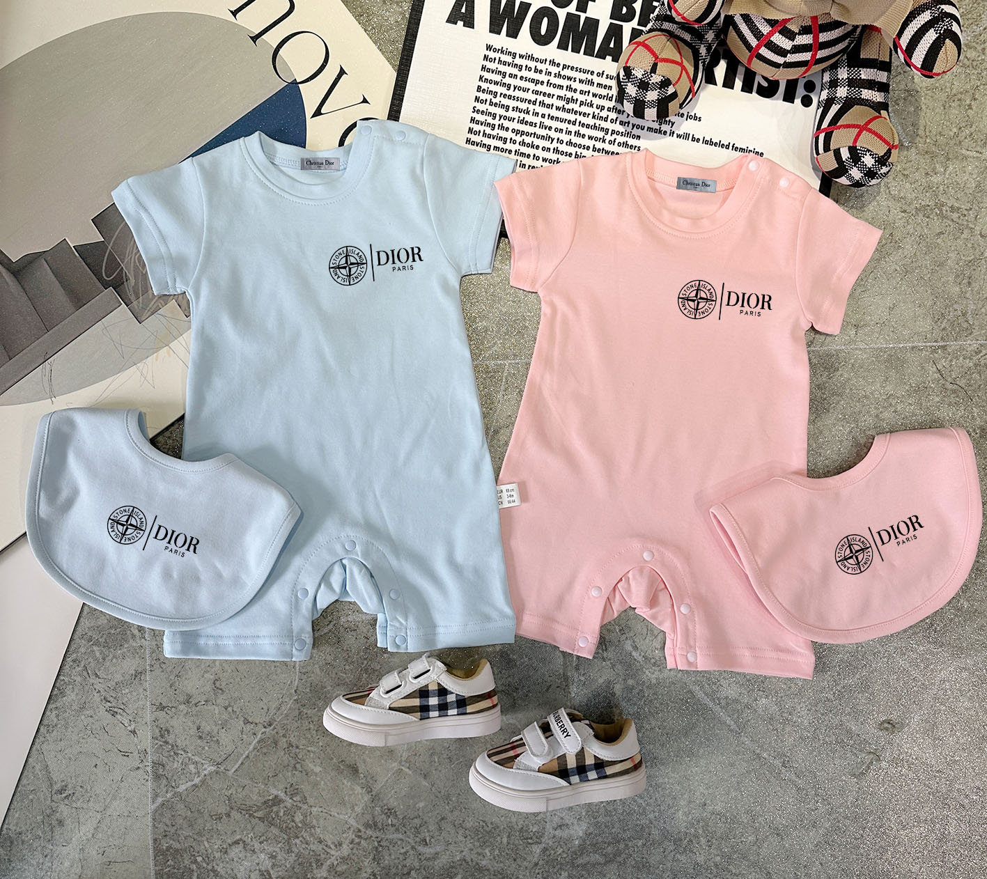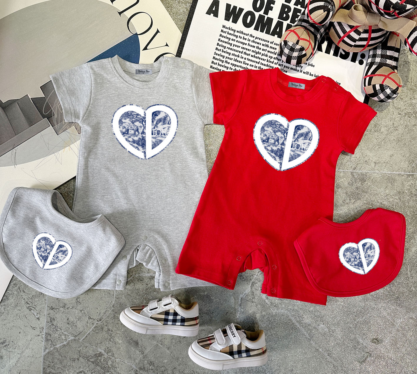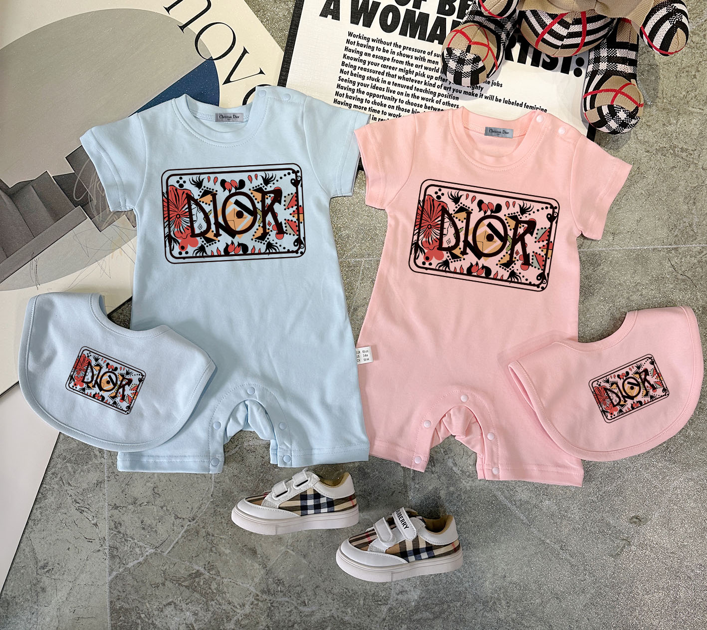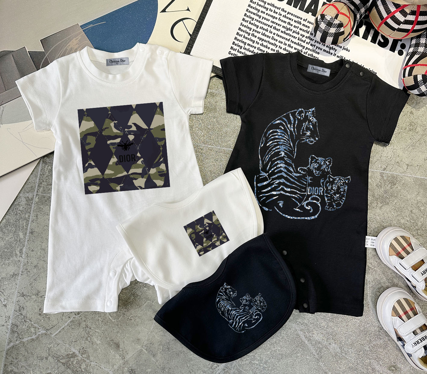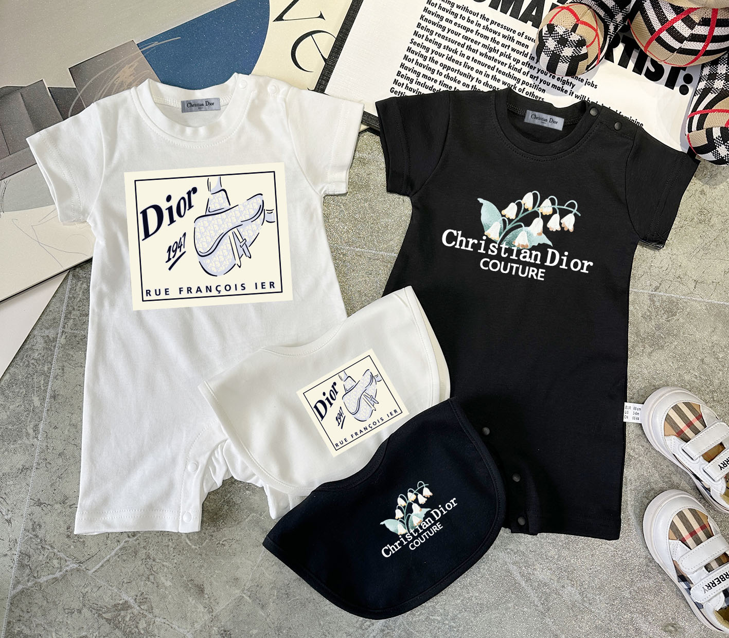 This children's clothes is AAAAA 1:1 quality (superb). Materials used are identical to the original ones. trademark marks are indistinguishable to the authentic. Photos take by actual children's clothes, what you receive will be 100% same with our photos.