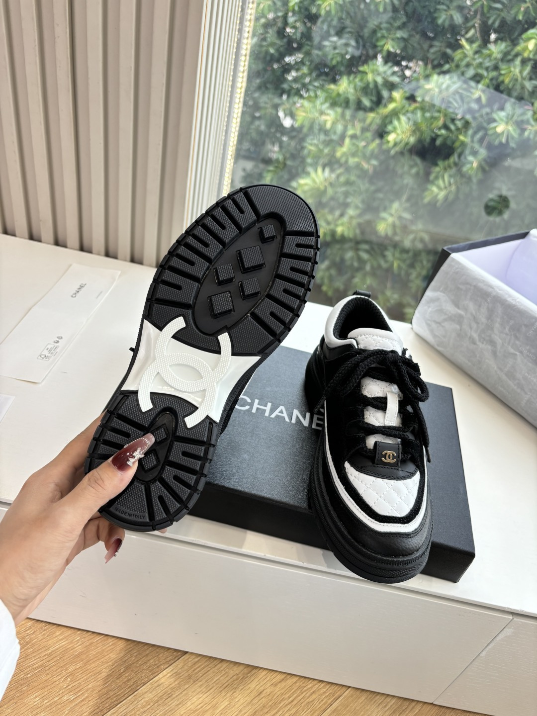 This shoes is AAAAA 1:1 quality (superb). Materials used are identical to the original ones. Chanel trademark marks are indistinguishable to the authentic. Photos take by actual shoes, what you receive will be 100% same with our photos.