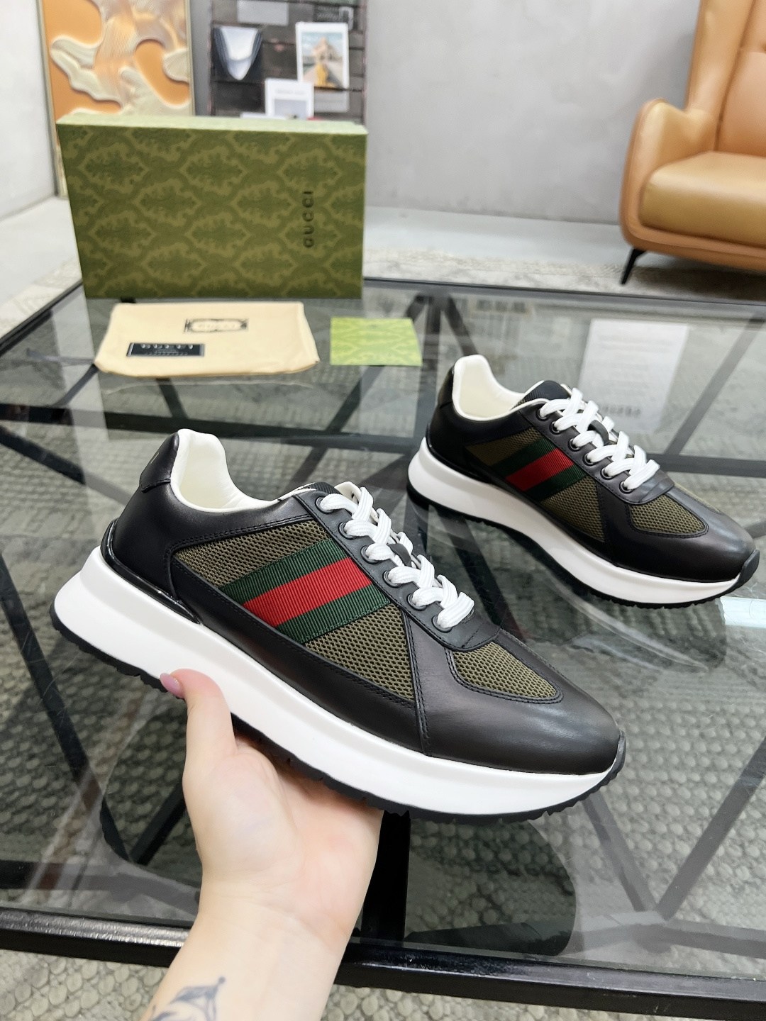 This shoes is AAAAA 1:1 quality (superb). Materials used are identical to the original ones. trademark marks are indistinguishable to the authentic. Photos take by actual shoes, what you receive will be 100% same with our photos.