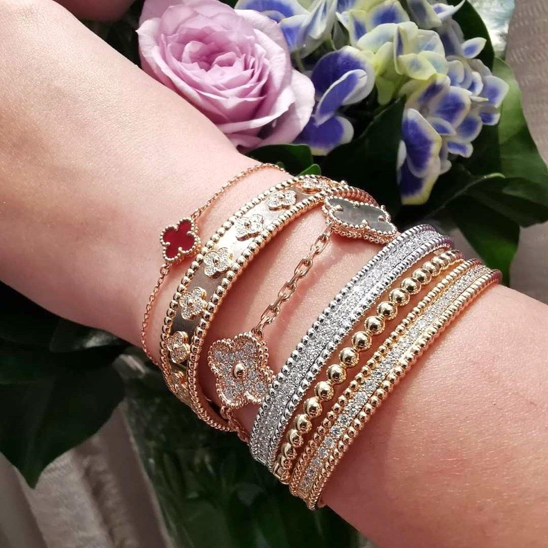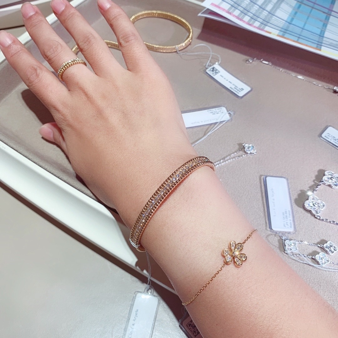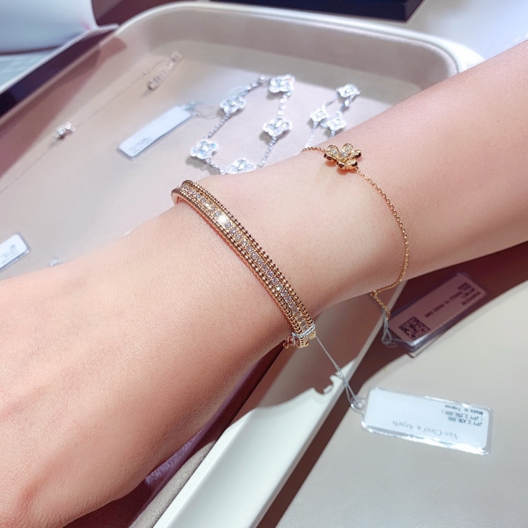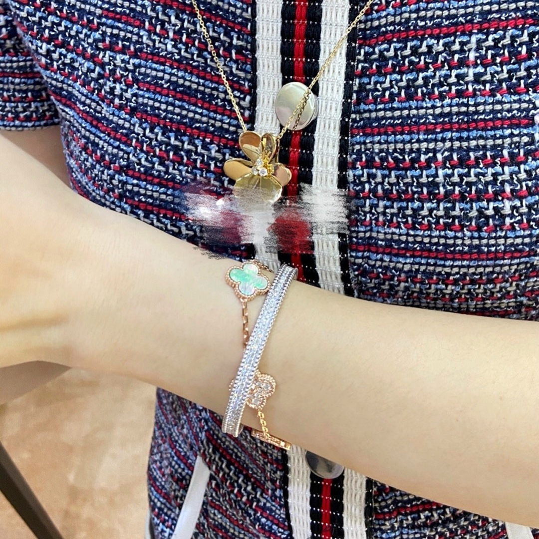 This jewelry is AAAAA 1:1 quality (superb). Materials used are identical to the original ones. Van Cleef & Arpels trademark marks are indistinguishable to the authentic. Photos take by actual jewelry, what you receive will be 100% same with our photos.