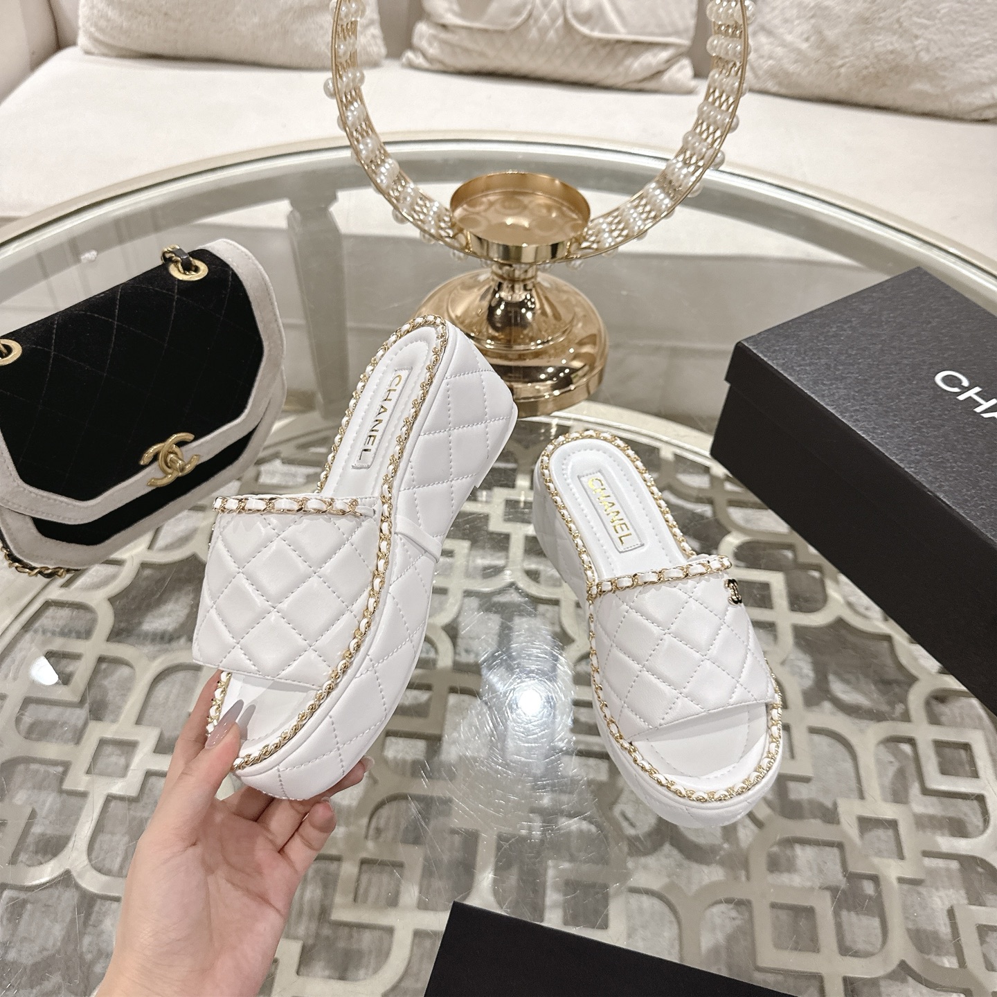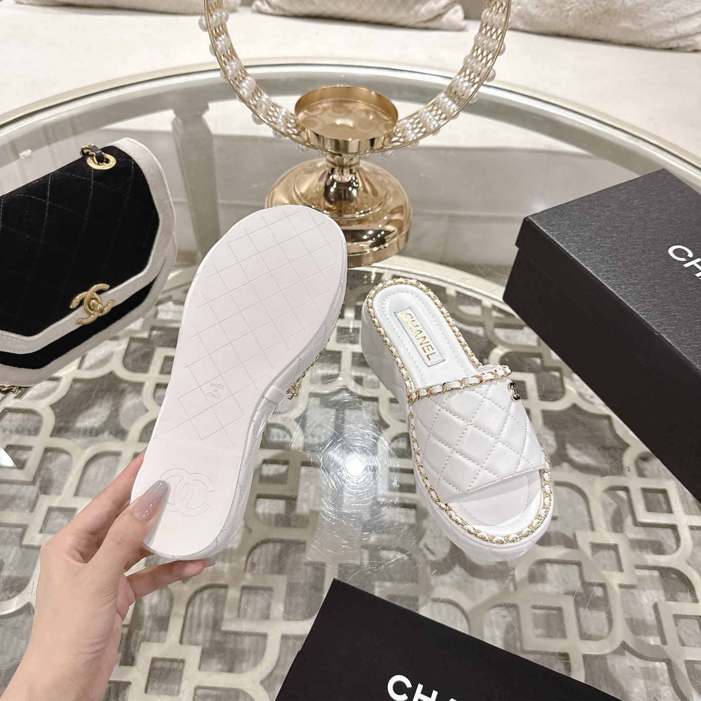 This shoes is AAAAA 1:1 quality (superb). Materials used are identical to the original ones. Chanel trademark marks are indistinguishable to the authentic. Photos take by actual shoes, what you receive will be 100% same with our photos.