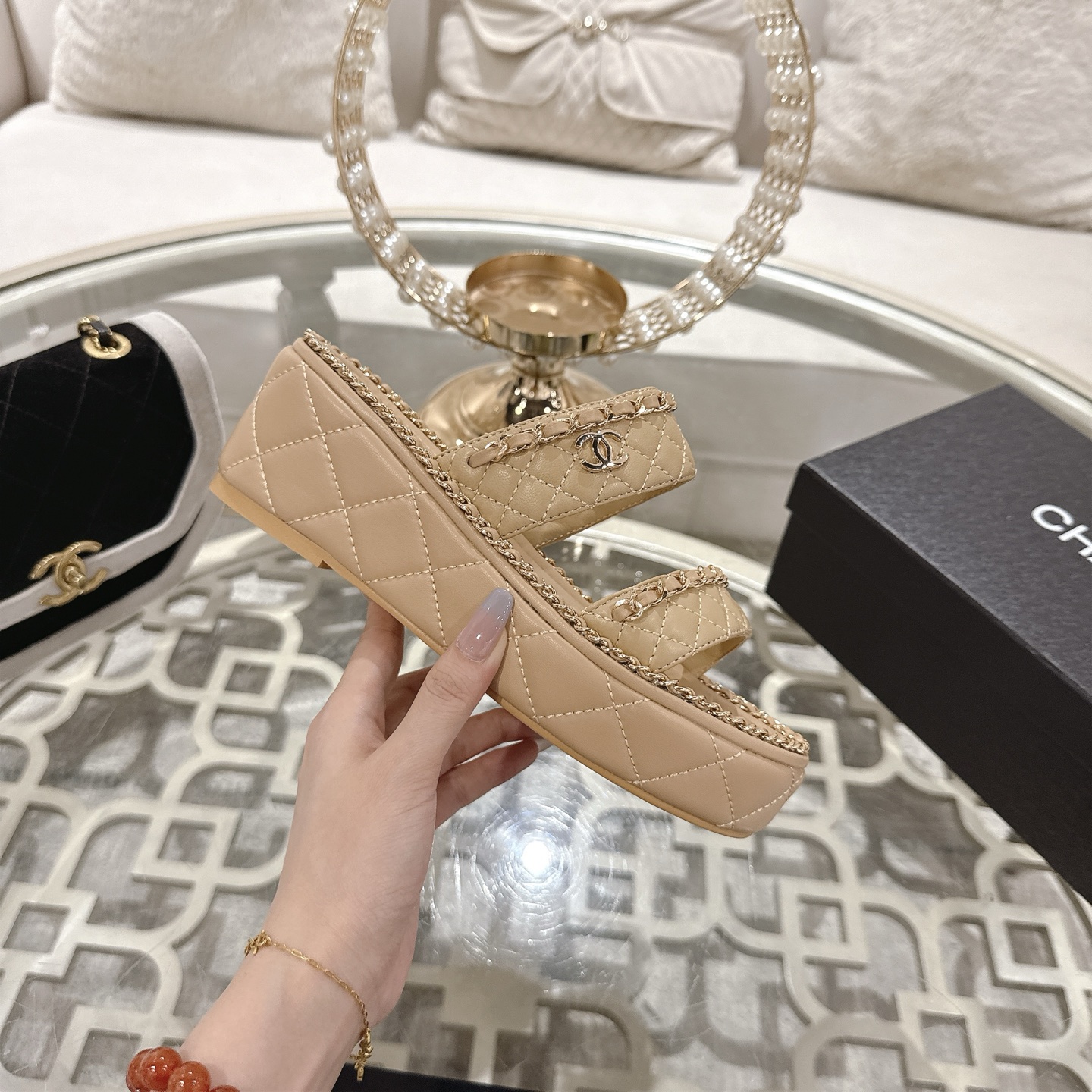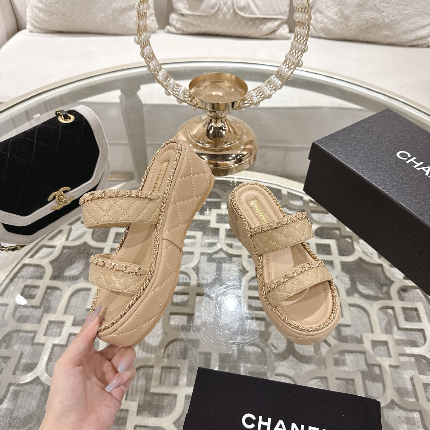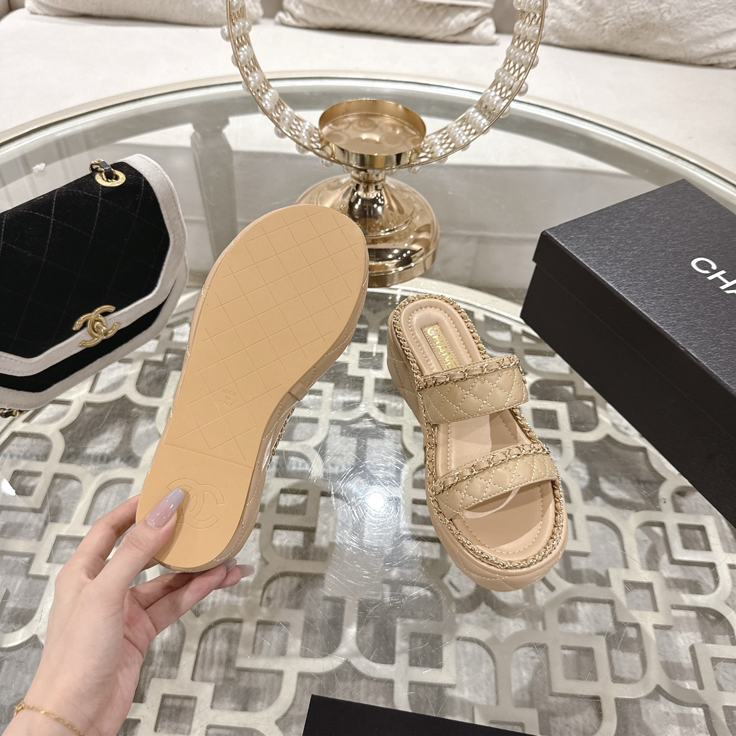 This shoes is AAAAA 1:1 quality (superb). Materials used are identical to the original ones. Chanel trademark marks are indistinguishable to the authentic. Photos take by actual shoes, what you receive will be 100% same with our photos.