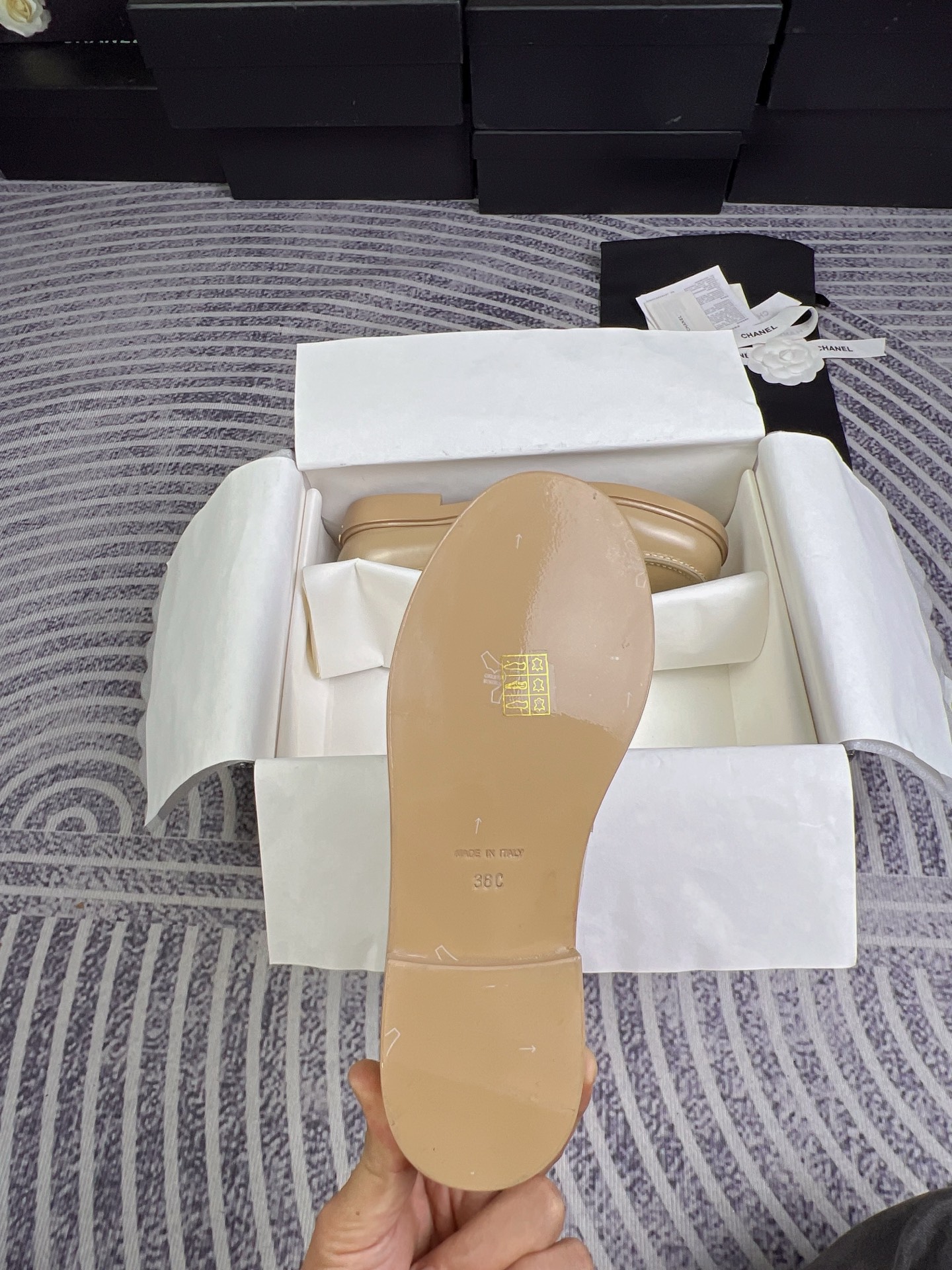 This shoes is AAAAA 1:1 quality (superb). Materials used are identical to the original ones. Chanel trademark marks are indistinguishable to the authentic. Photos take by actual shoes, what you receive will be 100% same with our photos.