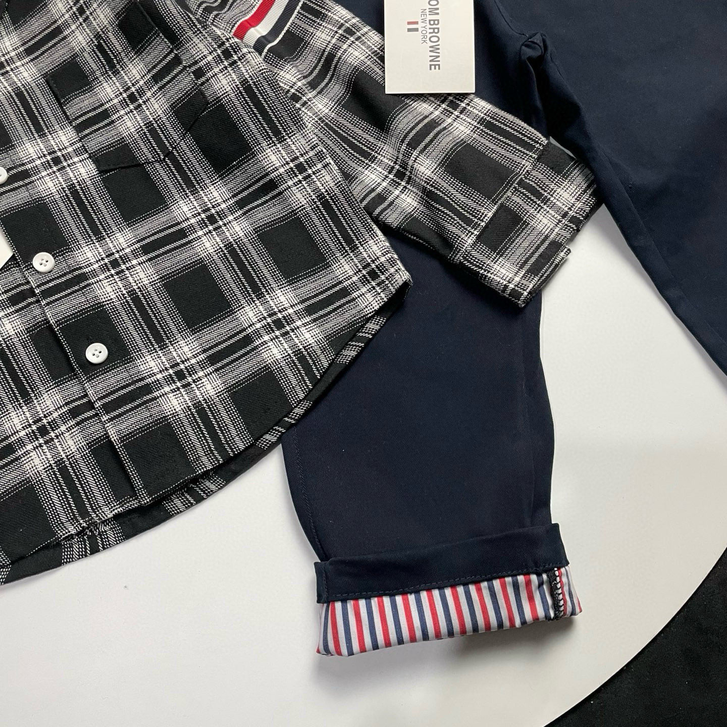 This children's clothes is AAAAA 1:1 quality (superb). Materials used are identical to the original ones. Thom Browne trademark marks are indistinguishable to the authentic. Photos take by actual children's clothes, what you receive will be 100% same with our photos.