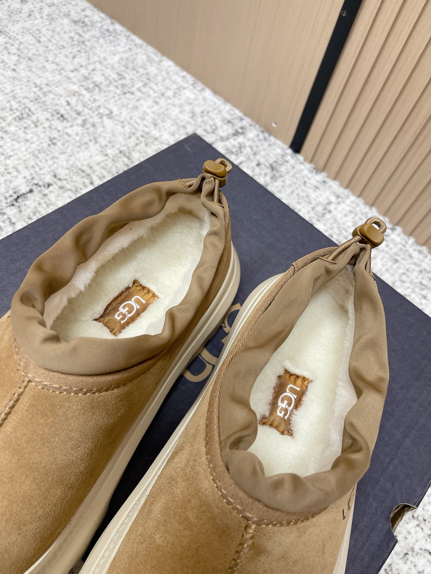 This shoes is AAAAA 1:1 quality (superb). Materials used are identical to the original ones. UGG trademark marks are indistinguishable to the authentic. Photos take by actual shoes, what you receive will be 100% same with our photos.