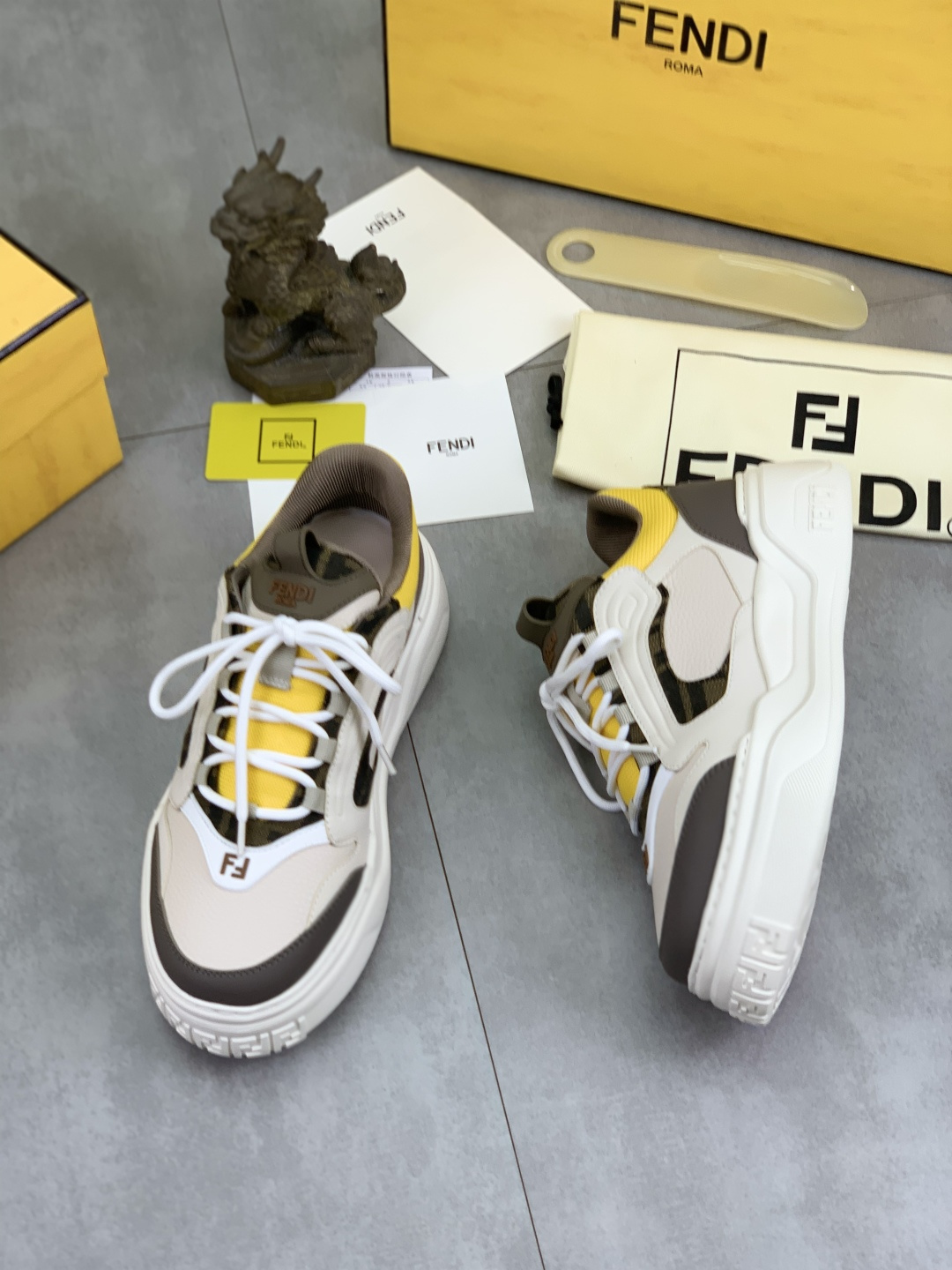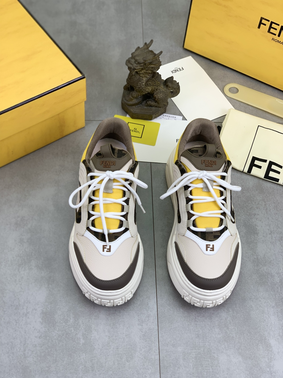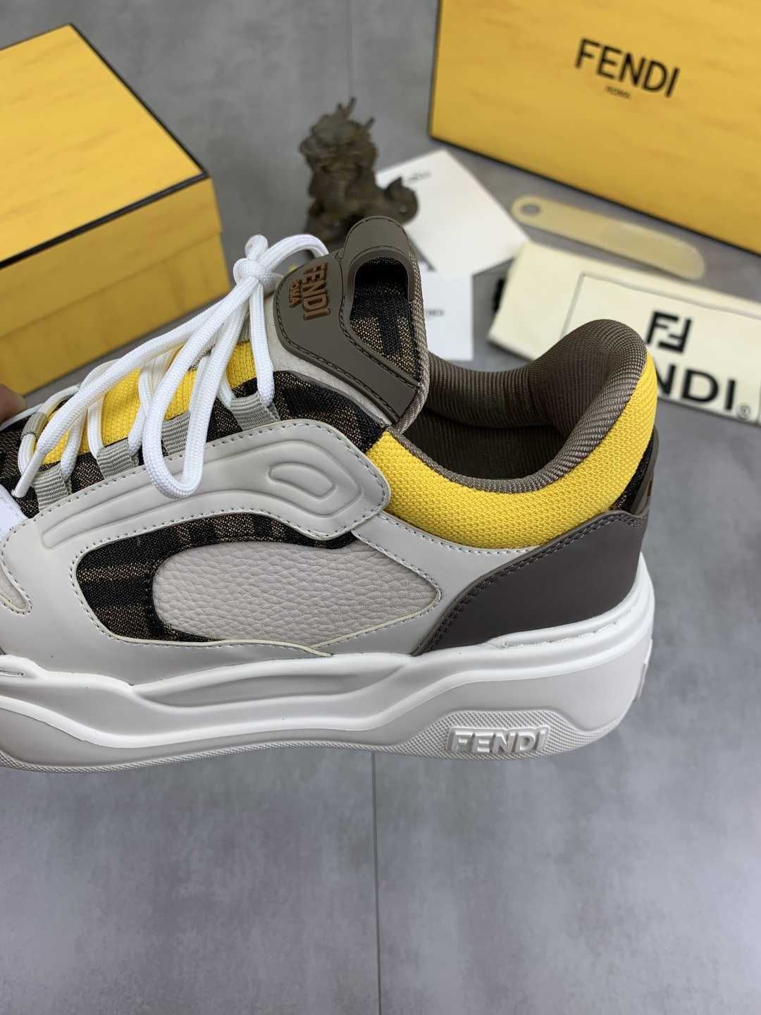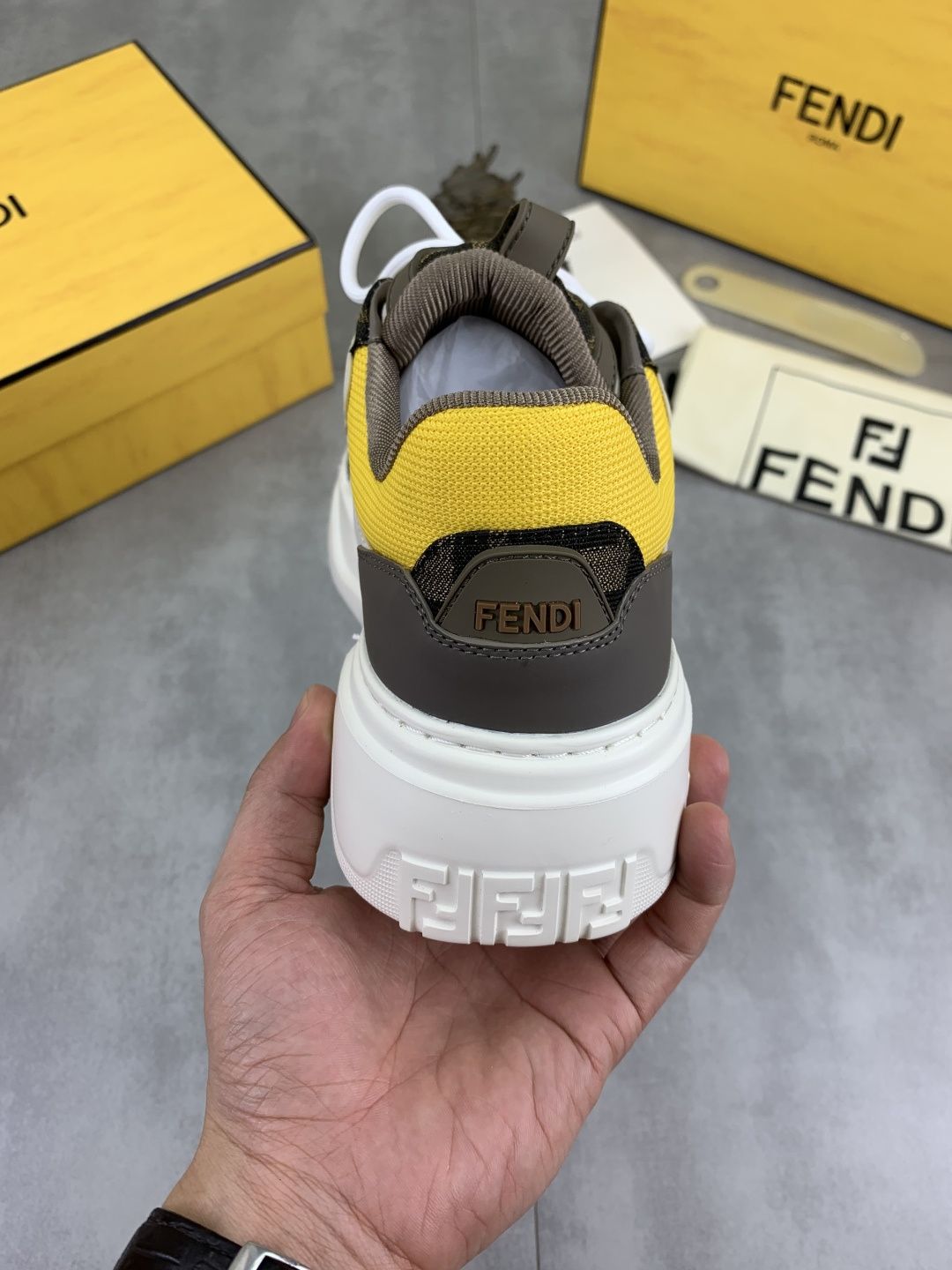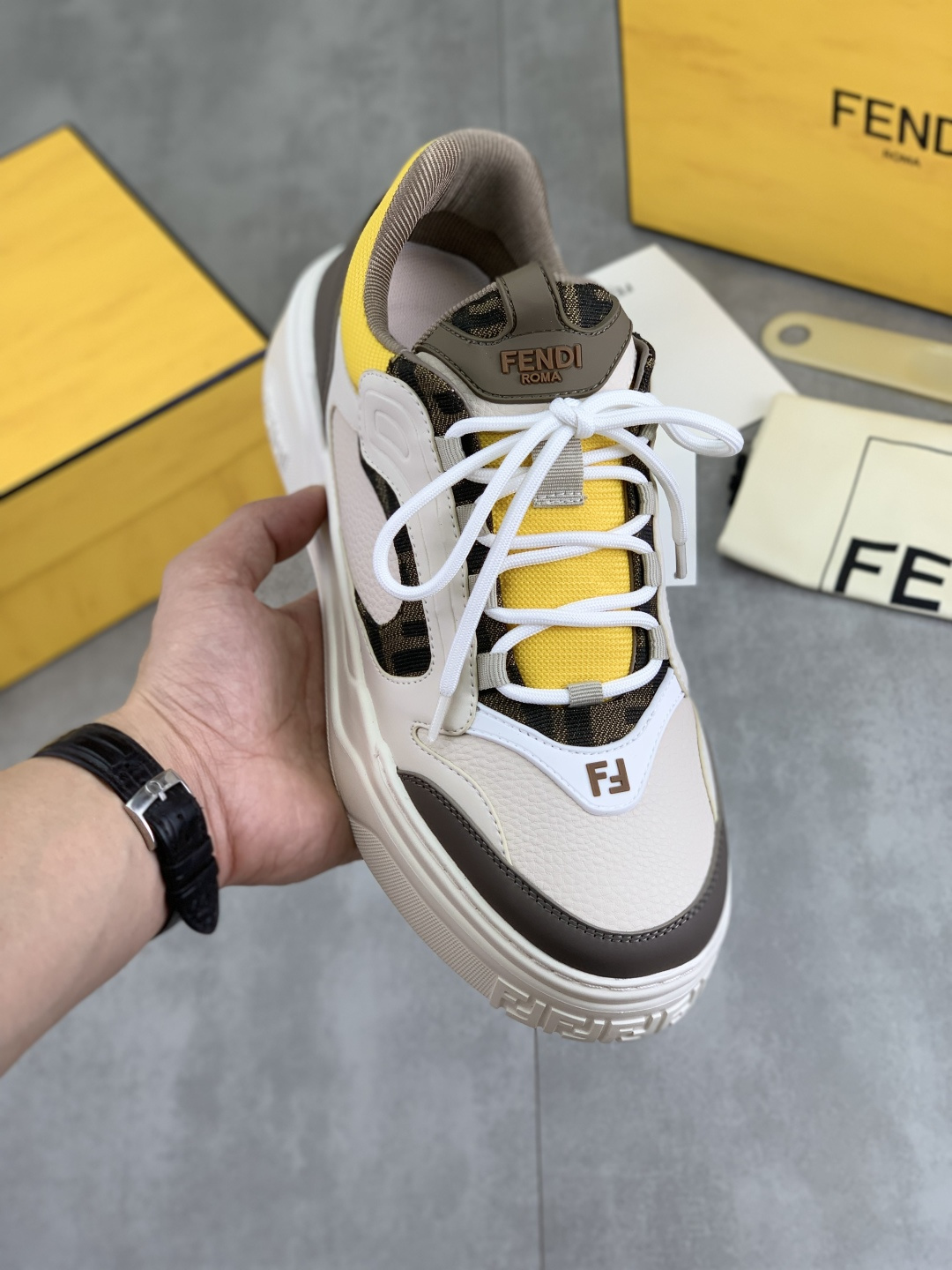 This shoes is AAAAA 1:1 quality (superb). Materials used are identical to the original ones. Fendi trademark marks are indistinguishable to the authentic. Photos take by actual shoes, what you receive will be 100% same with our photos.