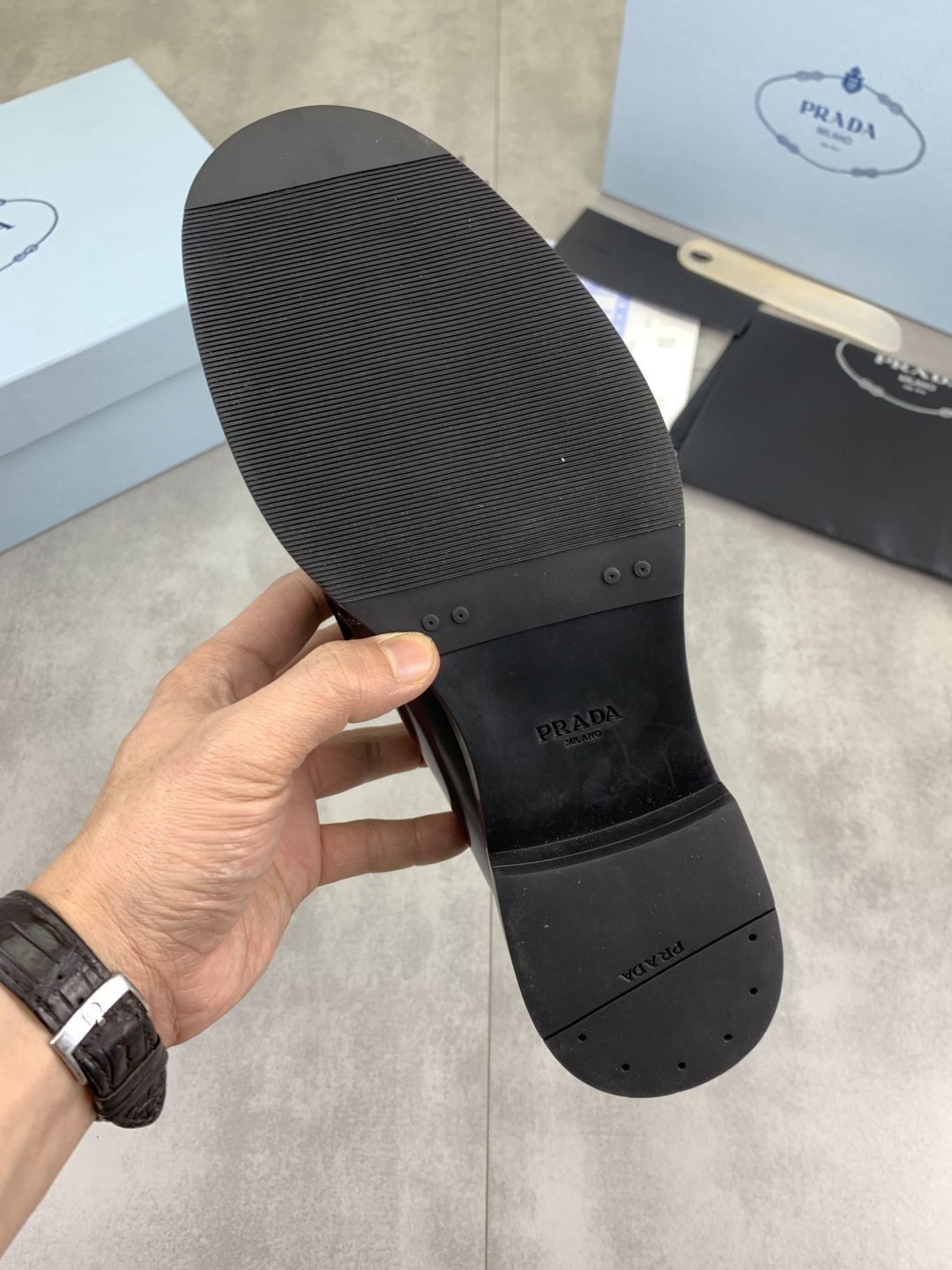 This shoes is AAAAA 1:1 quality (superb). Materials used are identical to the original ones. Prada trademark marks are indistinguishable to the authentic. Photos take by actual shoes, what you receive will be 100% same with our photos.