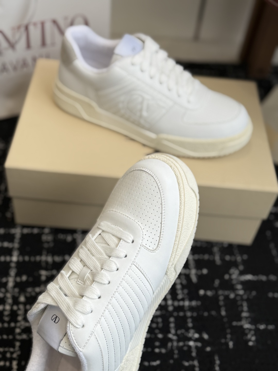 This shoes is AAAAA 1:1 quality (superb). Materials used are identical to the original ones. Valentino trademark marks are indistinguishable to the authentic. Photos take by actual shoes, what you receive will be 100% same with our photos.