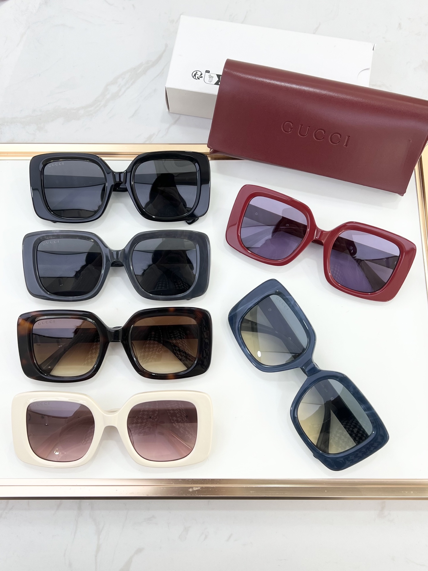 This sunglasses is AAAAA 1:1 quality (superb). Materials used are identical to the original ones. Gucci trademark marks are indistinguishable to the authentic. Photos take by actual sunglasses, what you receive will be 100% same with our photos.