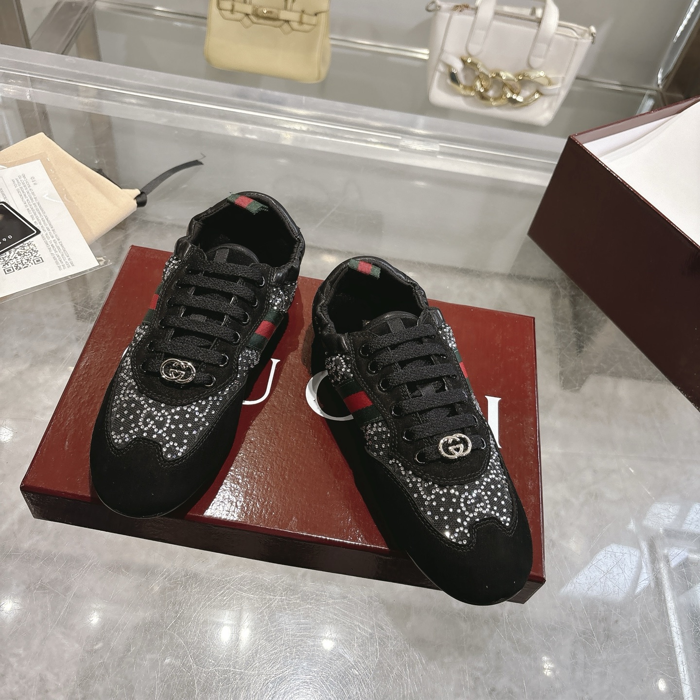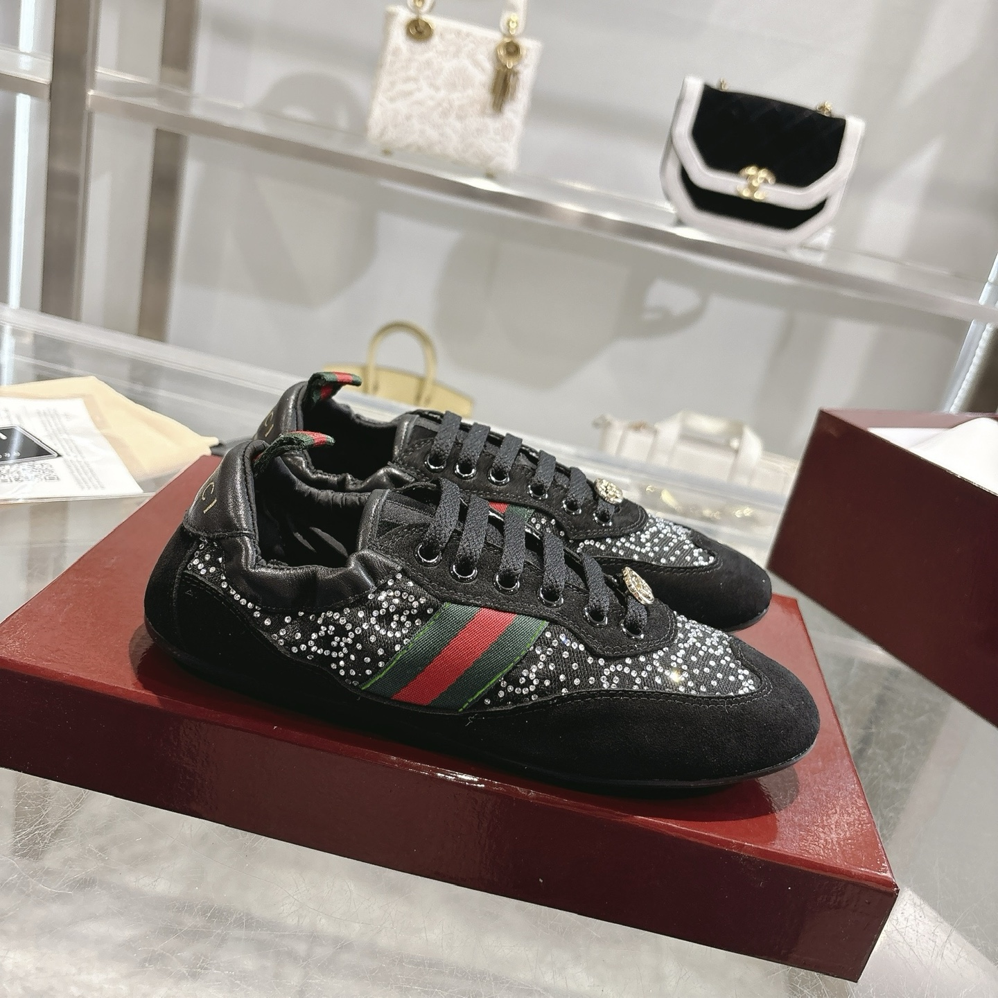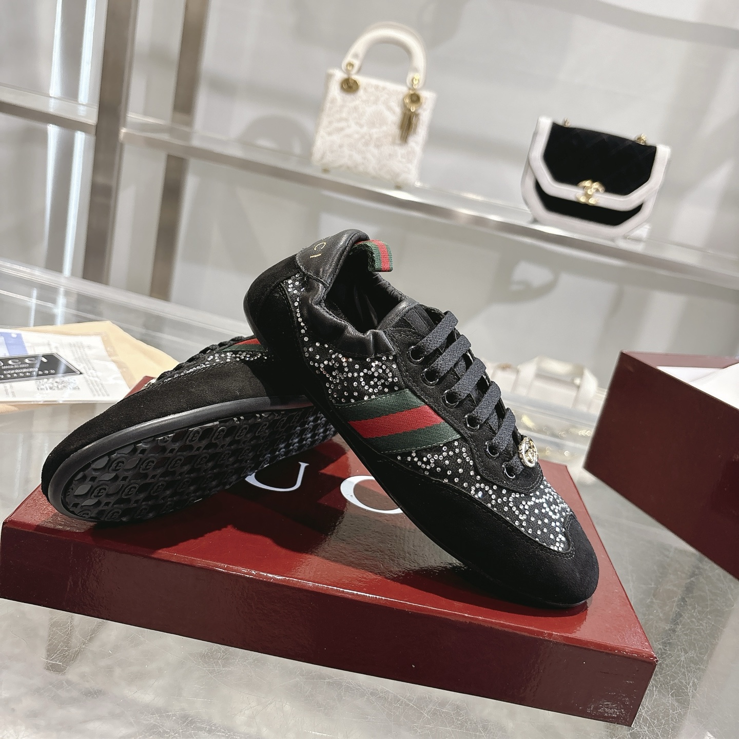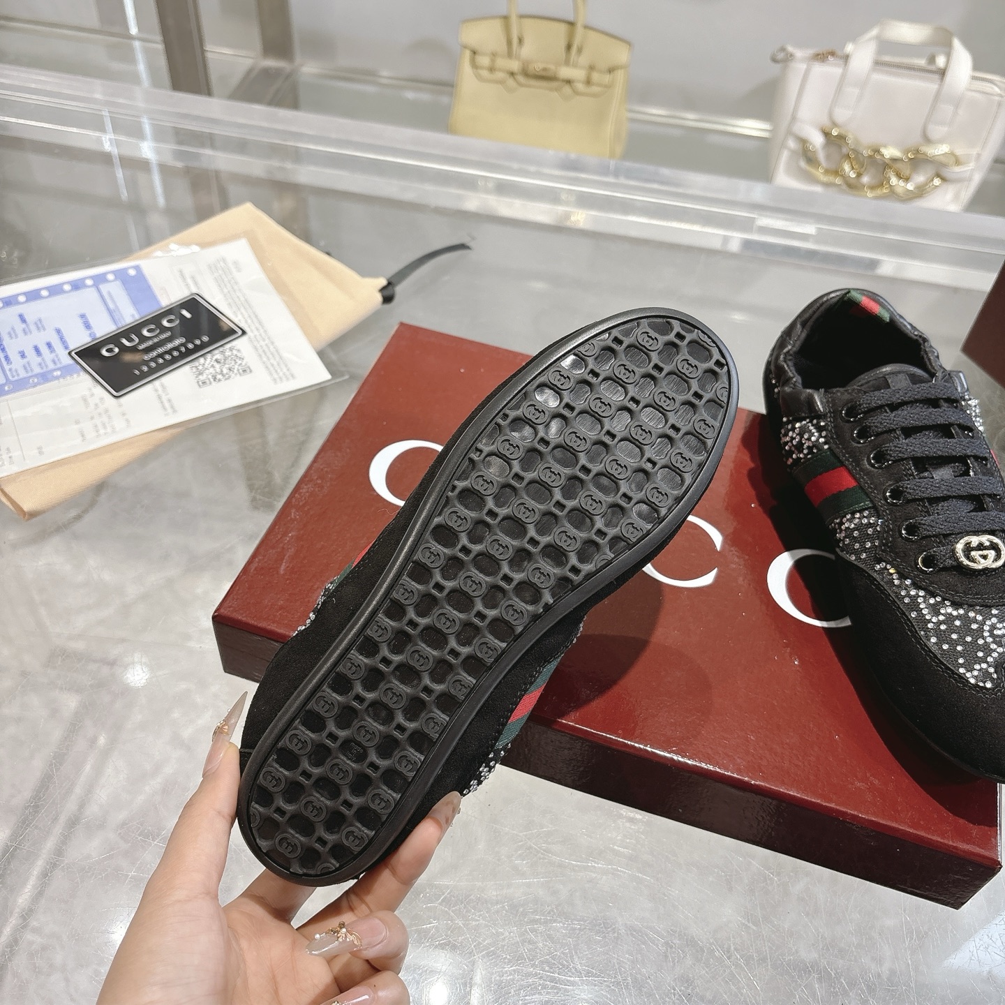 This shoes is AAAAA 1:1 quality (superb). Materials used are identical to the original ones. Gucci trademark marks are indistinguishable to the authentic. Photos take by actual shoes, what you receive will be 100% same with our photos.