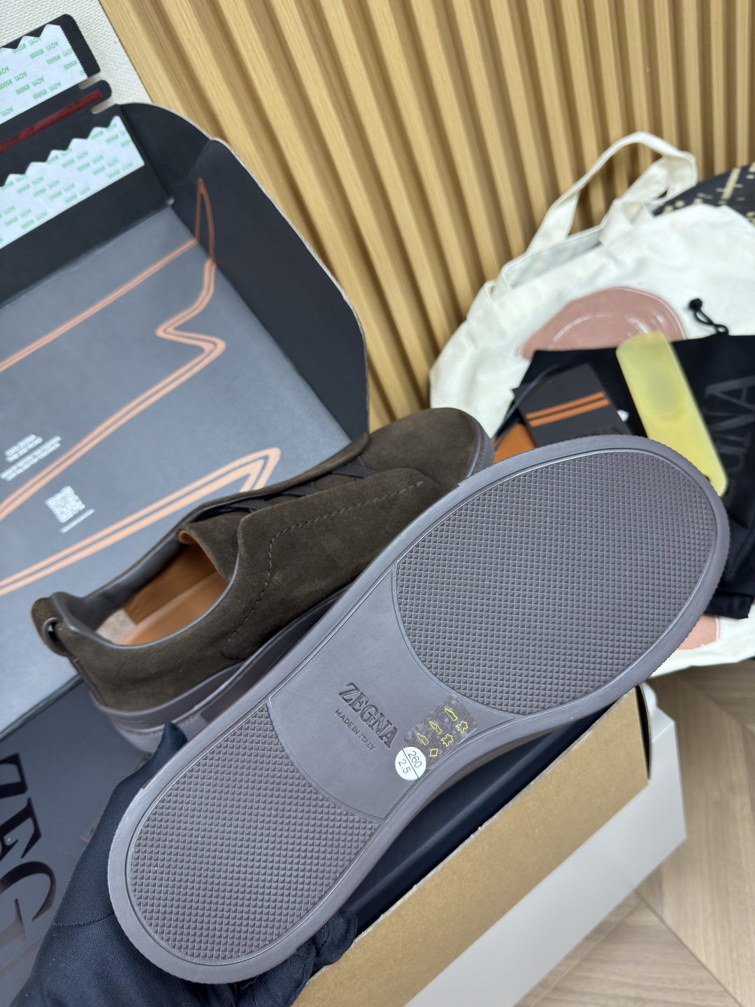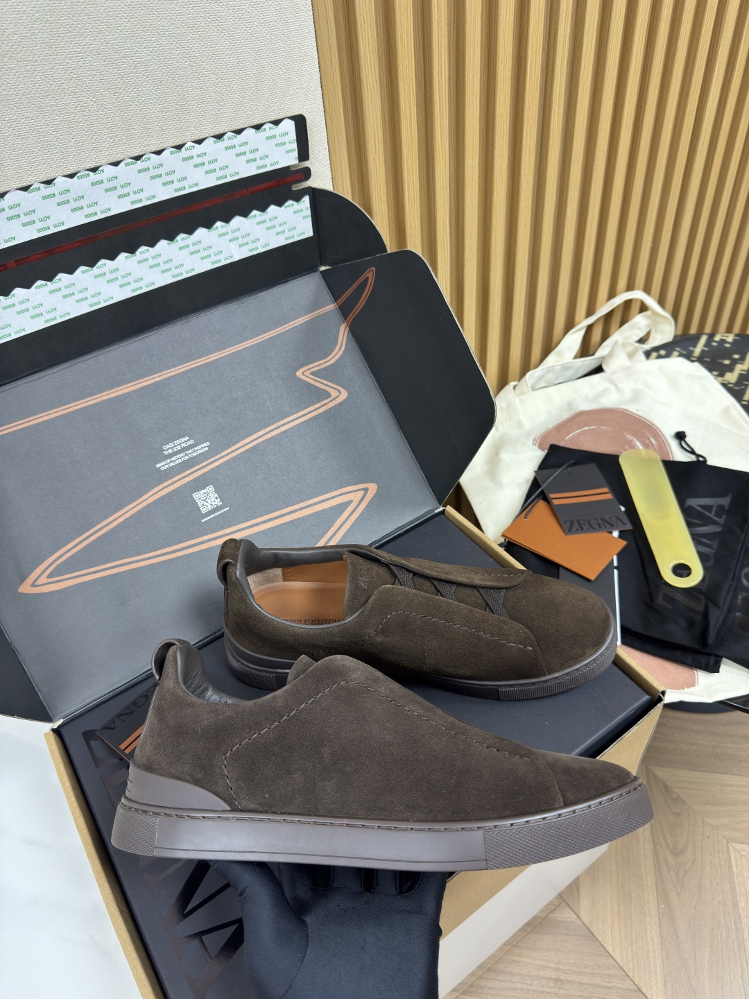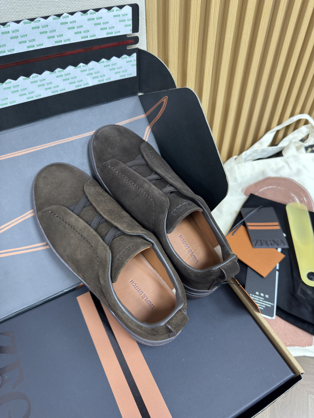 This shoes is AAAAA 1:1 quality (superb). Materials used are identical to the original ones. Zegna trademark marks are indistinguishable to the authentic. Photos take by actual shoes, what you receive will be 100% same with our photos.