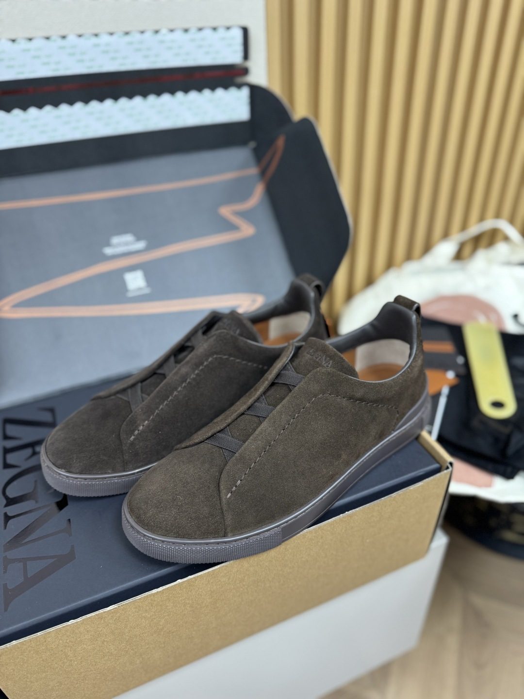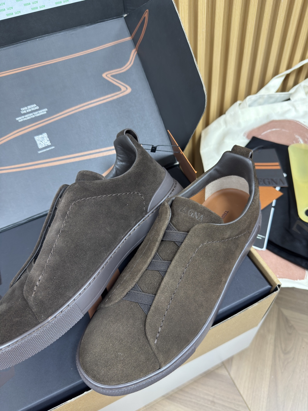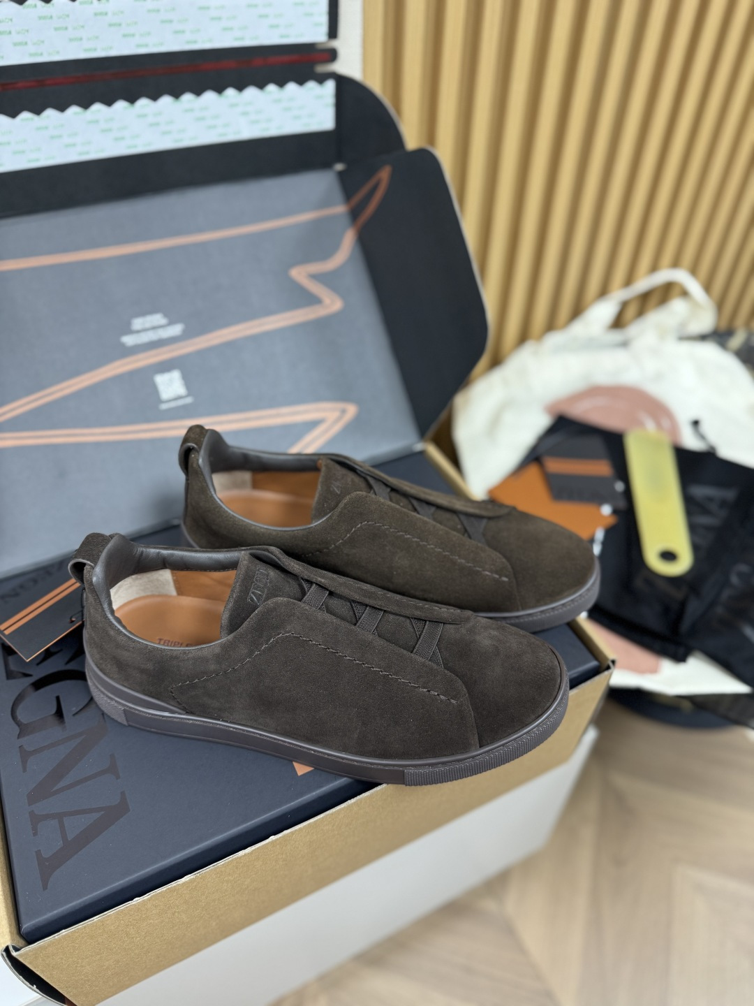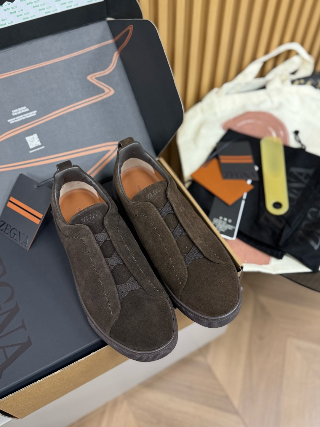 This shoes is AAAAA 1:1 quality (superb). Materials used are identical to the original ones. Zegna trademark marks are indistinguishable to the authentic. Photos take by actual shoes, what you receive will be 100% same with our photos.
