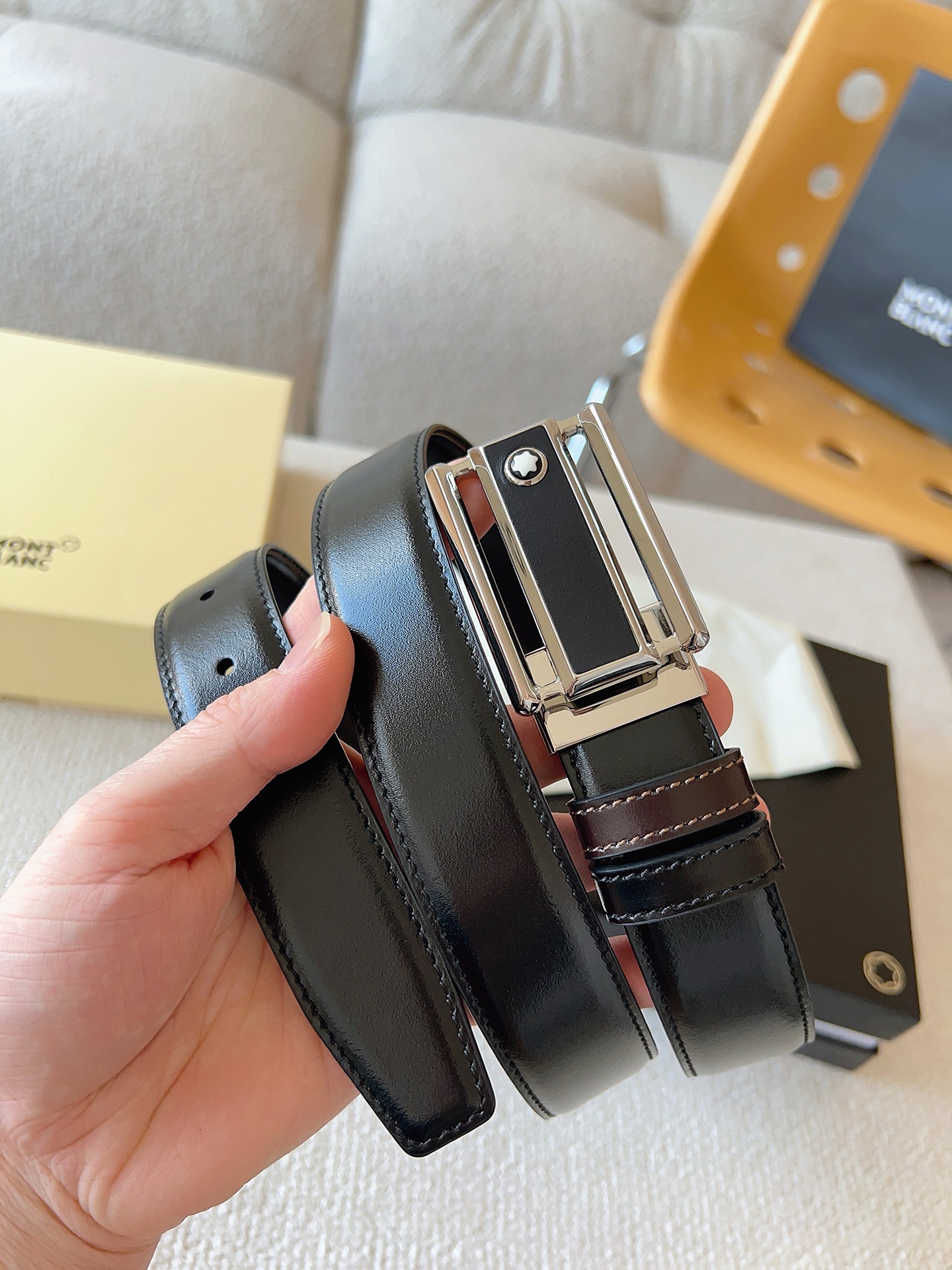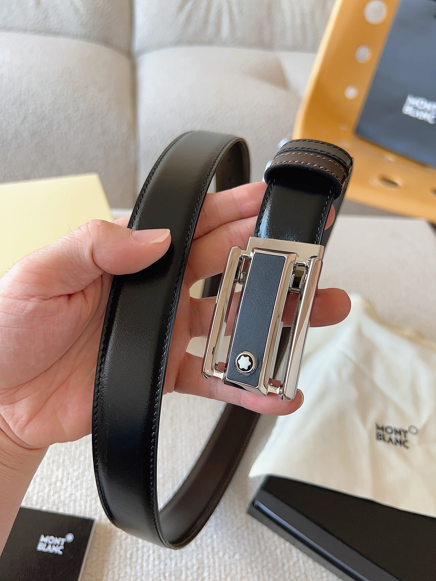 This belt is AAAAA 1:1 quality (superb). Materials used are identical to the original ones. Montblanc trademark marks are indistinguishable to the authentic. Photos take by actual belt, what you receive will be 100% same with our photos.