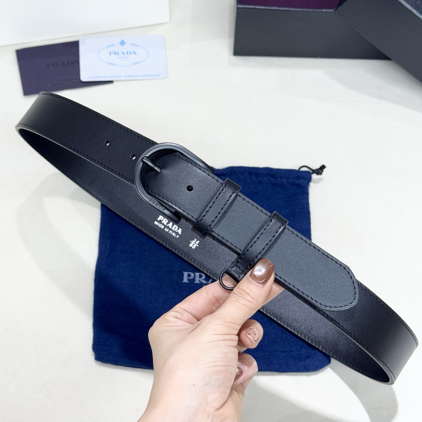This belt is AAAAA 1:1 quality (superb). Materials used are identical to the original ones. Prada trademark marks are indistinguishable to the authentic. Photos take by actual belt, what you receive will be 100% same with our photos.