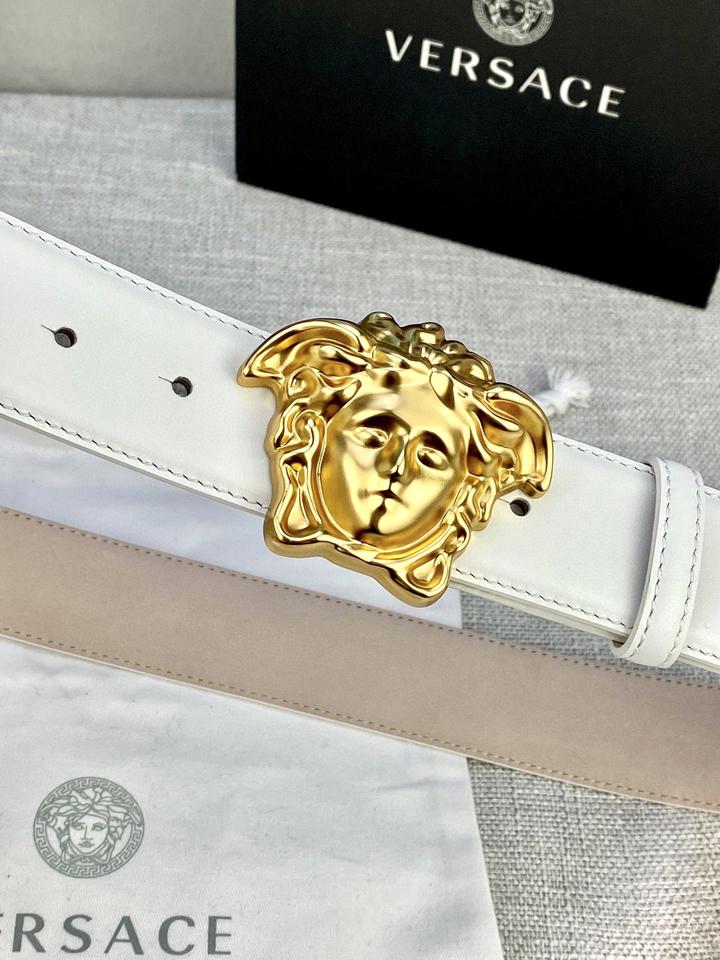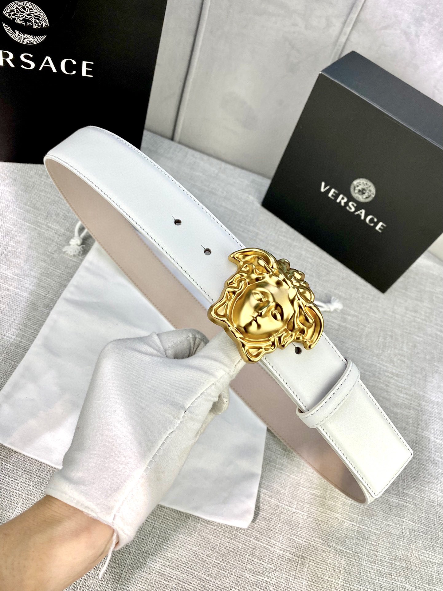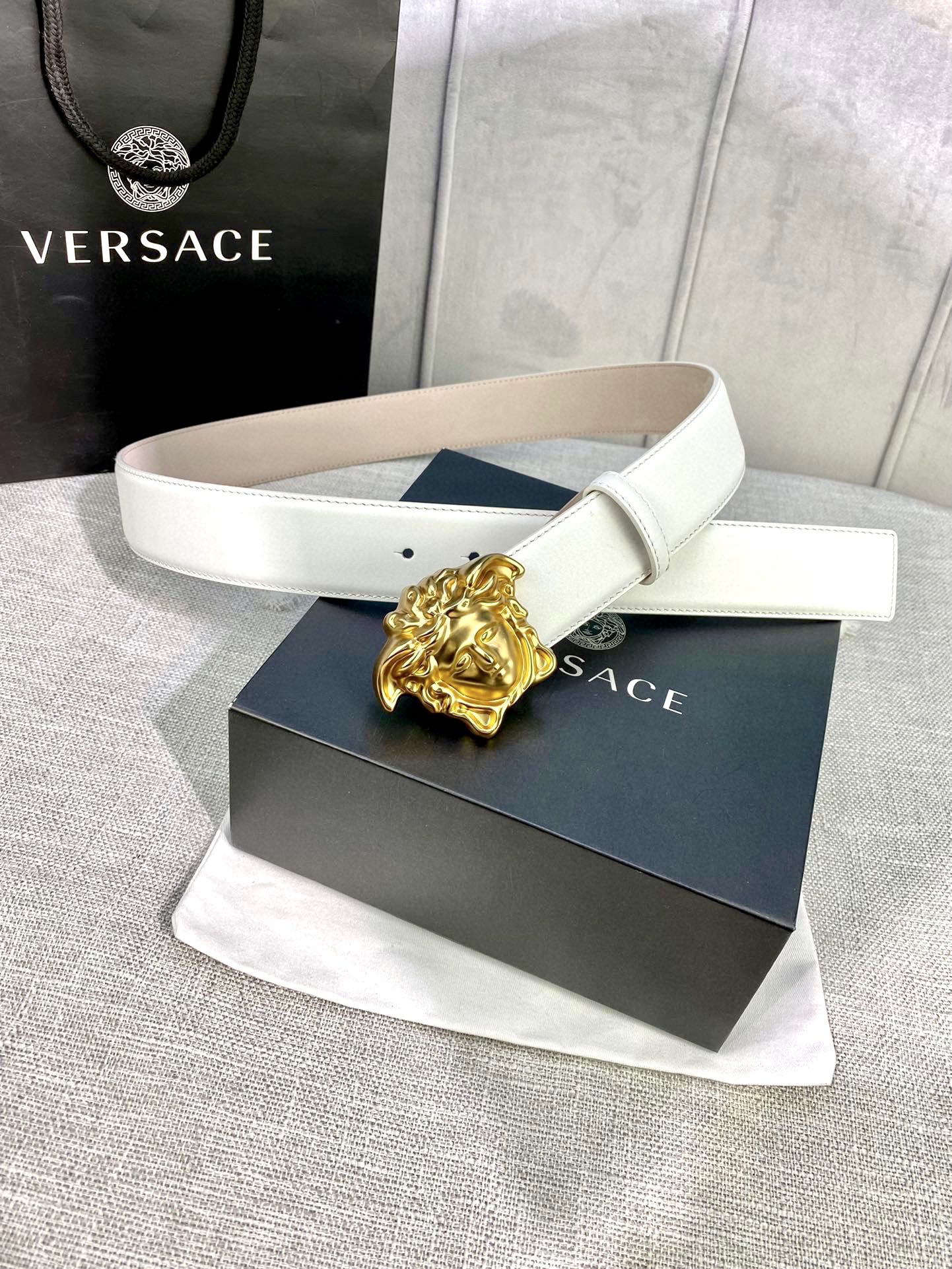 This belt is AAAAA 1:1 quality (superb). Materials used are identical to the original ones. Versace trademark marks are indistinguishable to the authentic. Photos take by actual belt, what you receive will be 100% same with our photos.
