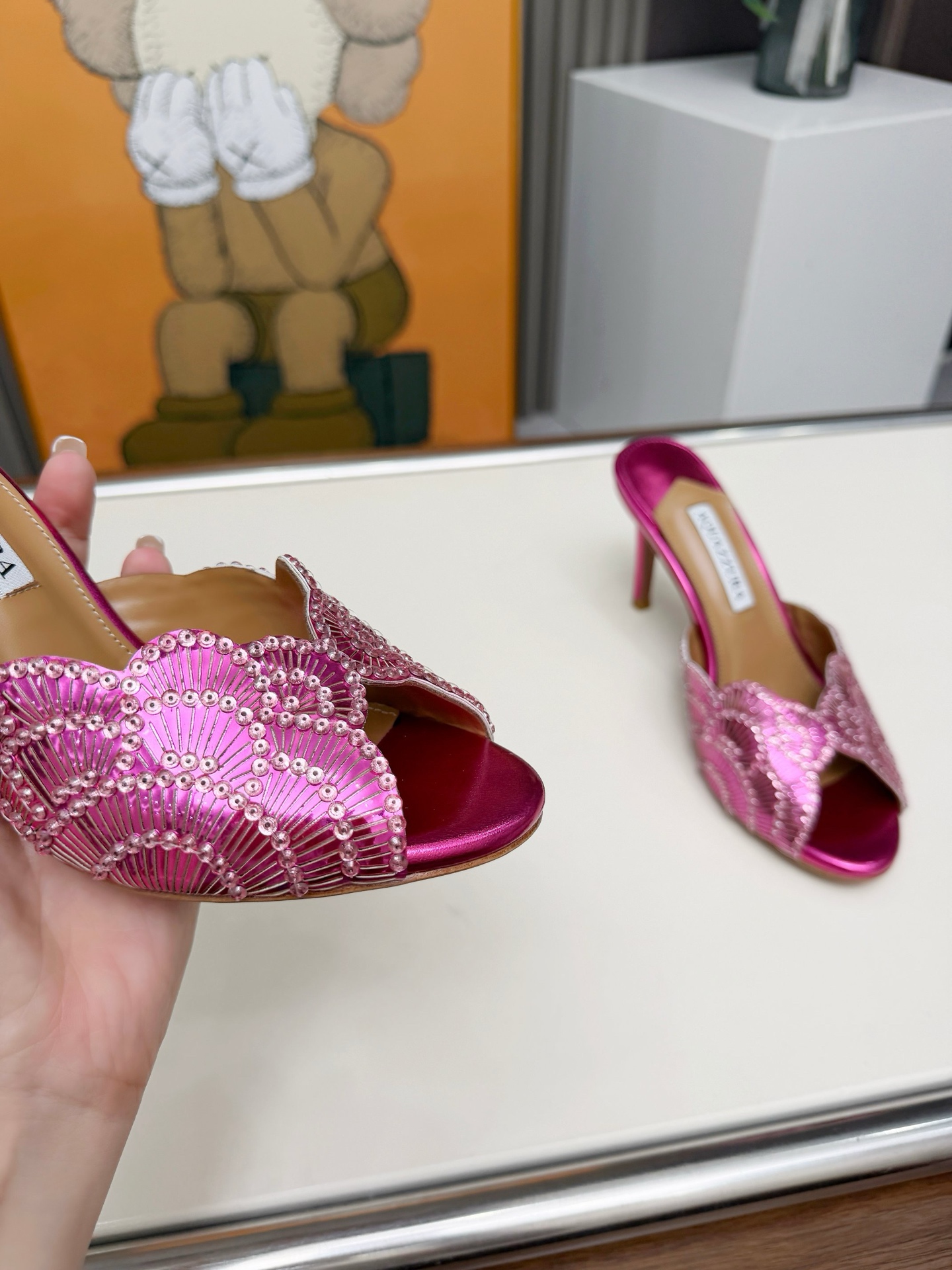 This shoes is AAAAA 1:1 quality (superb). Materials used are identical to the original ones. Aquazzura trademark marks are indistinguishable to the authentic. Photos take by actual shoes, what you receive will be 100% same with our photos.