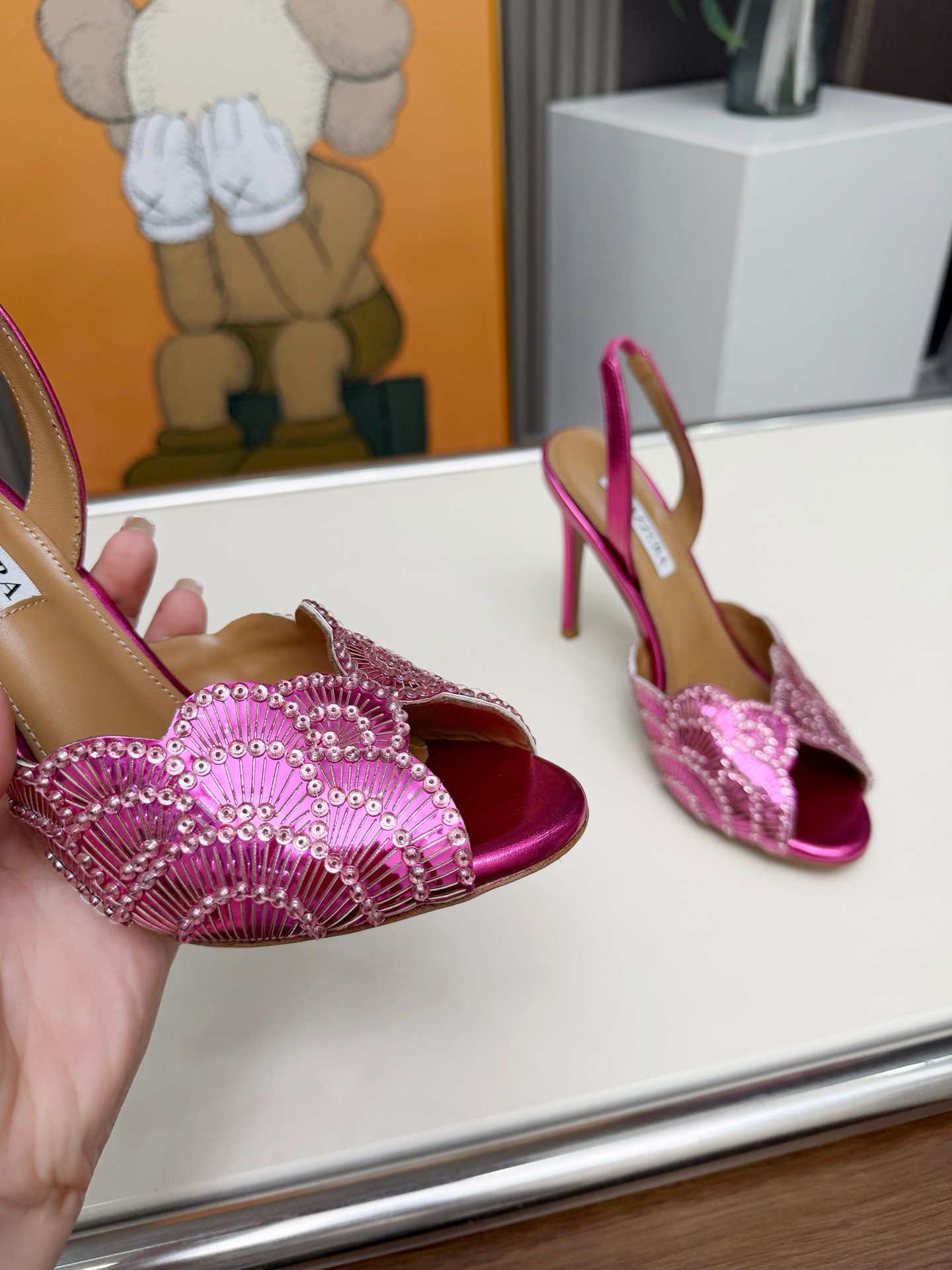 This shoes is AAAAA 1:1 quality (superb). Materials used are identical to the original ones. Aquazzura trademark marks are indistinguishable to the authentic. Photos take by actual shoes, what you receive will be 100% same with our photos.