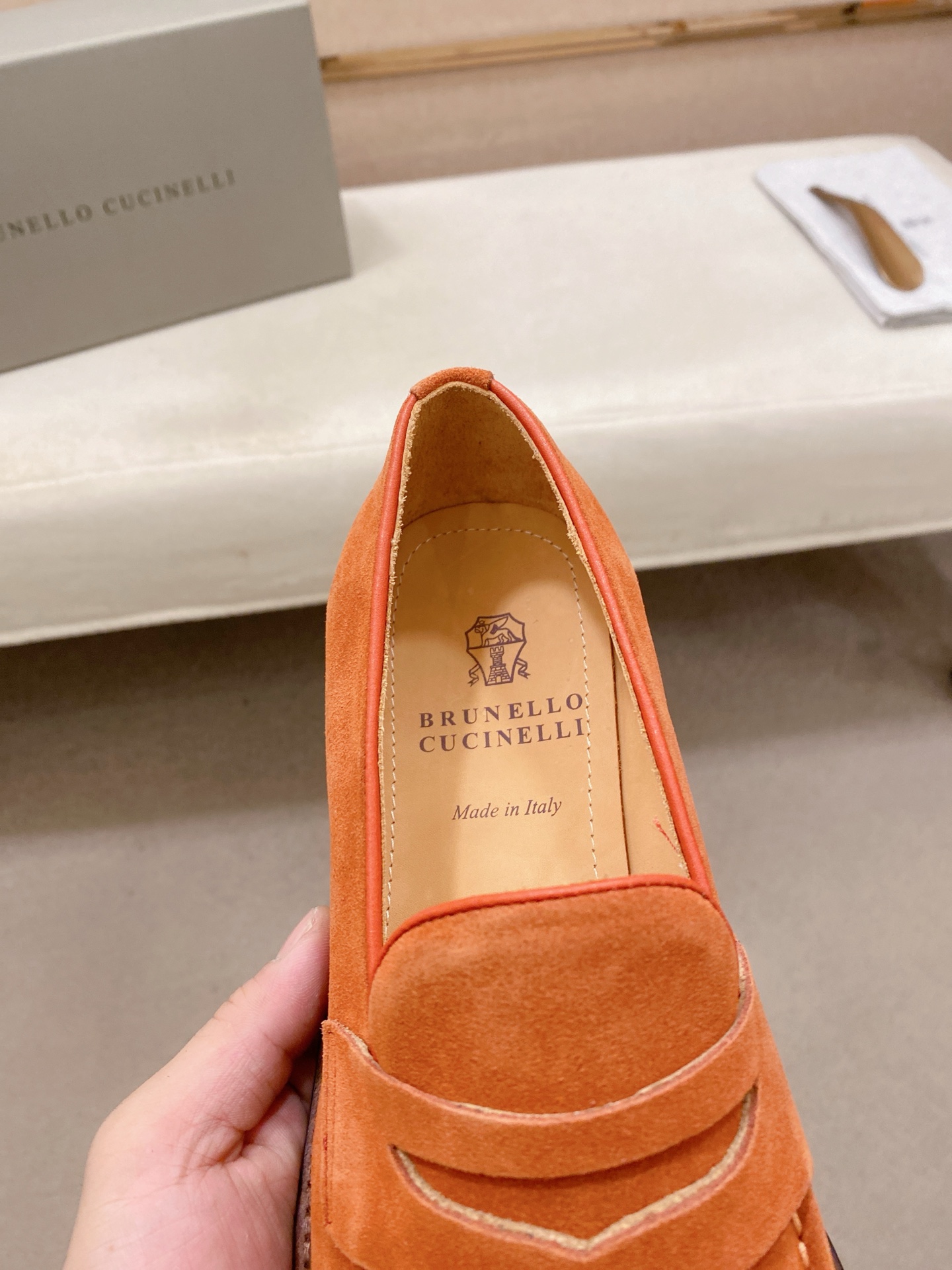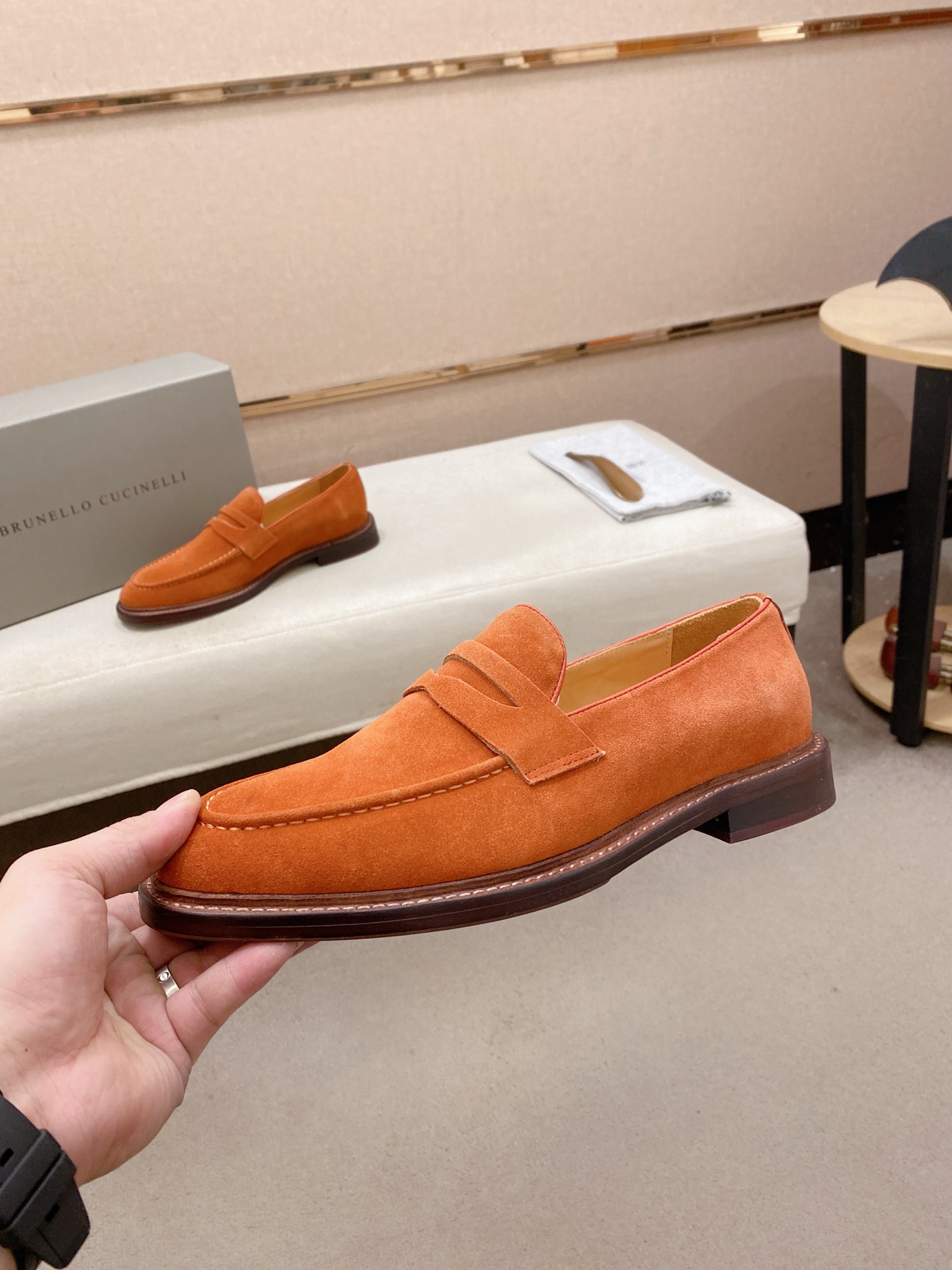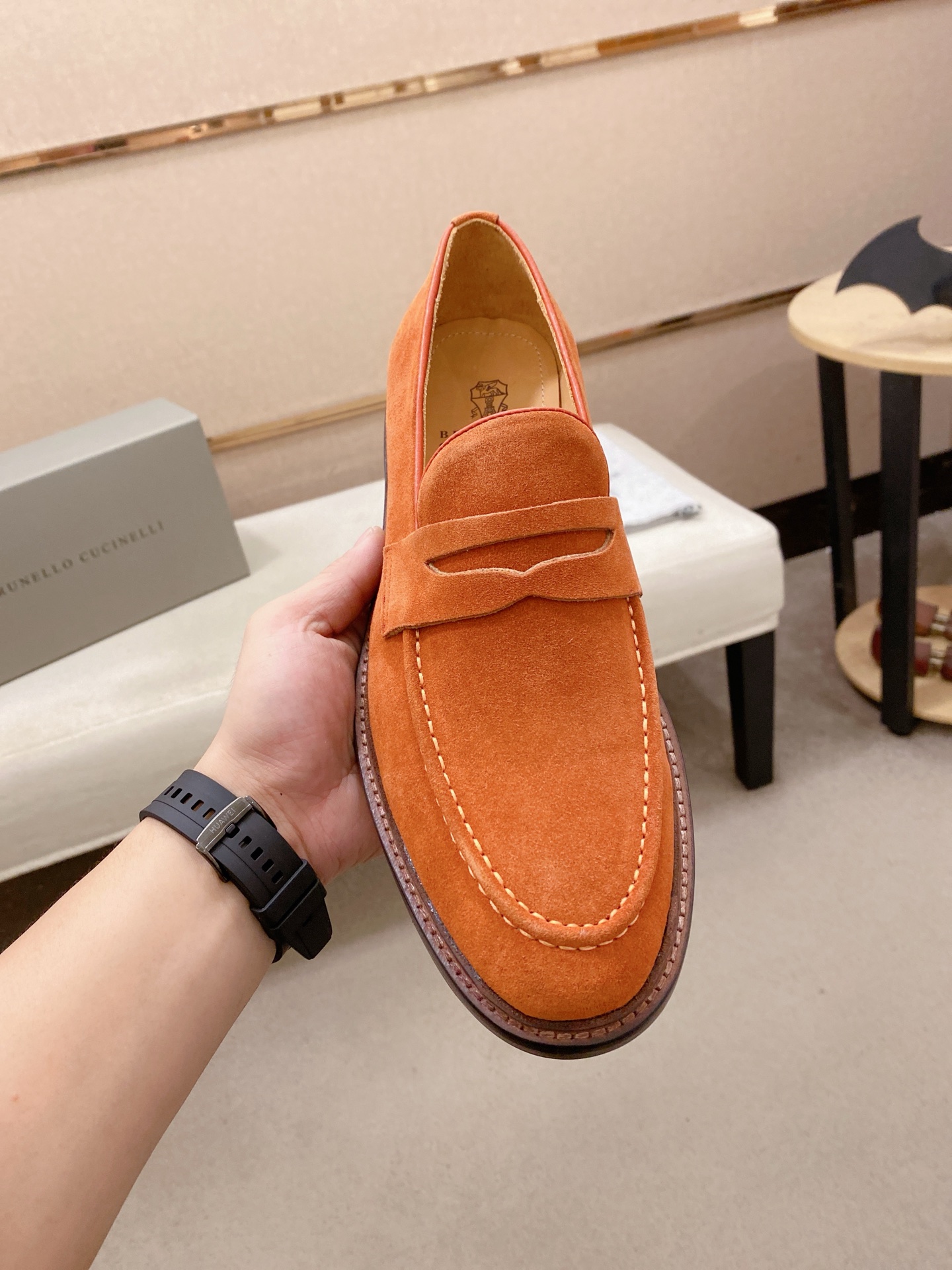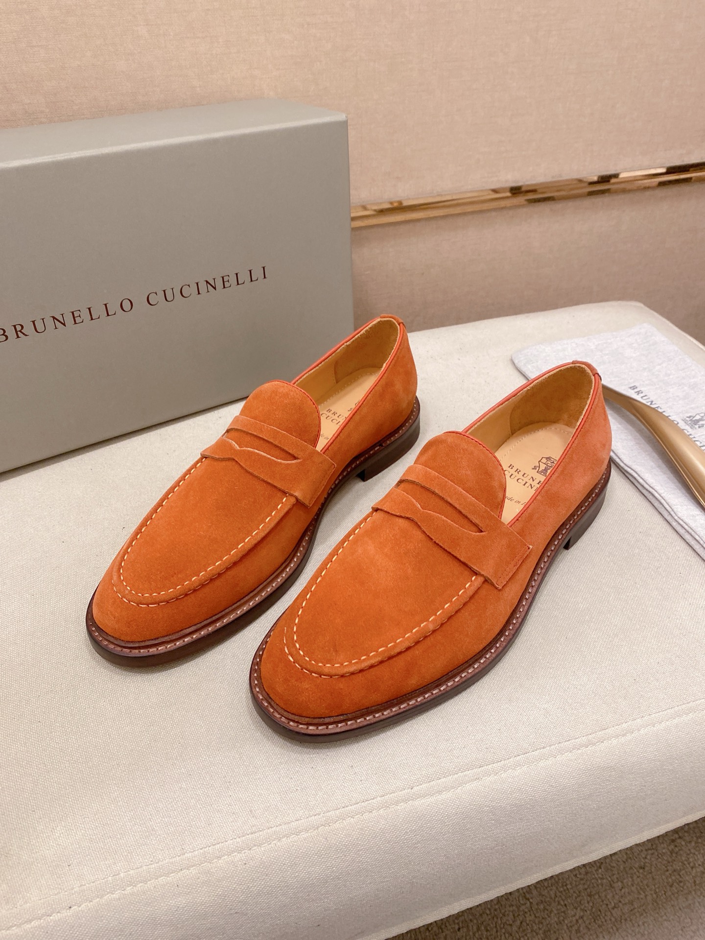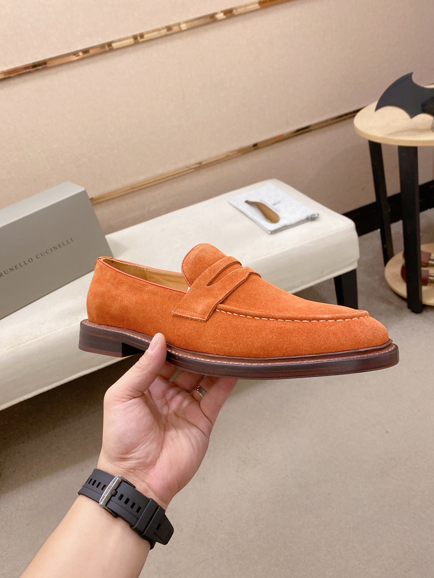 This shoes is AAAAA 1:1 quality (superb). Materials used are identical to the original ones. Brunello Cucinelli trademark marks are indistinguishable to the authentic. Photos take by actual shoes, what you receive will be 100% same with our photos.