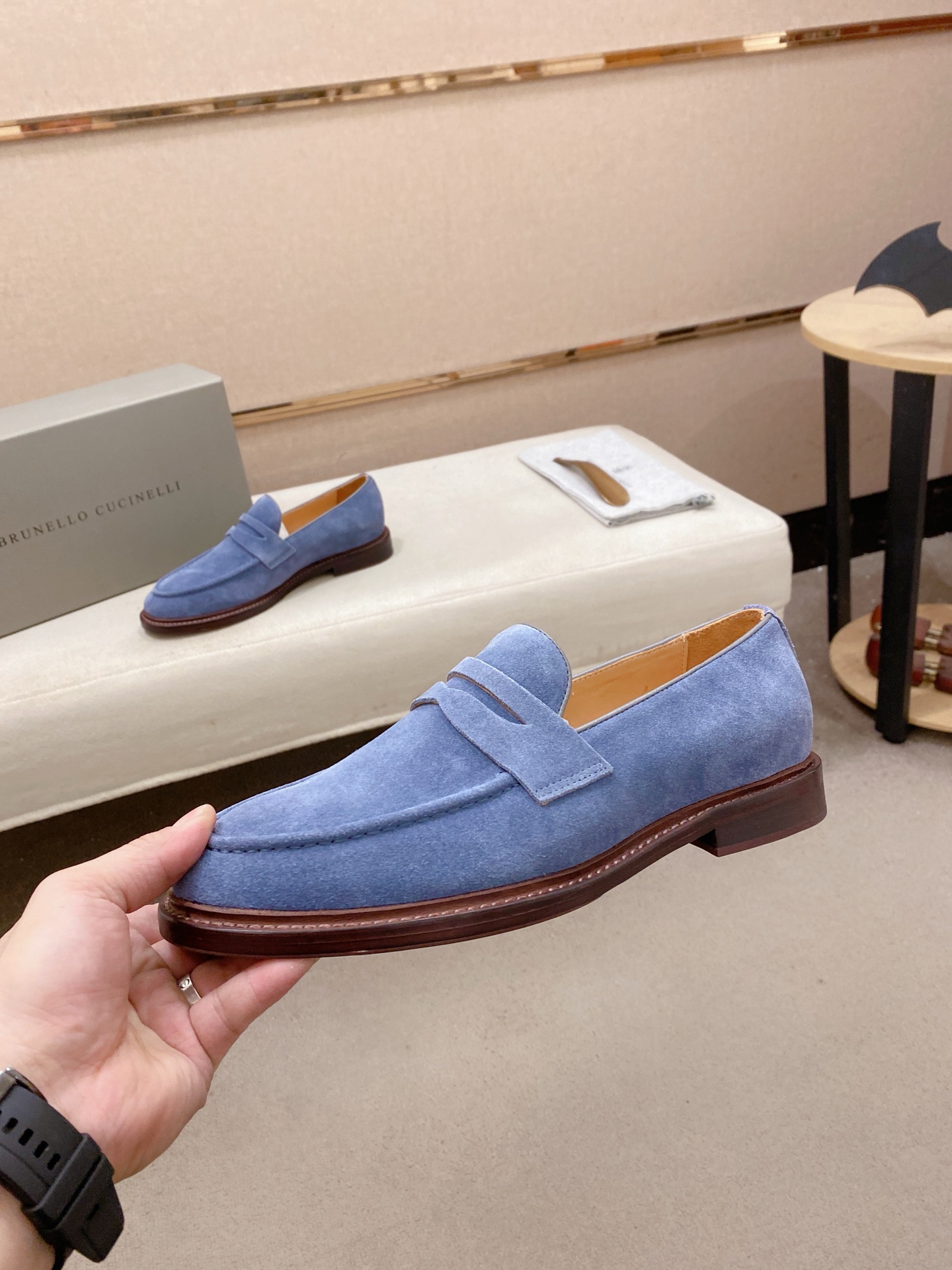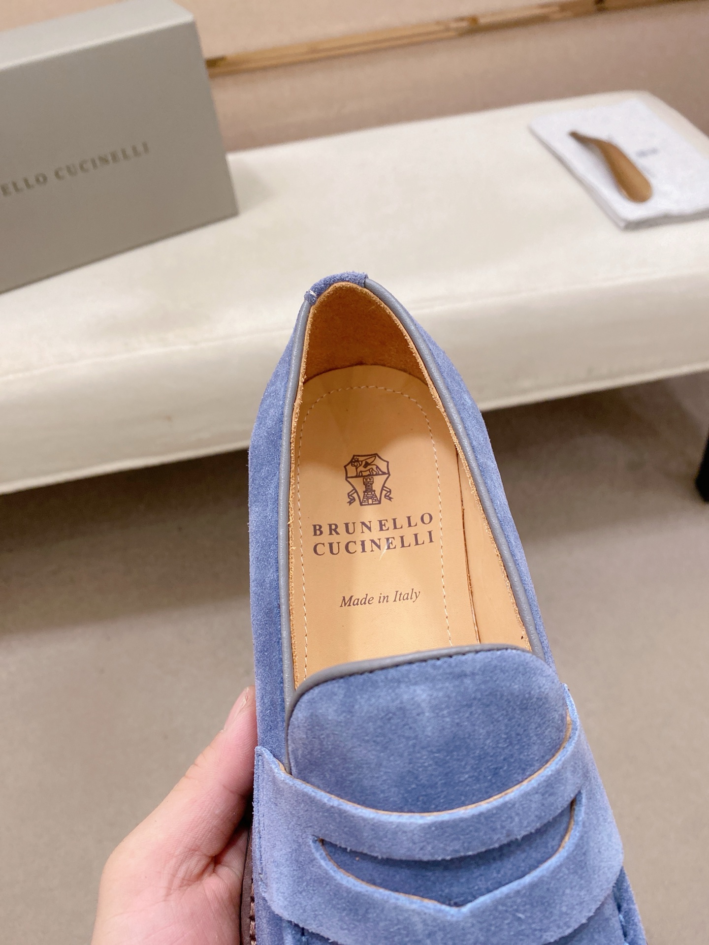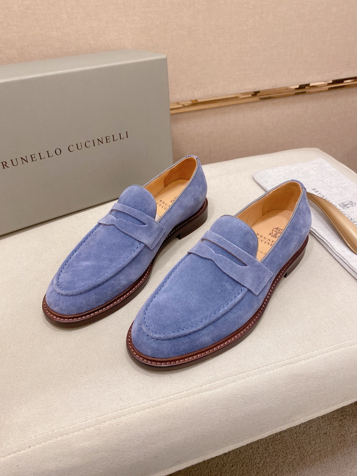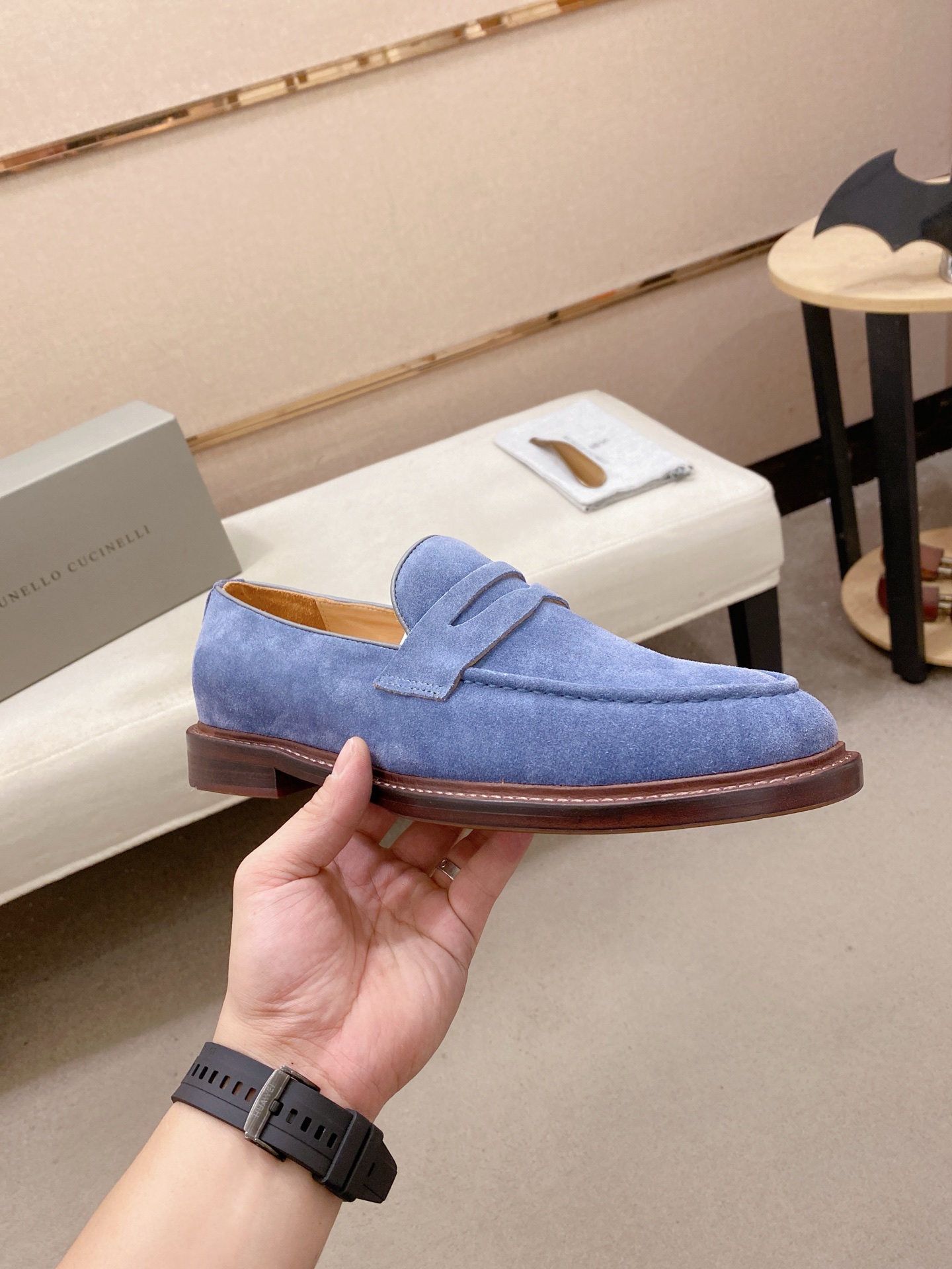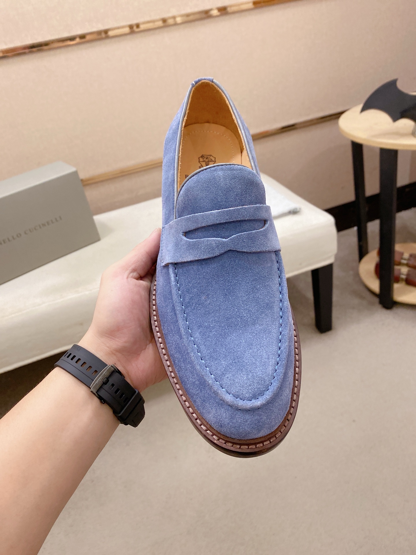 This shoes is AAAAA 1:1 quality (superb). Materials used are identical to the original ones. Brunello Cucinelli trademark marks are indistinguishable to the authentic. Photos take by actual shoes, what you receive will be 100% same with our photos.