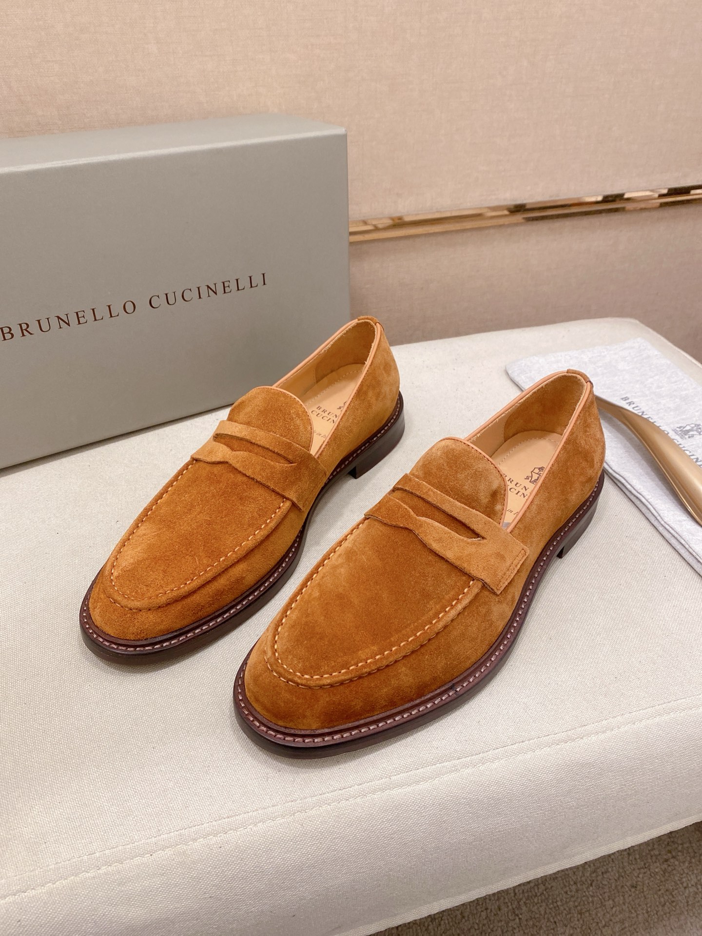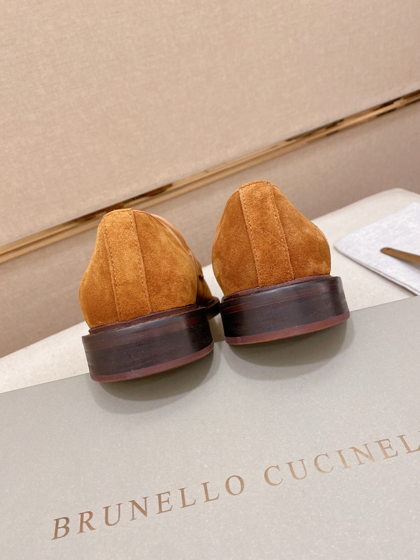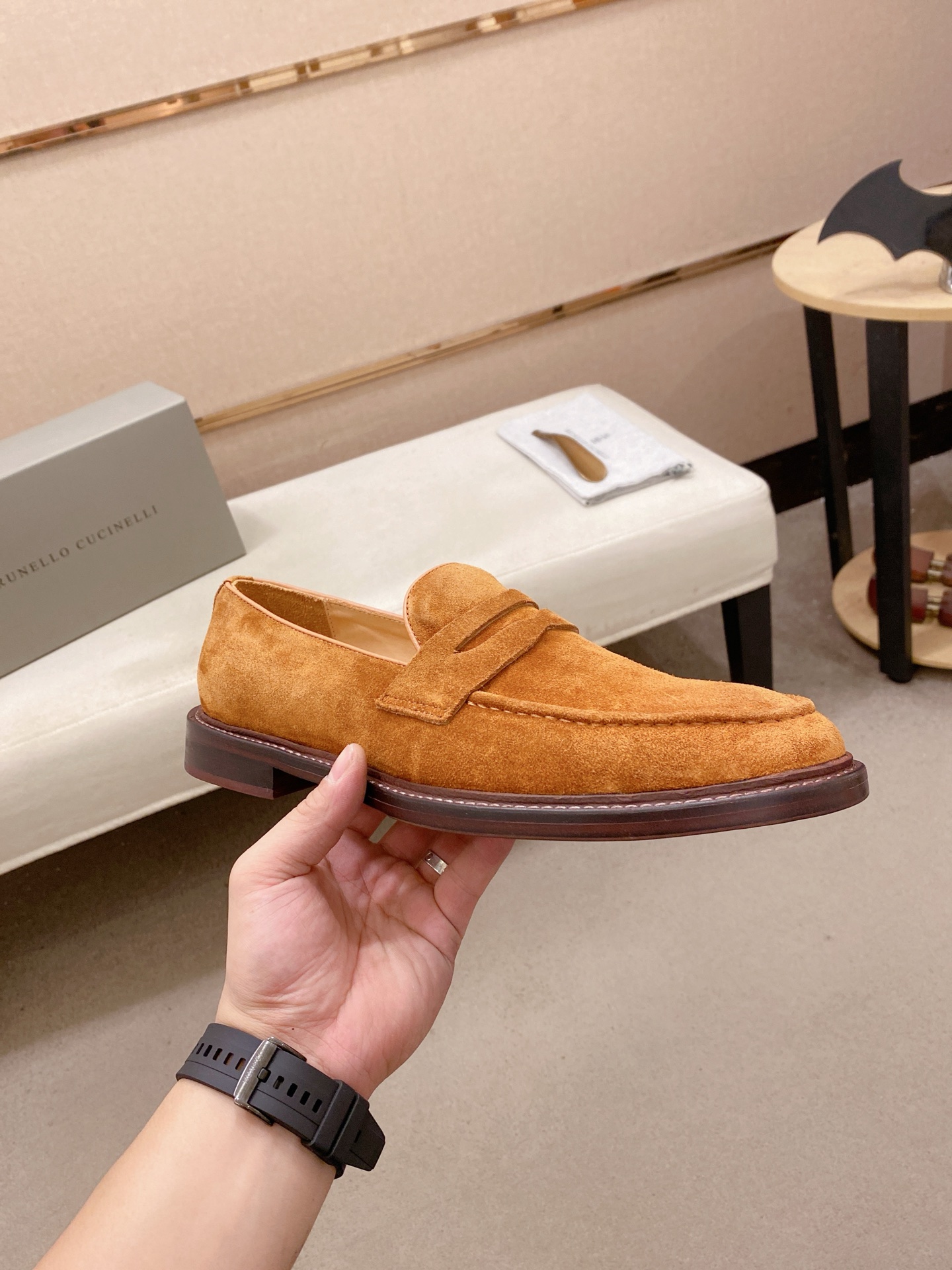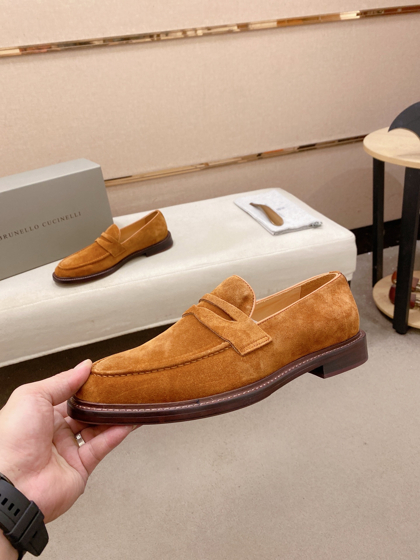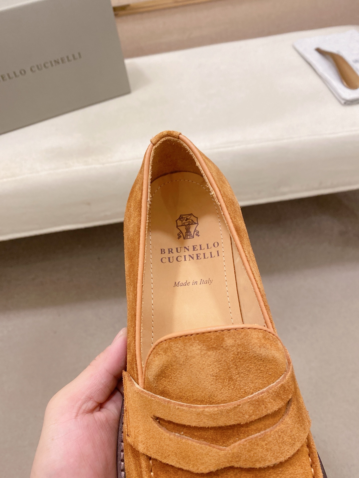 This shoes is AAAAA 1:1 quality (superb). Materials used are identical to the original ones. Brunello Cucinelli trademark marks are indistinguishable to the authentic. Photos take by actual shoes, what you receive will be 100% same with our photos.