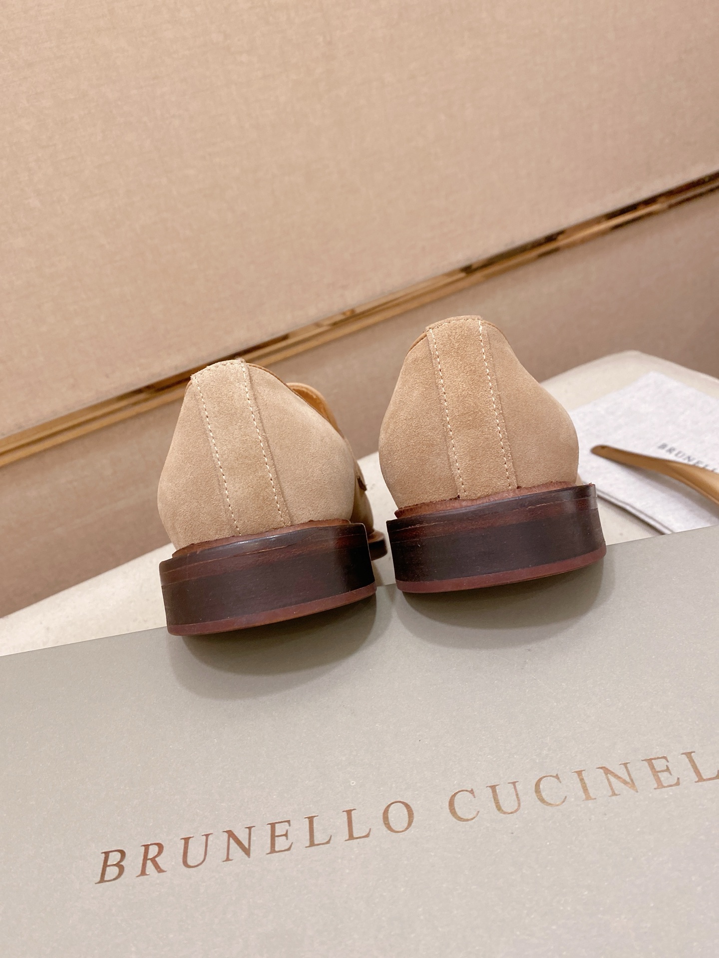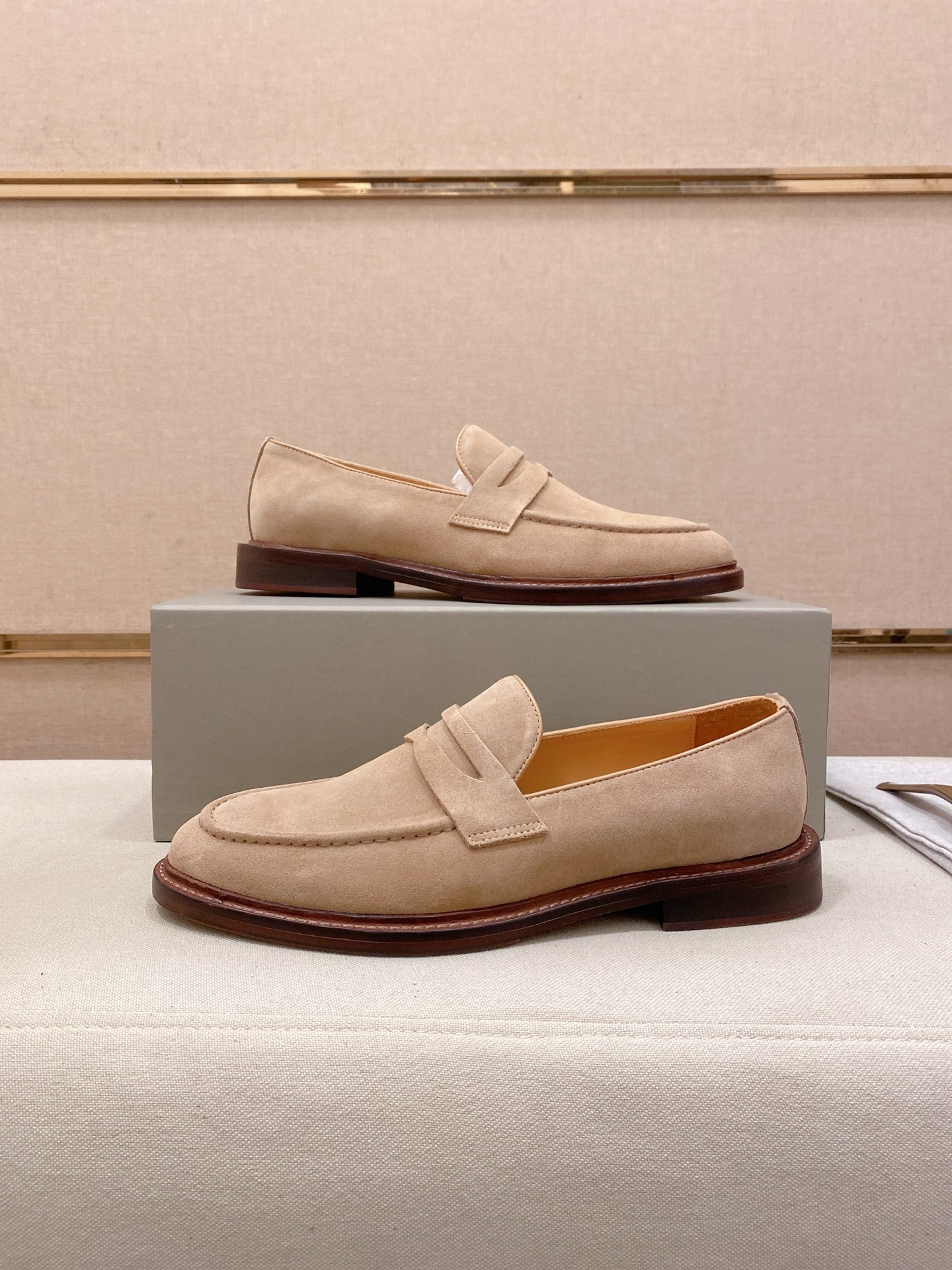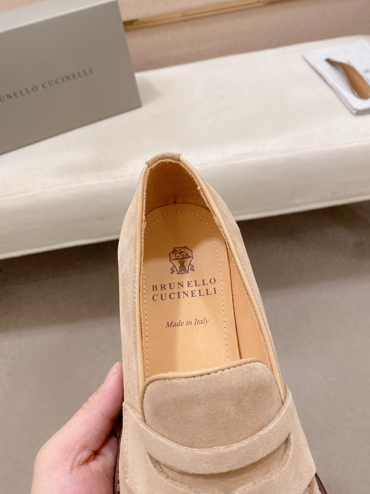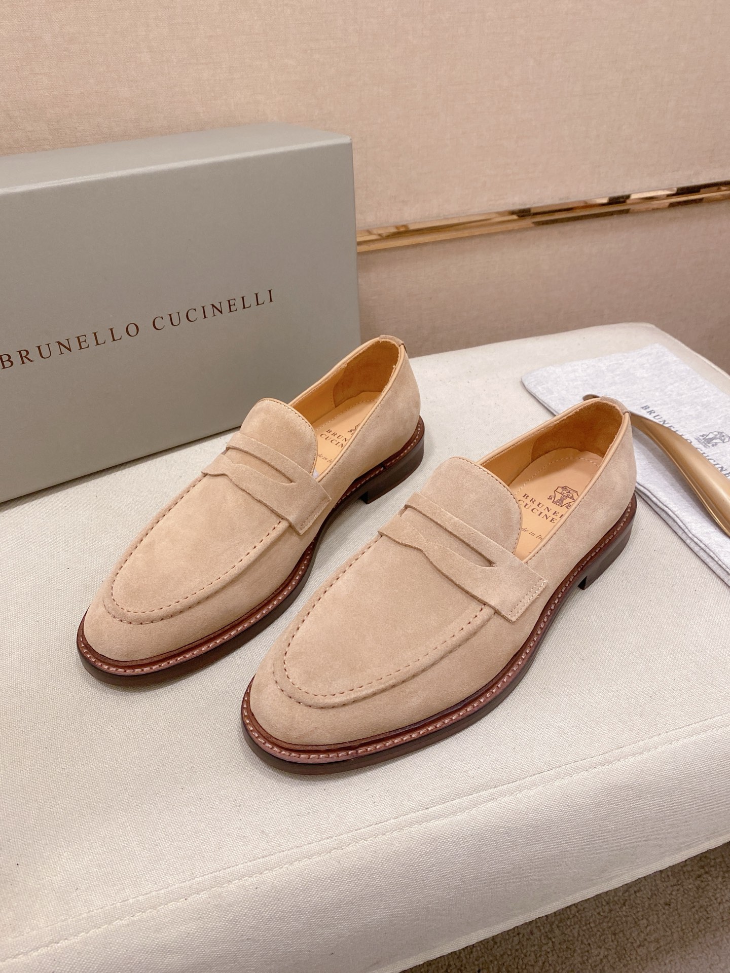 This shoes is AAAAA 1:1 quality (superb). Materials used are identical to the original ones. Brunello Cucinelli trademark marks are indistinguishable to the authentic. Photos take by actual shoes, what you receive will be 100% same with our photos.
