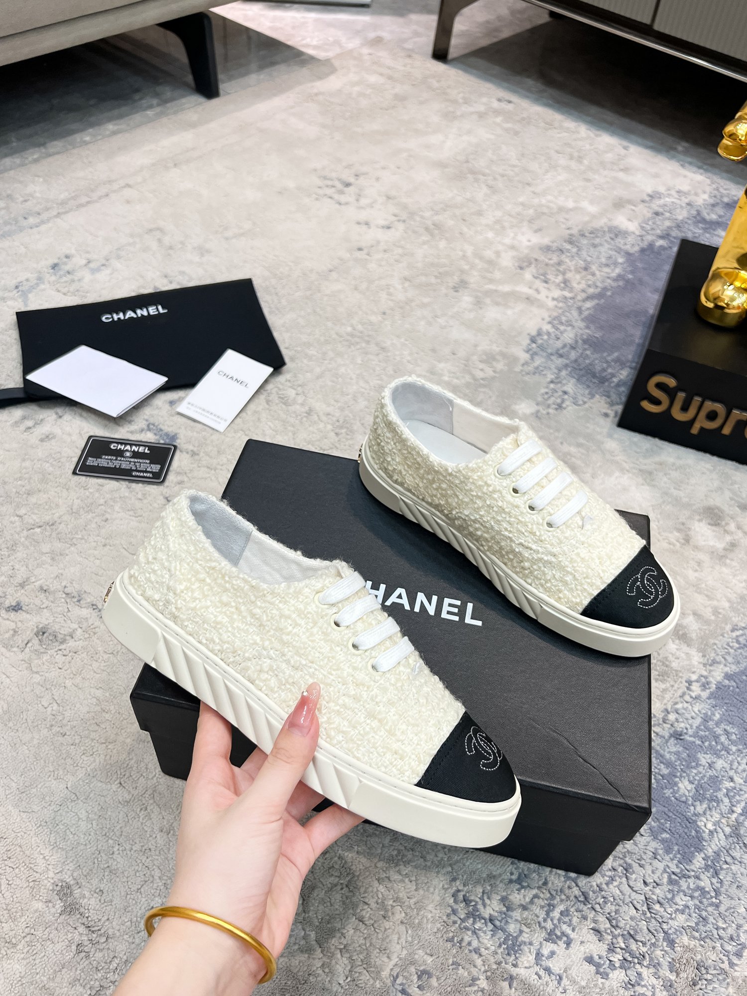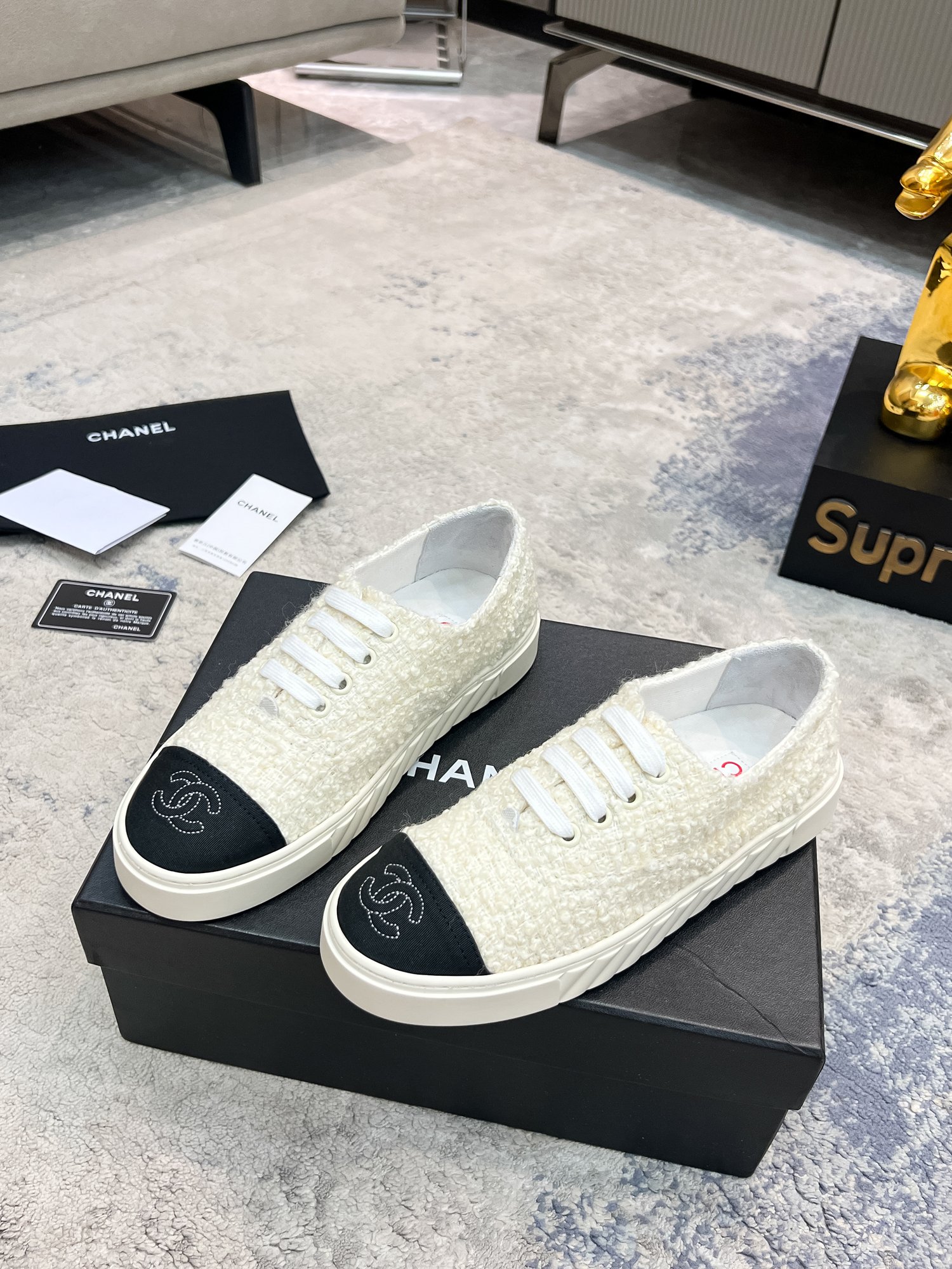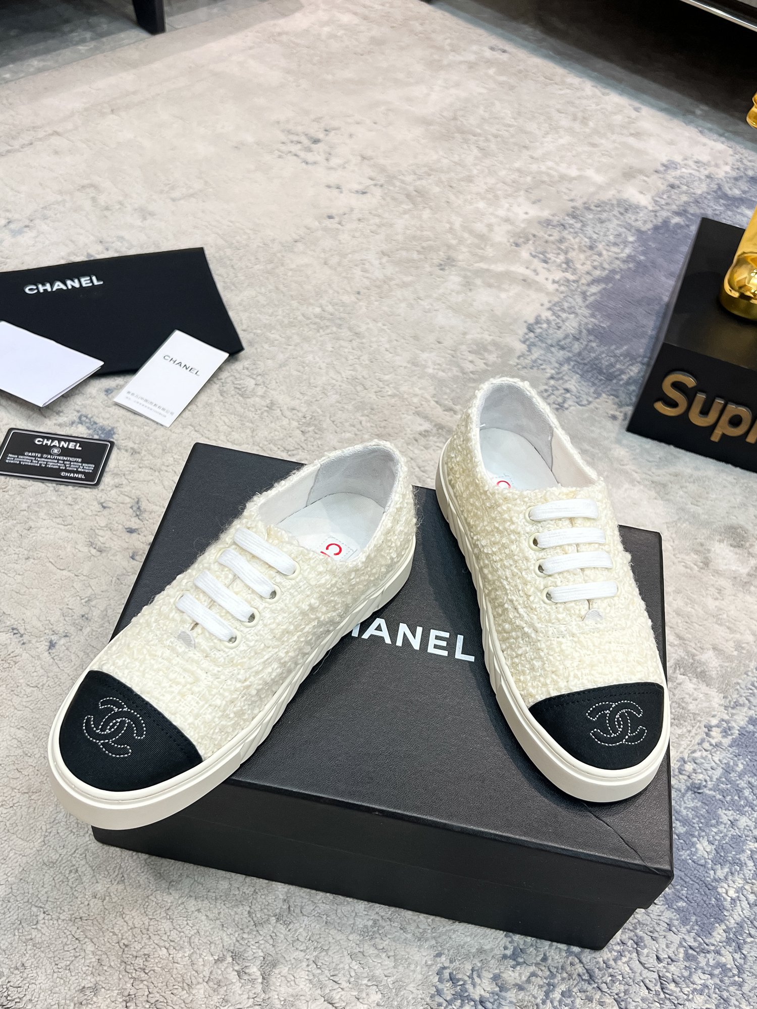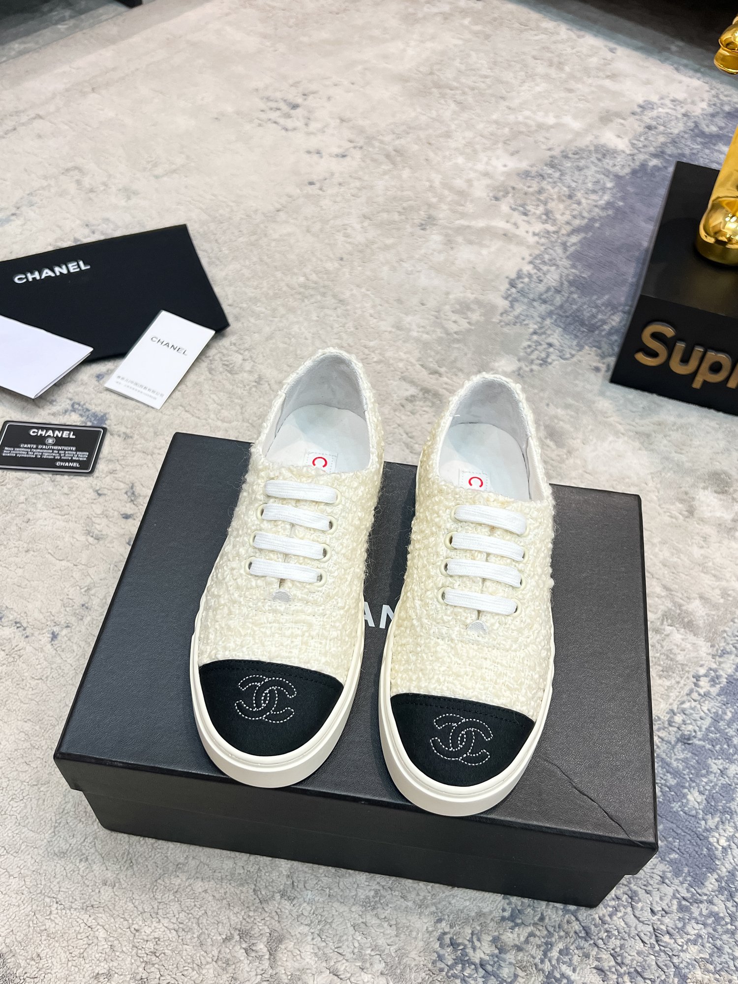 This shoes is AAAAA 1:1 quality (superb). Materials used are identical to the original ones. Chanel trademark marks are indistinguishable to the authentic. Photos take by actual shoes, what you receive will be 100% same with our photos.
