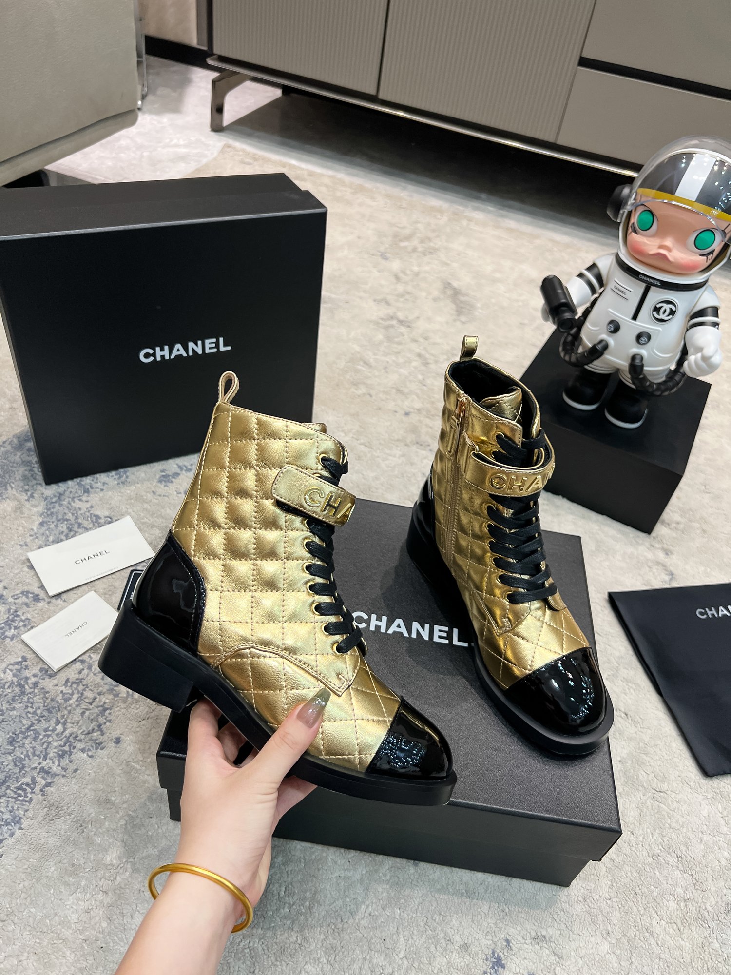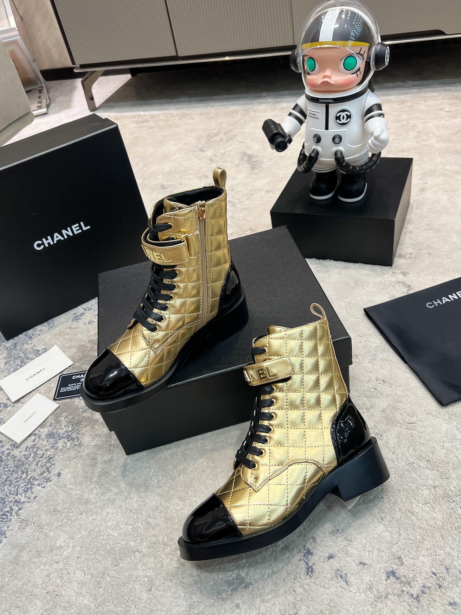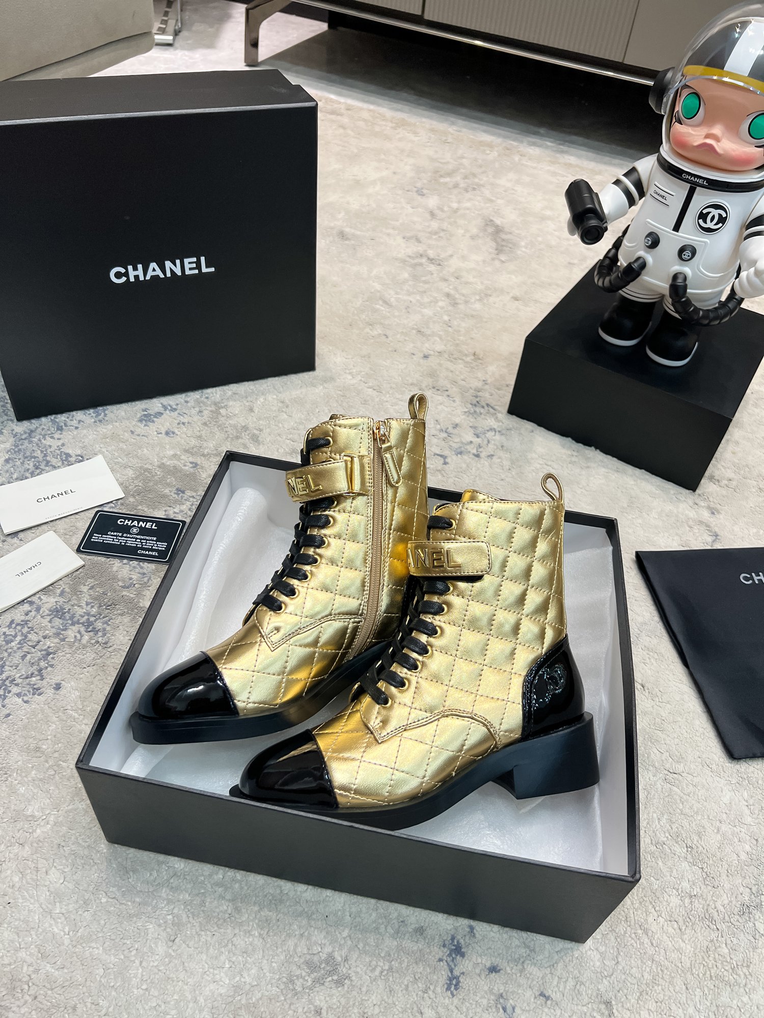 This shoes is AAAAA 1:1 quality (superb). Materials used are identical to the original ones. Chanel trademark marks are indistinguishable to the authentic. Photos take by actual shoes, what you receive will be 100% same with our photos.