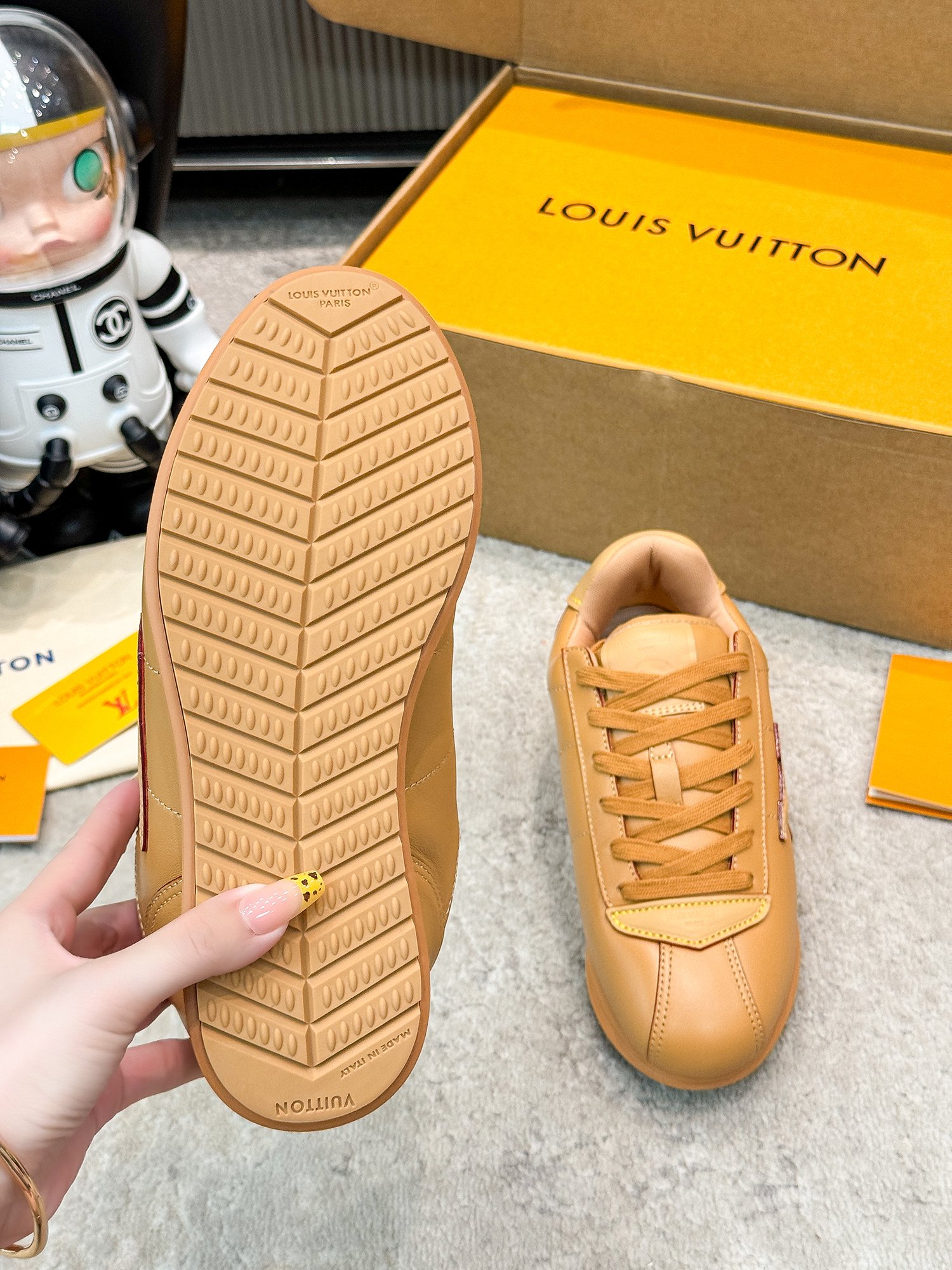 This shoes is AAAAA 1:1 quality (superb). Materials used are identical to the original ones. Louis Vuitton trademark marks are indistinguishable to the authentic. Photos take by actual shoes, what you receive will be 100% same with our photos.