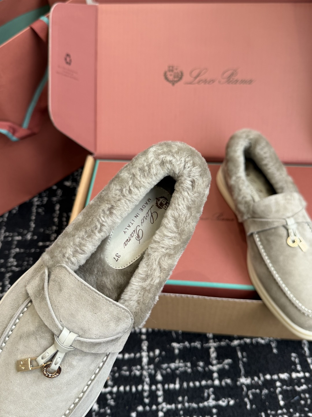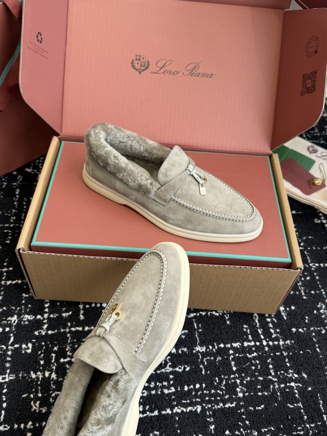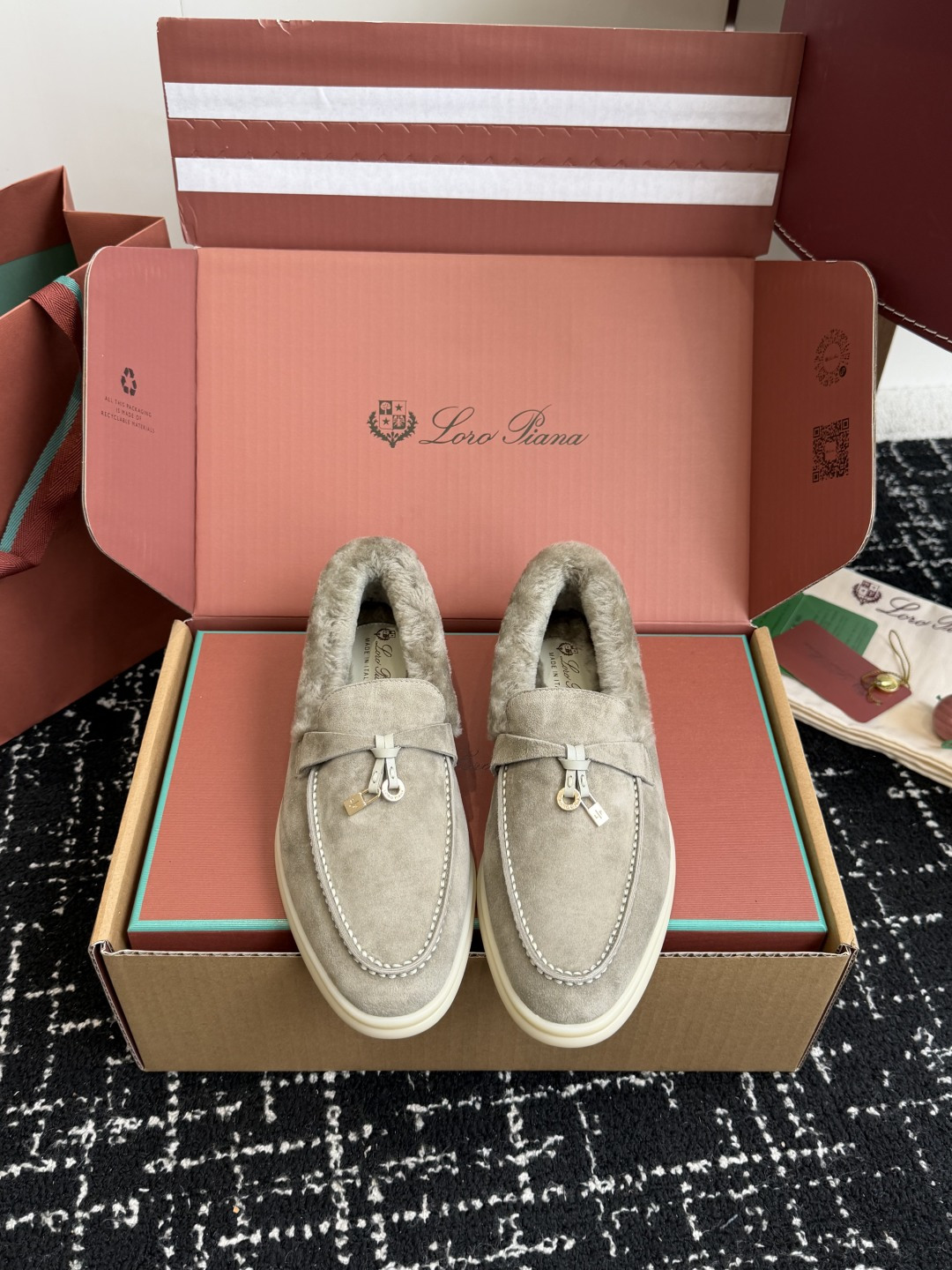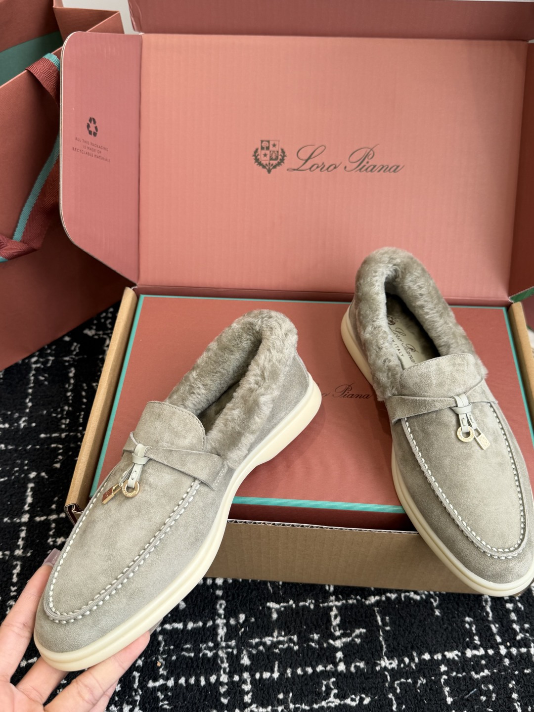 This shoes is AAAAA 1:1 quality (superb). Materials used are identical to the original ones. Loro Piana trademark marks are indistinguishable to the authentic. Photos take by actual shoes, what you receive will be 100% same with our photos.