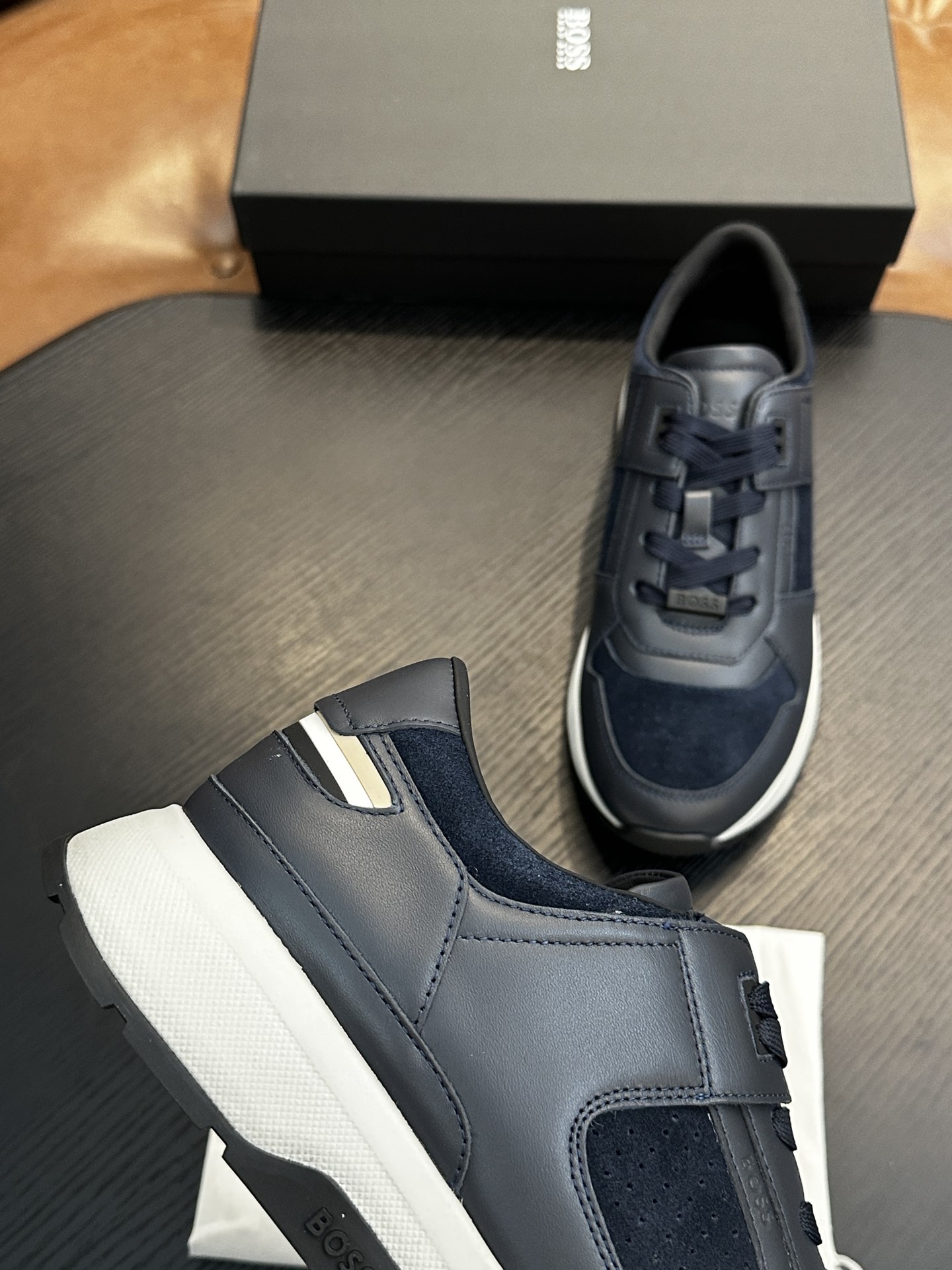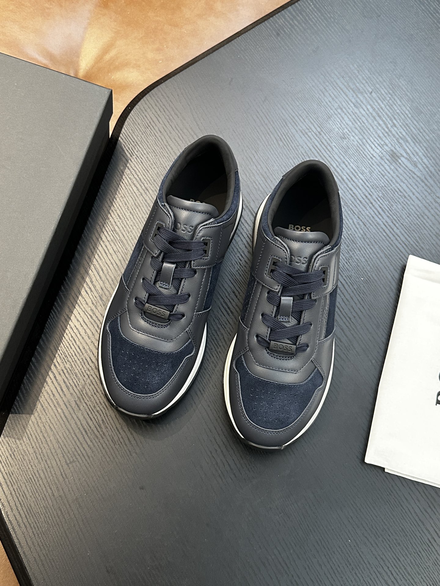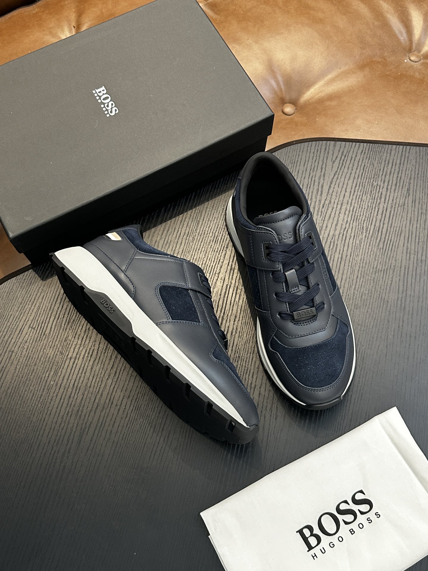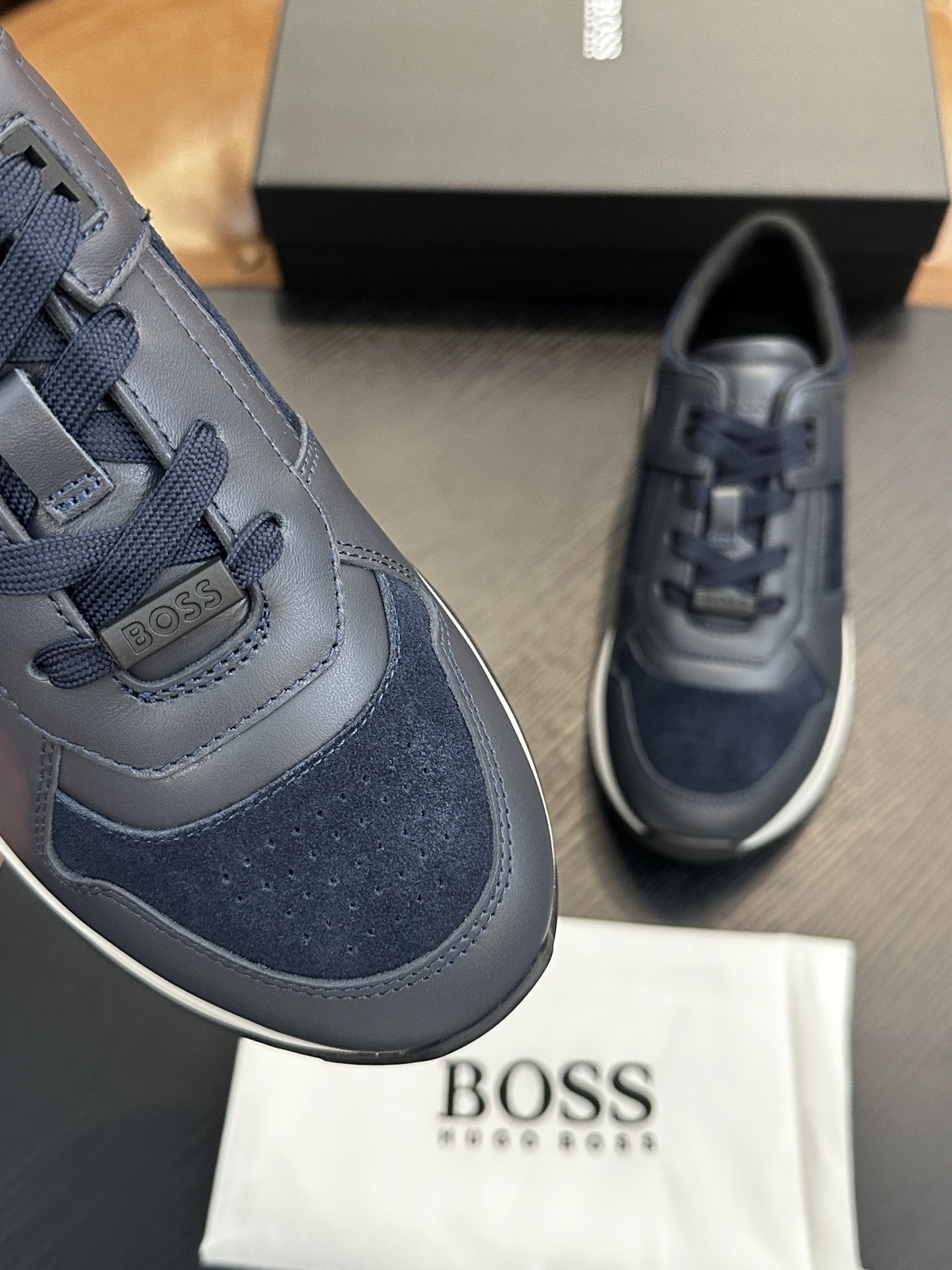 This shoes is AAAAA 1:1 quality (superb). Materials used are identical to the original ones. BOSS trademark marks are indistinguishable to the authentic. Photos take by actual shoes, what you receive will be 100% same with our photos.