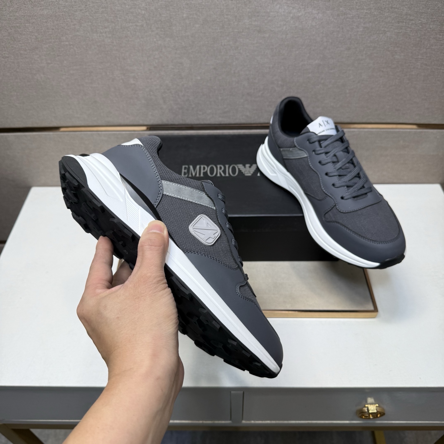 This shoes is AAAAA 1:1 quality (superb). Materials used are identical to the original ones. Armani trademark marks are indistinguishable to the authentic. Photos take by actual shoes, what you receive will be 100% same with our photos.