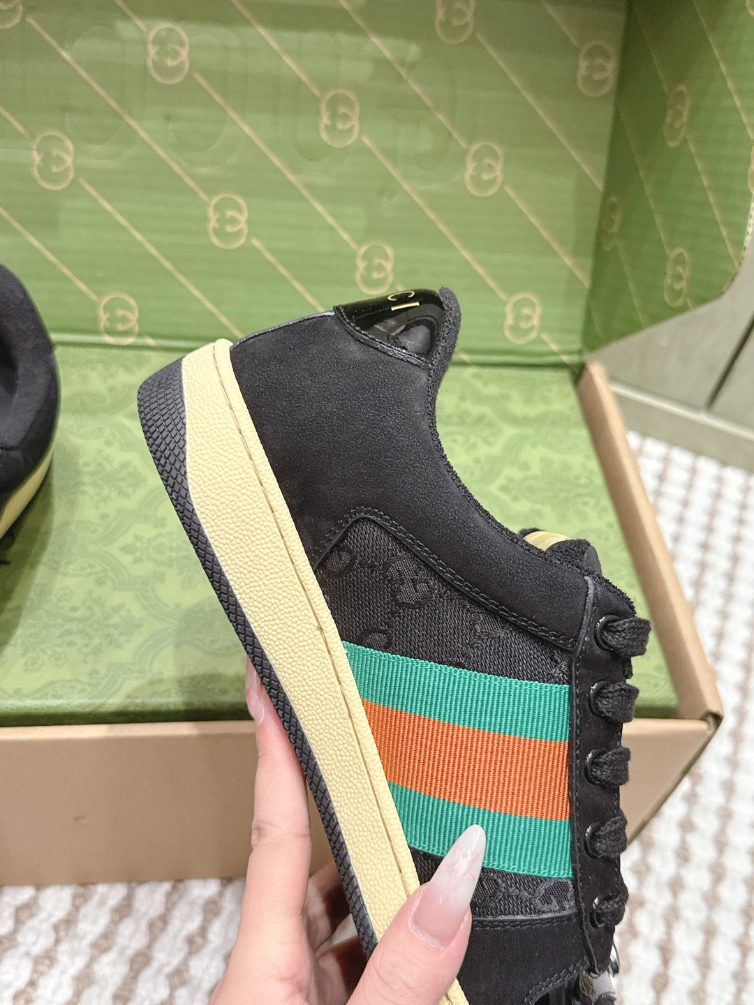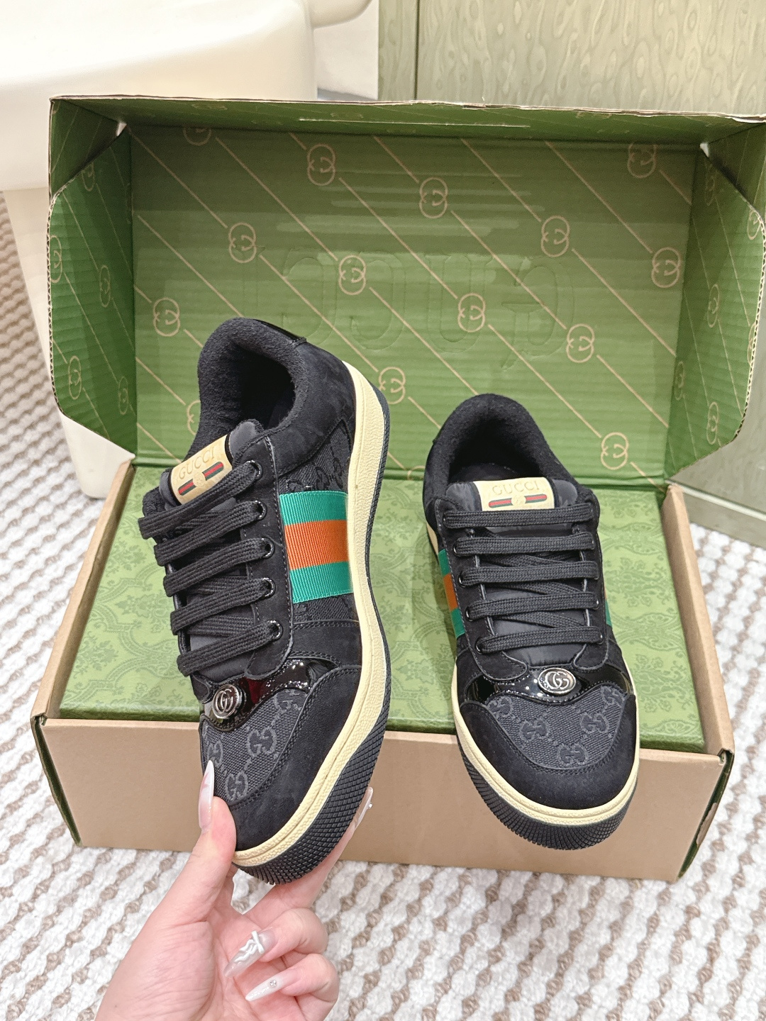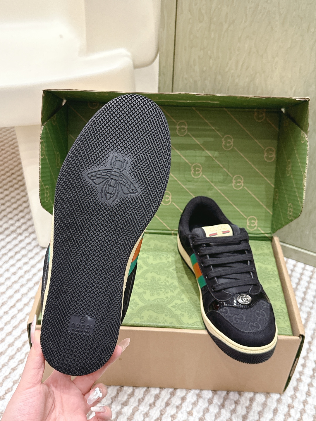 This shoes is AAAAA 1:1 quality (superb). Materials used are identical to the original ones. Gucci trademark marks are indistinguishable to the authentic. Photos take by actual shoes, what you receive will be 100% same with our photos.