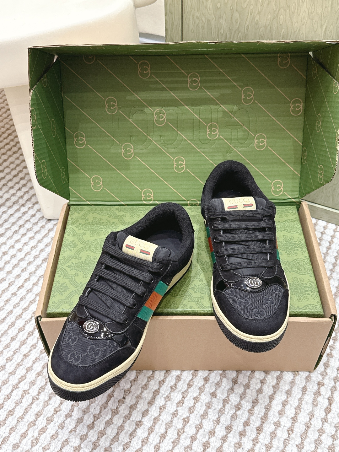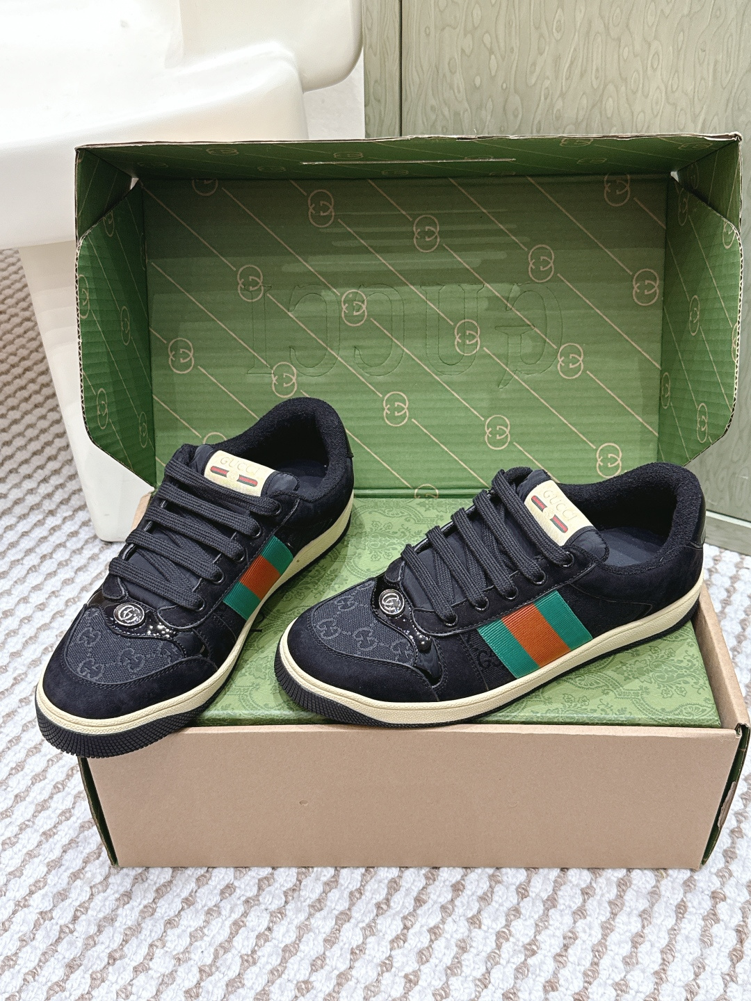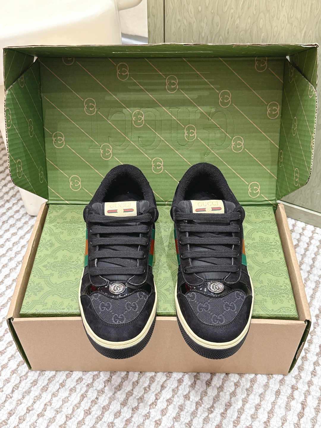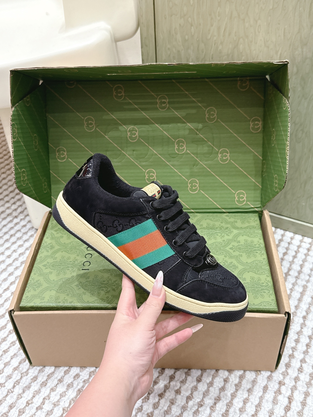 This shoes is AAAAA 1:1 quality (superb). Materials used are identical to the original ones. Gucci trademark marks are indistinguishable to the authentic. Photos take by actual shoes, what you receive will be 100% same with our photos.