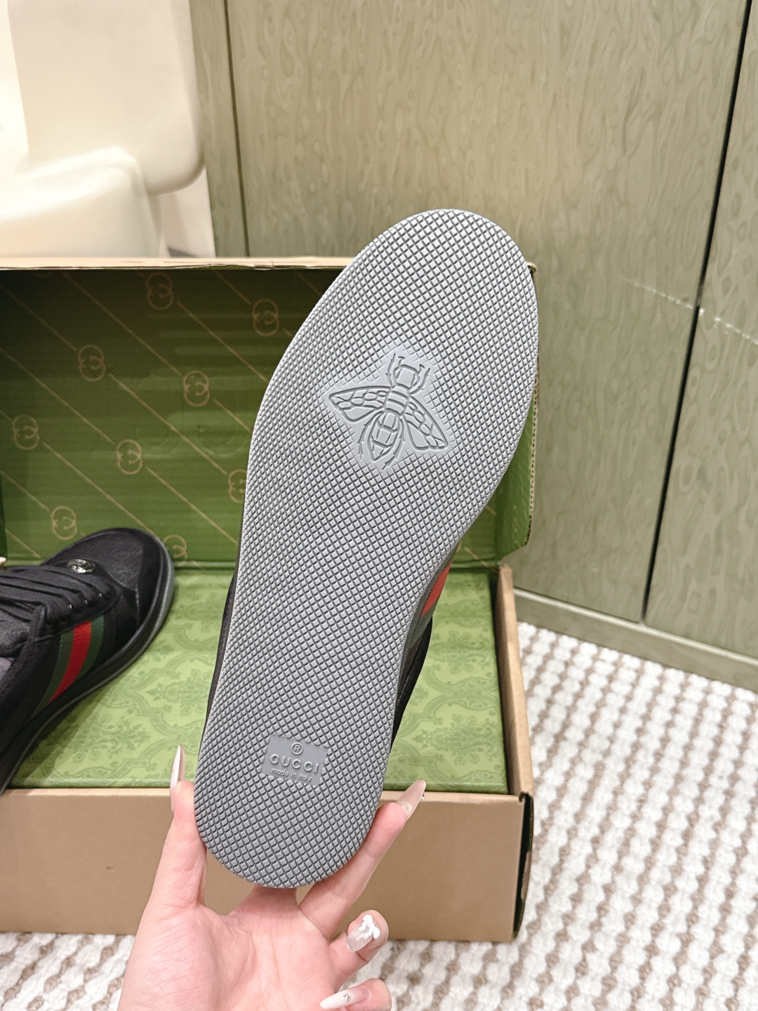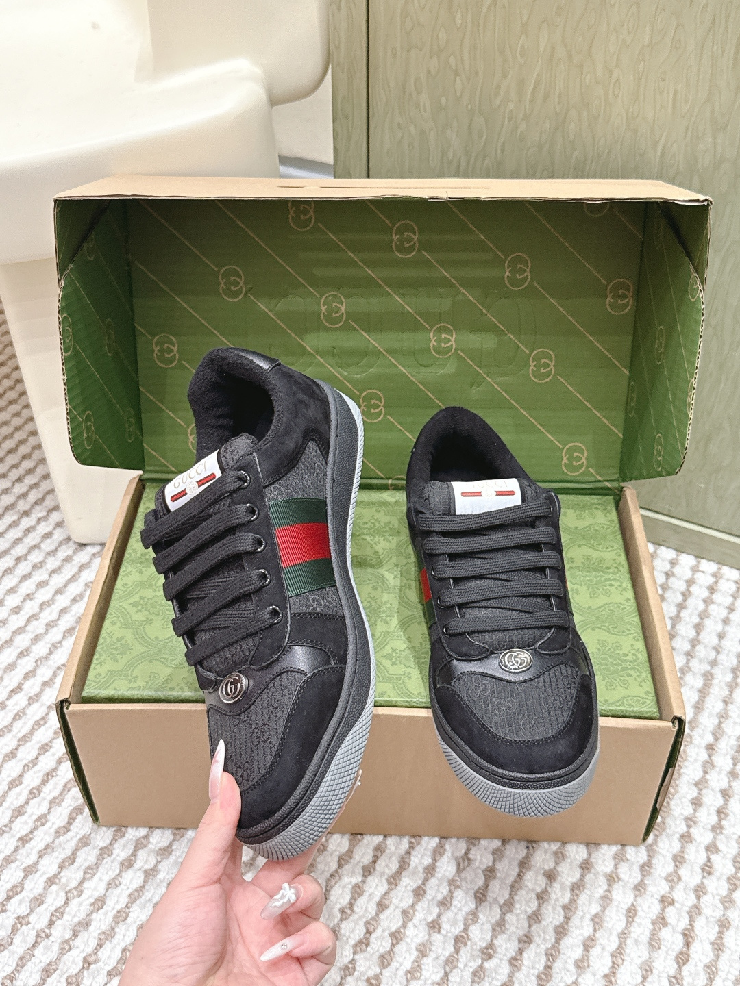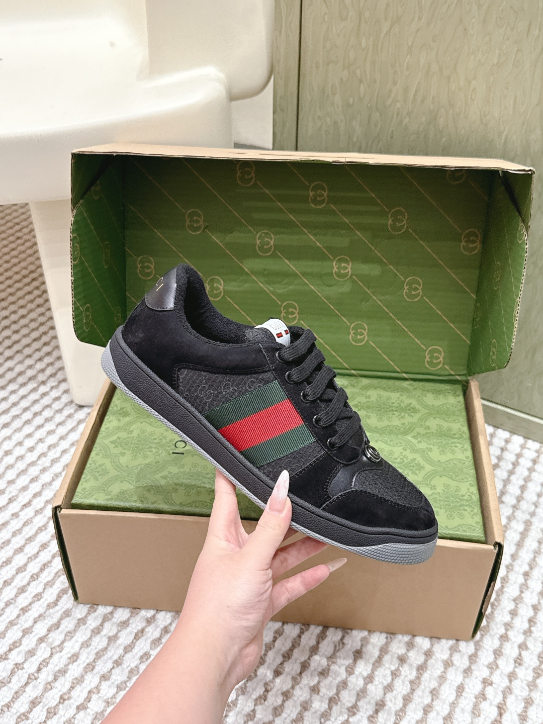 This shoes is AAAAA 1:1 quality (superb). Materials used are identical to the original ones. Gucci trademark marks are indistinguishable to the authentic. Photos take by actual shoes, what you receive will be 100% same with our photos.
