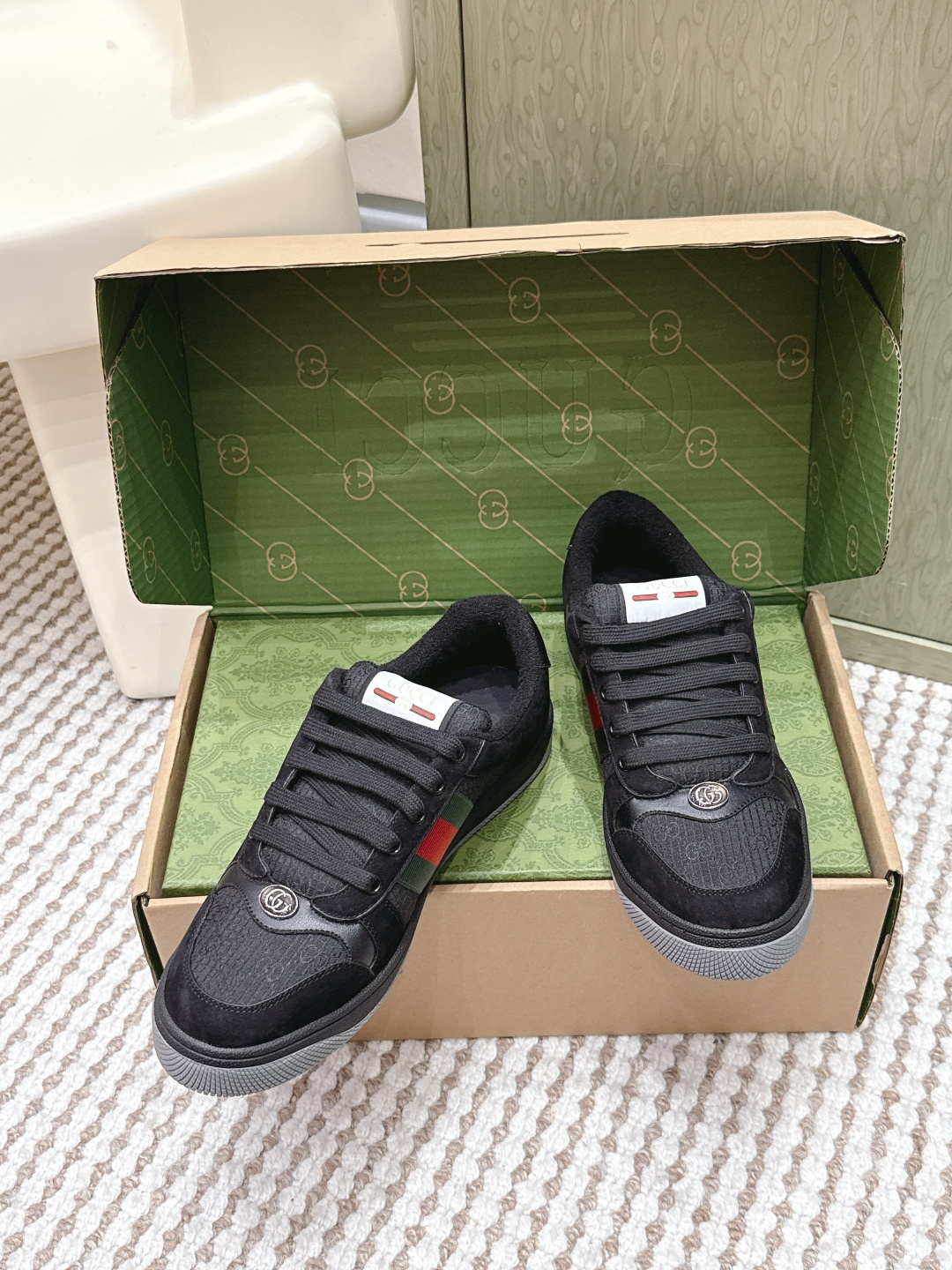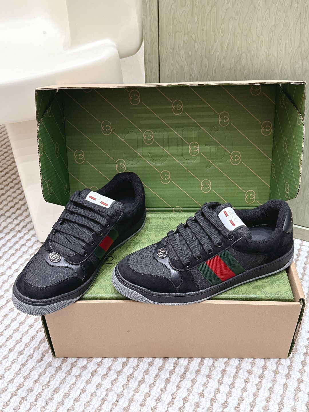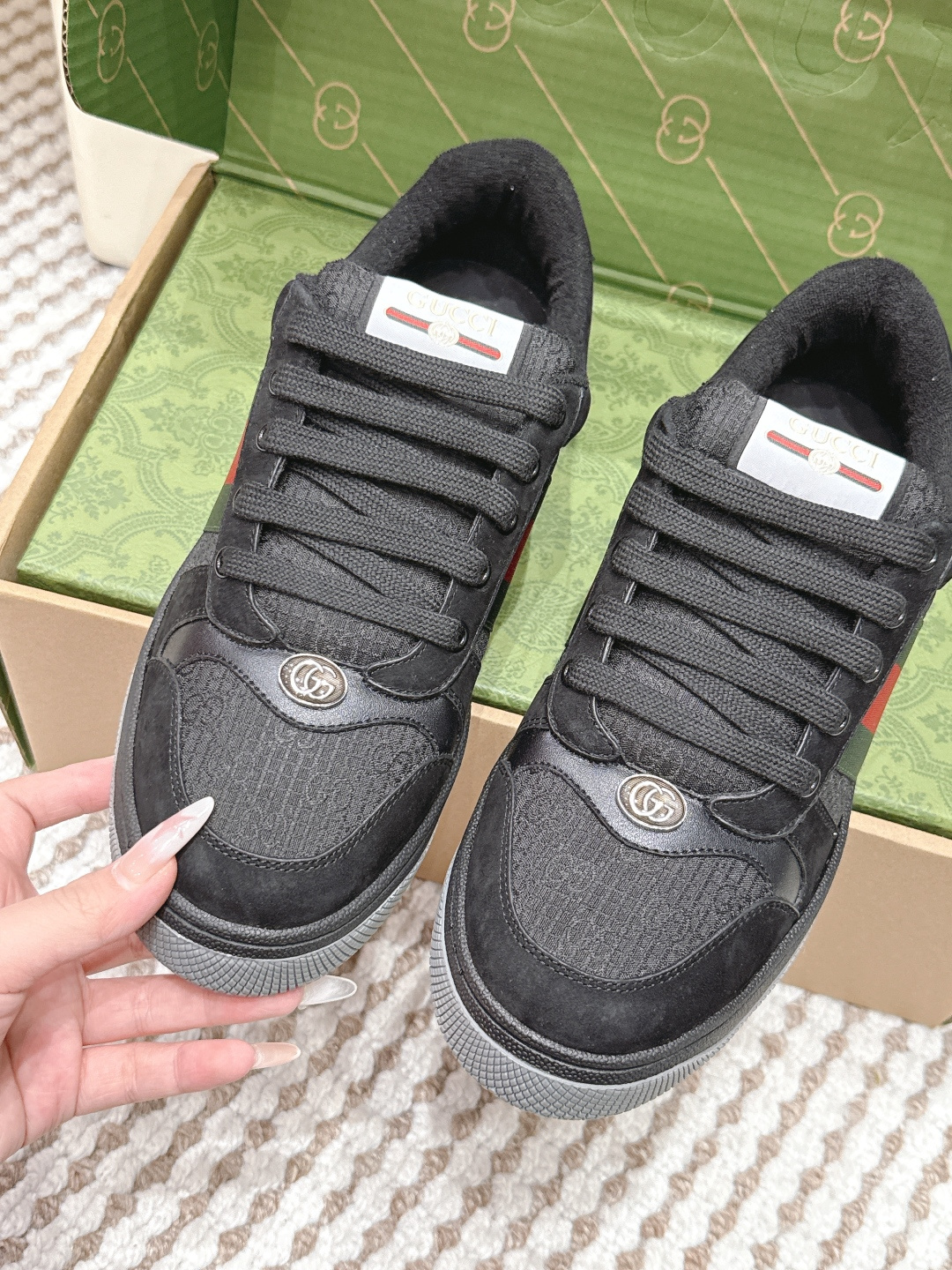 This shoes is AAAAA 1:1 quality (superb). Materials used are identical to the original ones. Gucci trademark marks are indistinguishable to the authentic. Photos take by actual shoes, what you receive will be 100% same with our photos.
