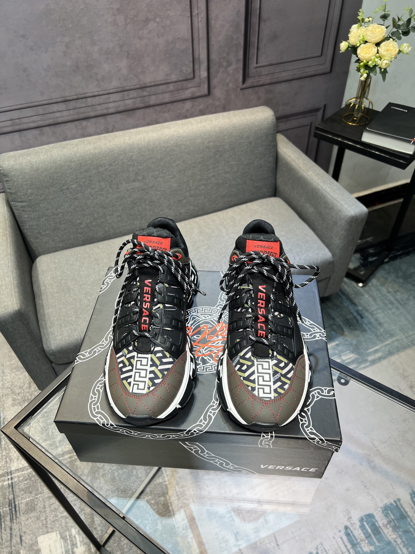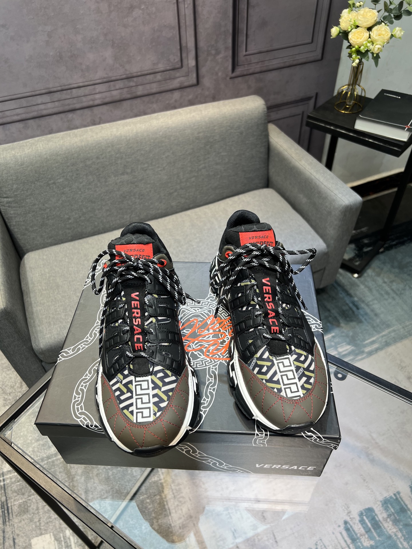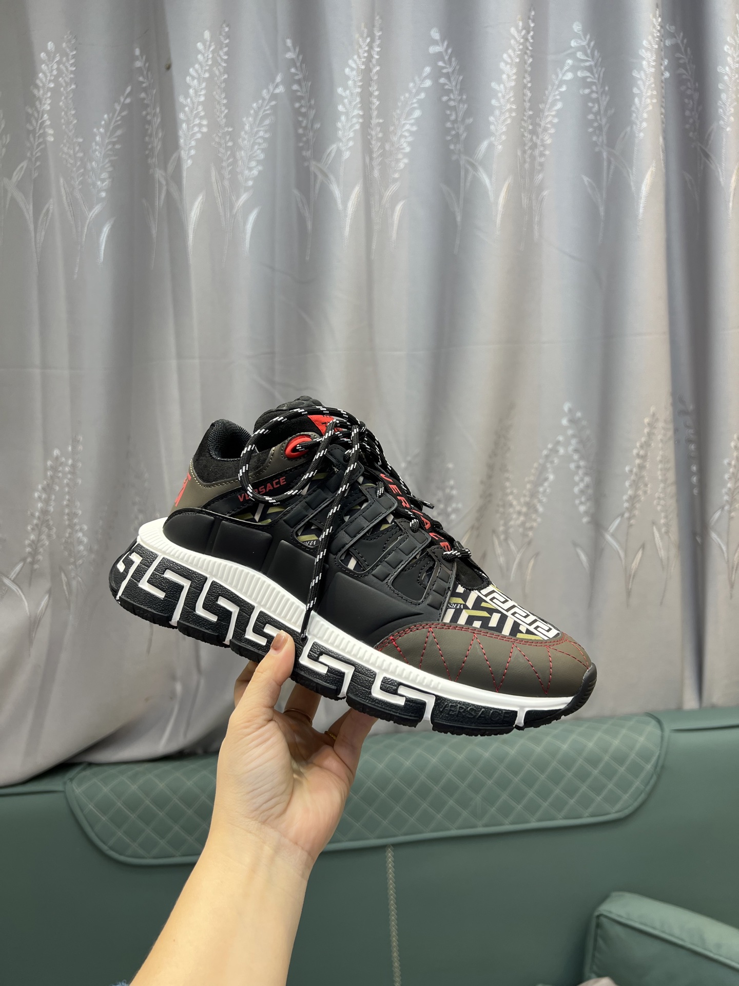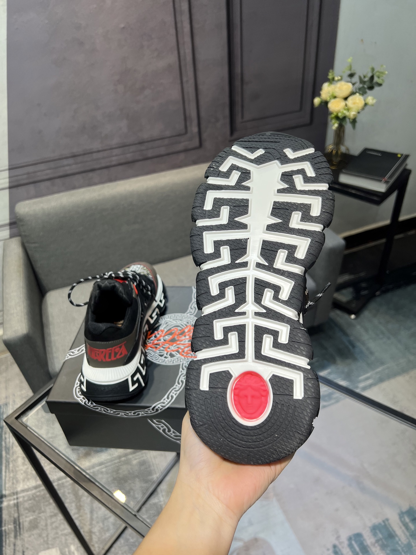 This shoes is AAAAA 1:1 quality (superb). Materials used are identical to the original ones. Versace trademark marks are indistinguishable to the authentic. Photos take by actual shoes, what you receive will be 100% same with our photos.